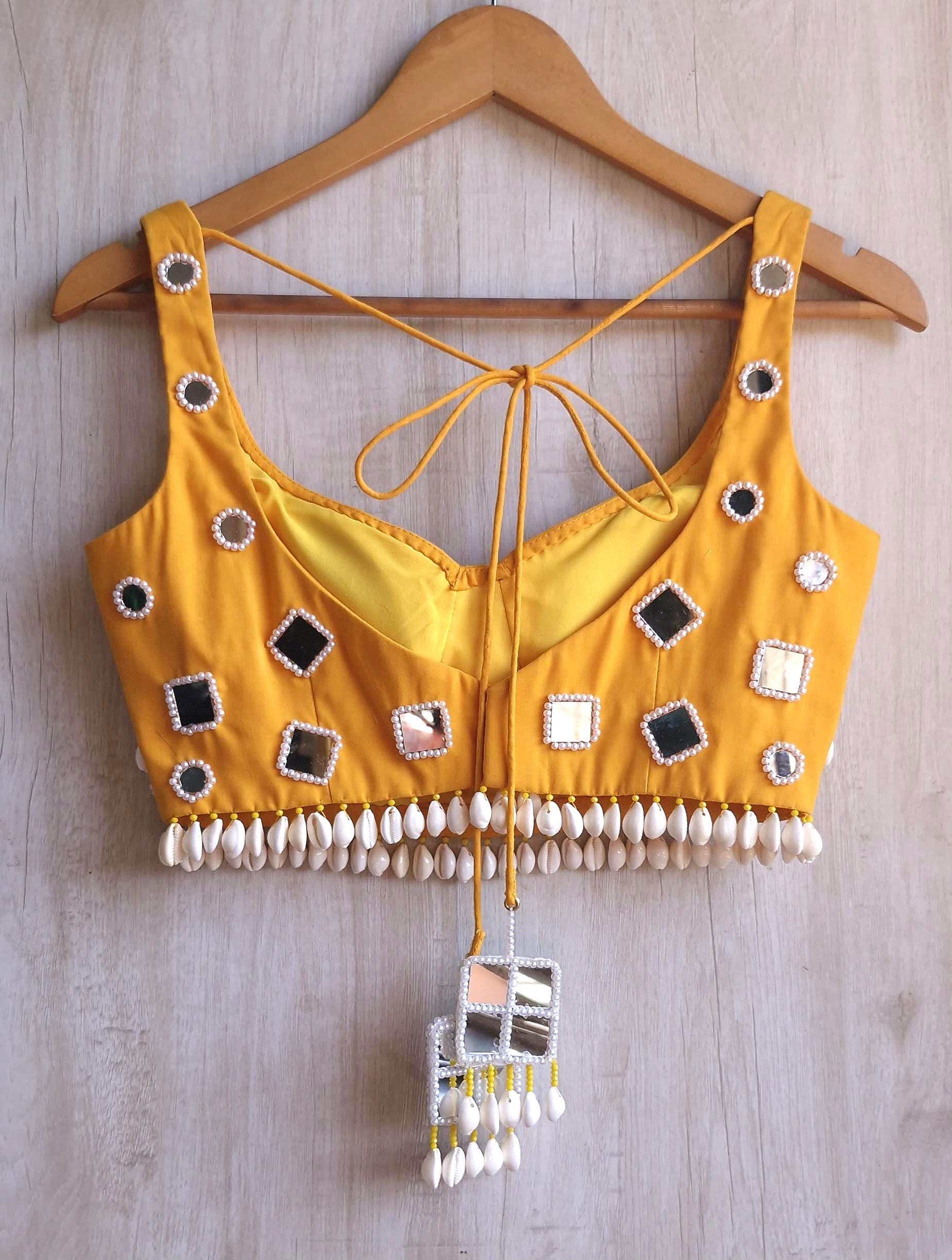 Please note the fringes in the blouse are handmade hence fragile. Please handle with care.