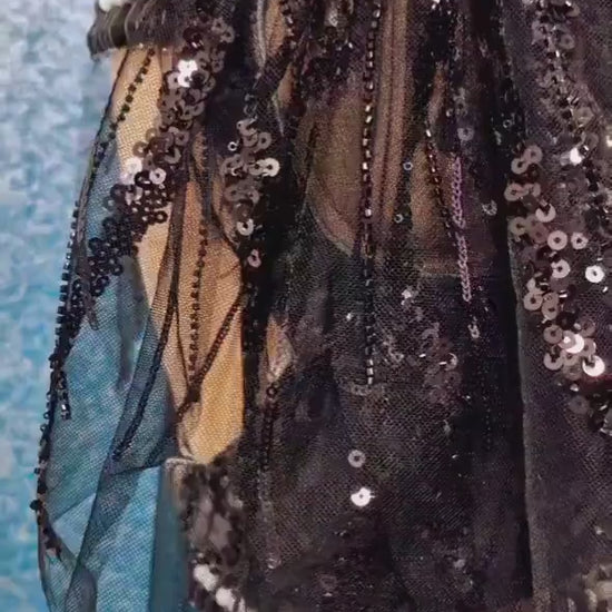 - Princess Cut Padded Embroidered Net Blouse with elaborate beads work