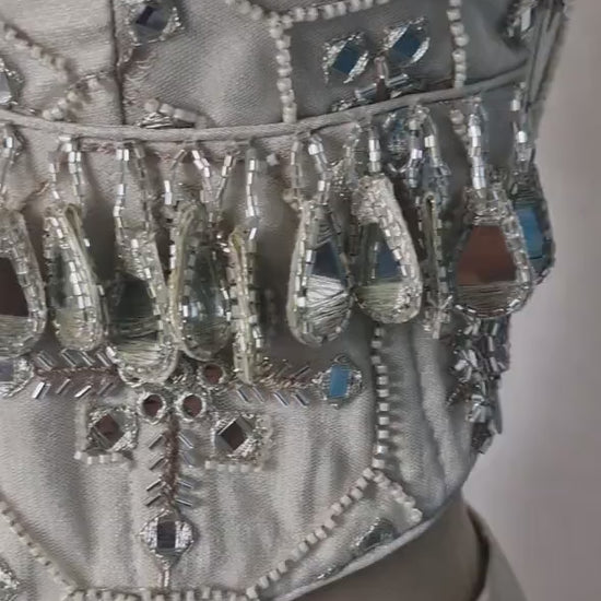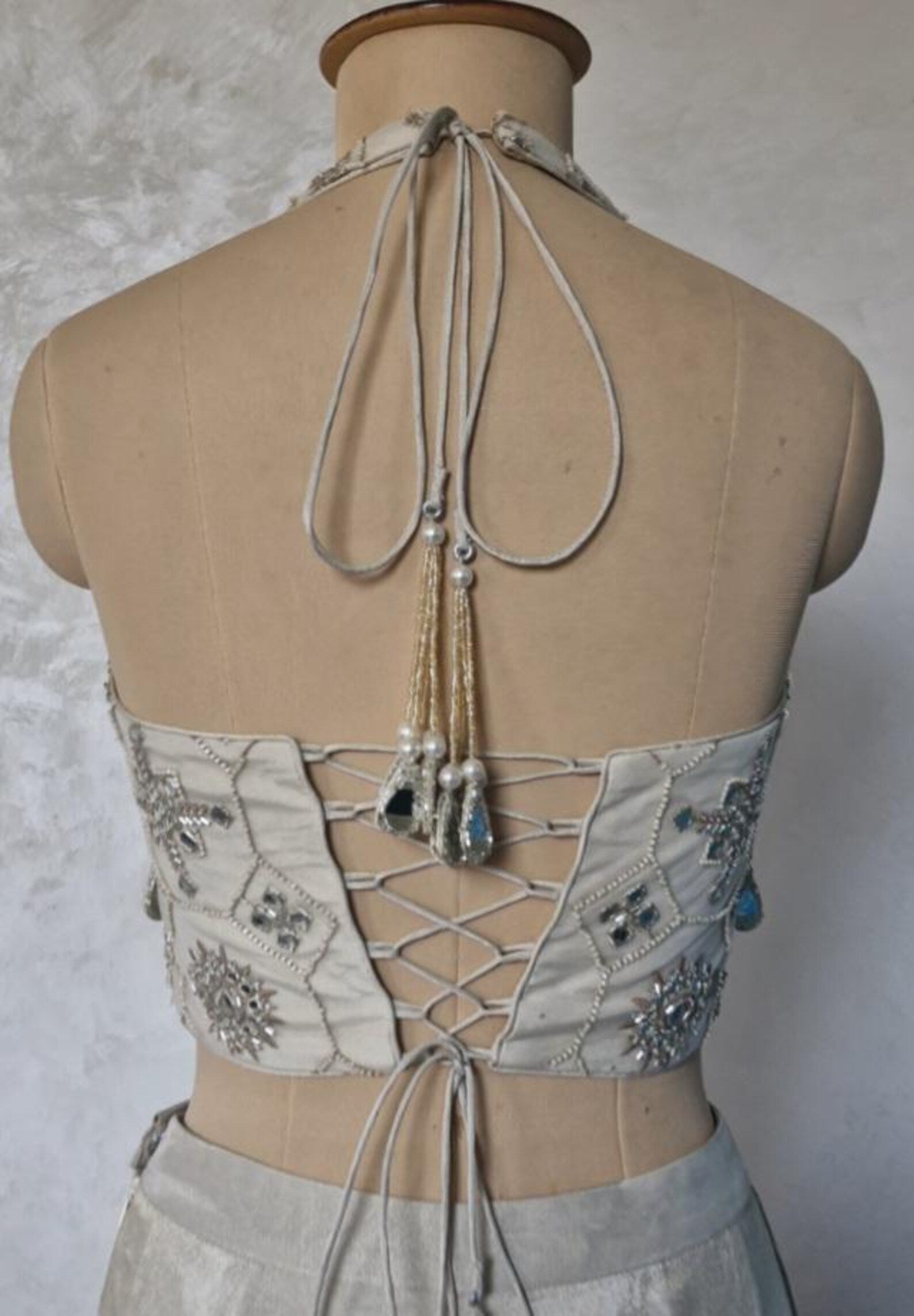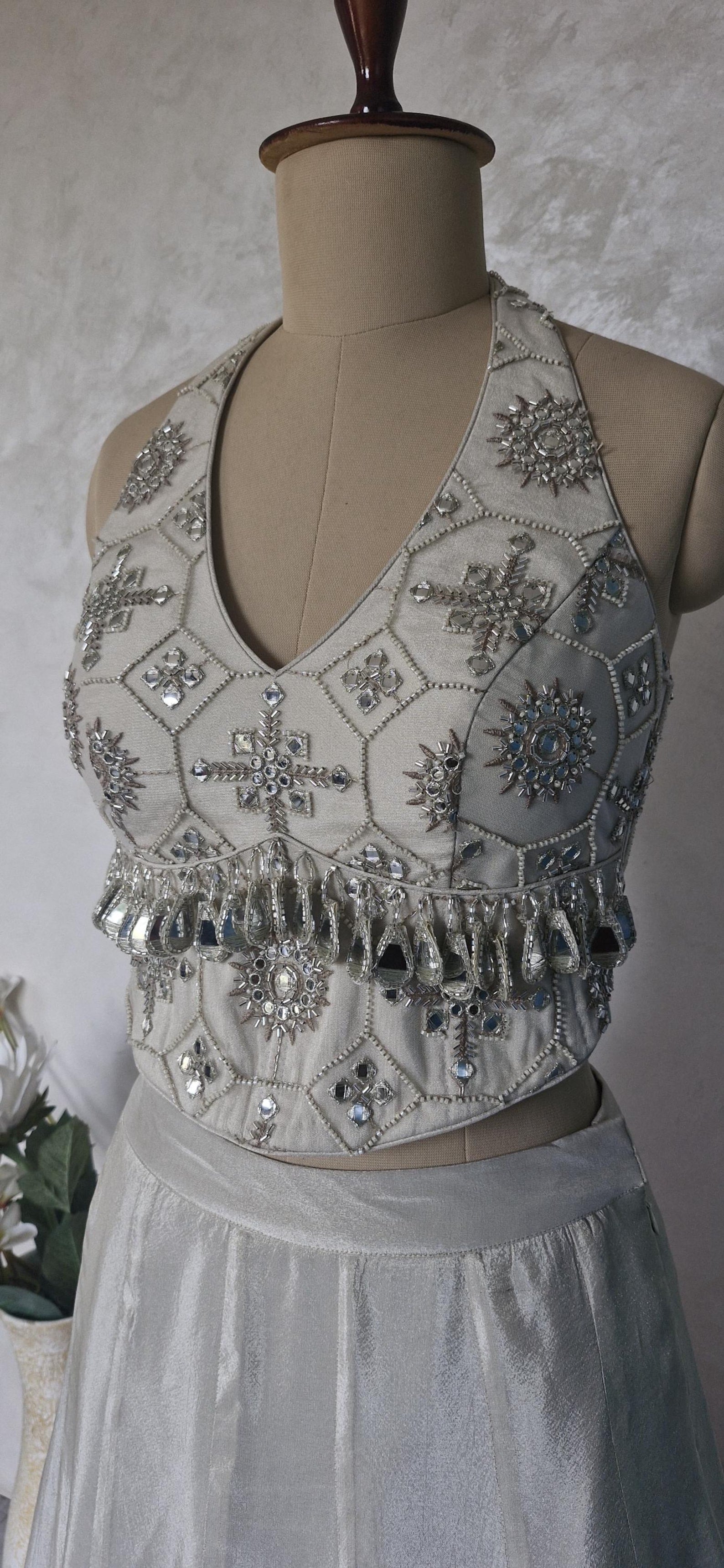 Please note the fringes in the blouse are handmade hence fragile. Please handle with care.