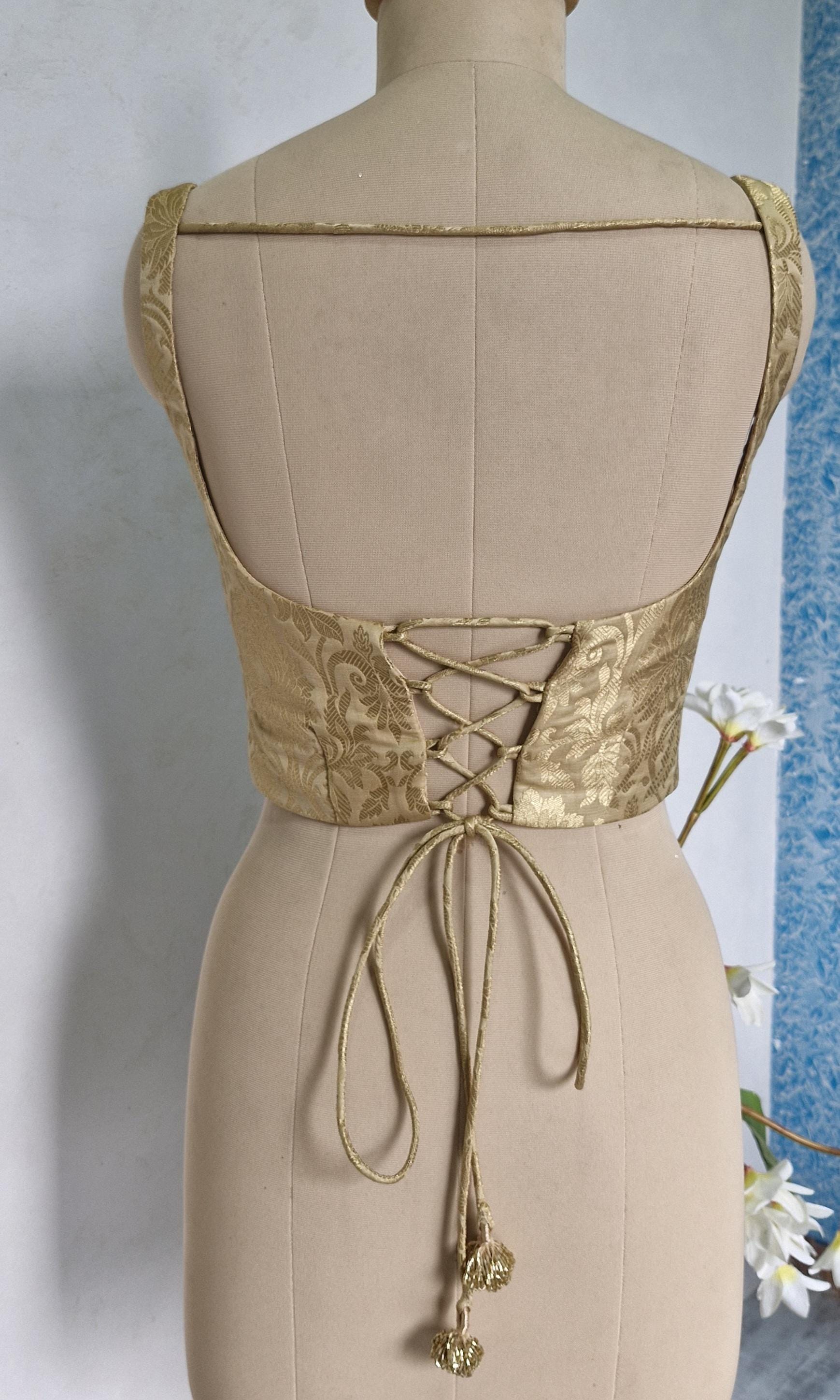 Beige Gold Brocade Silk Corset Blouse DVCB_001