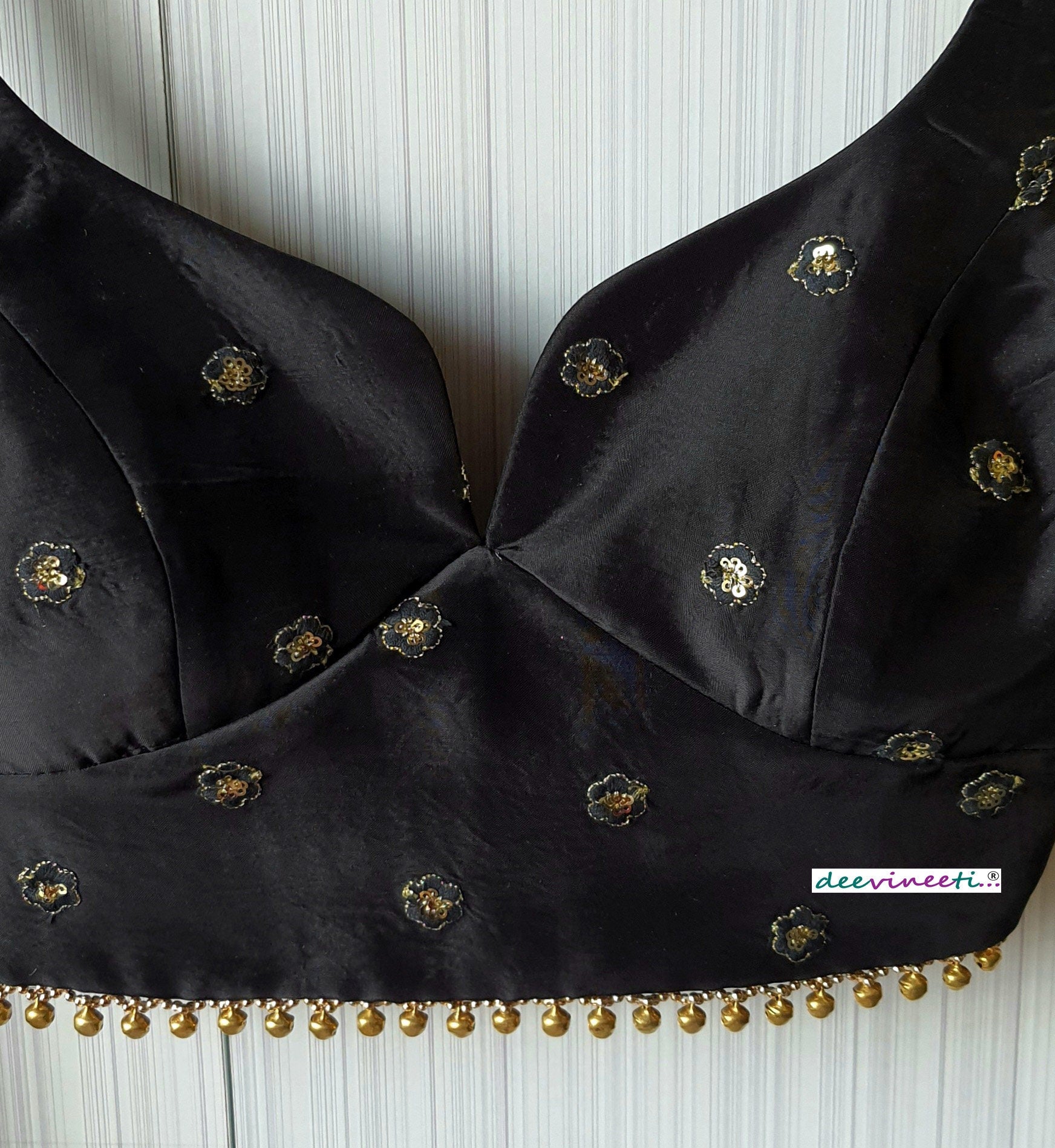 Black Silk Embroidered Sweetheart Neck Blouse DVBL_091