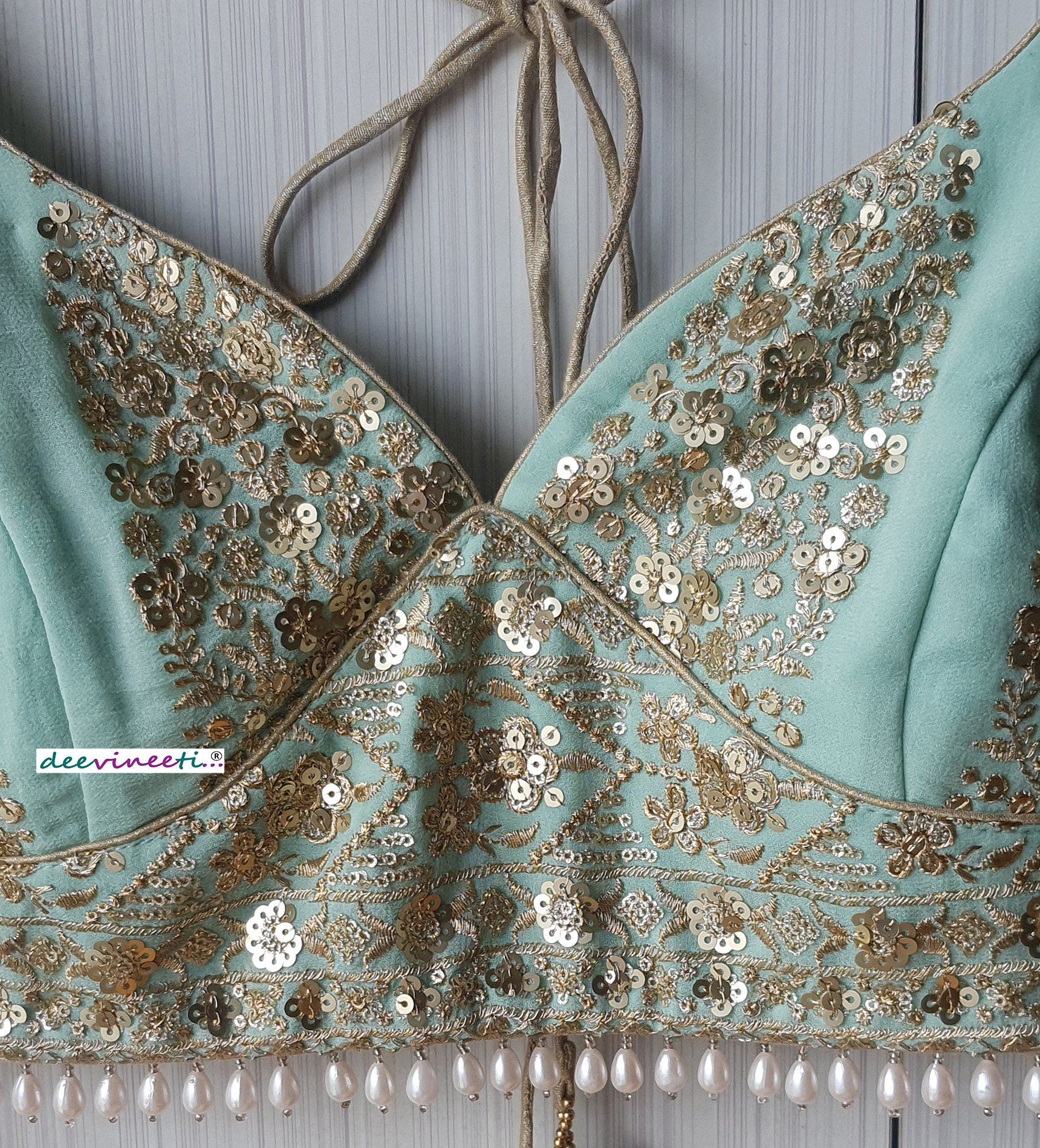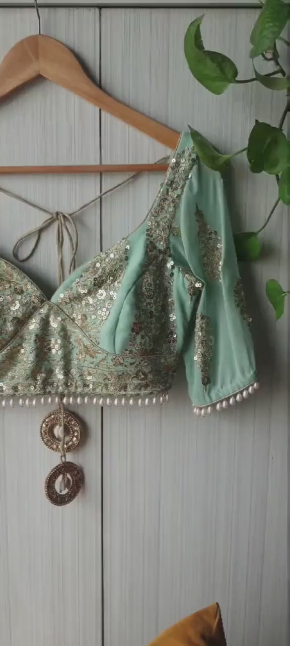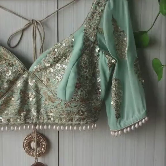 Sea Green Embroidered Sweetheart Neck Blouse DVBL_258