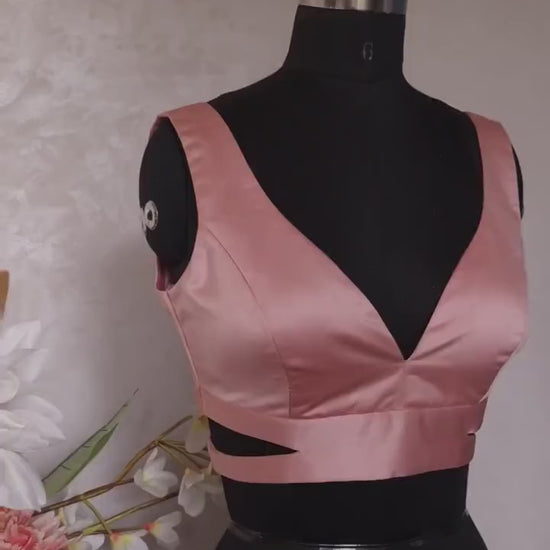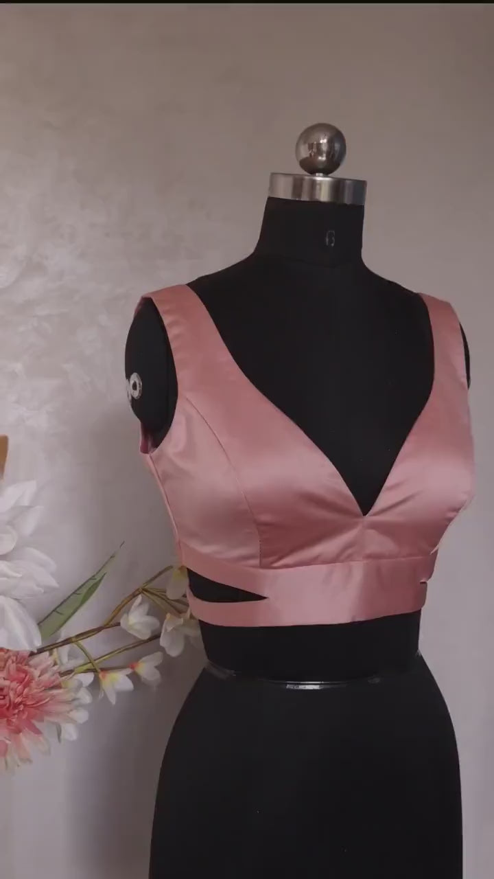 Blush Pink Satin Blouse V Neck Sleeveless DVBL_395