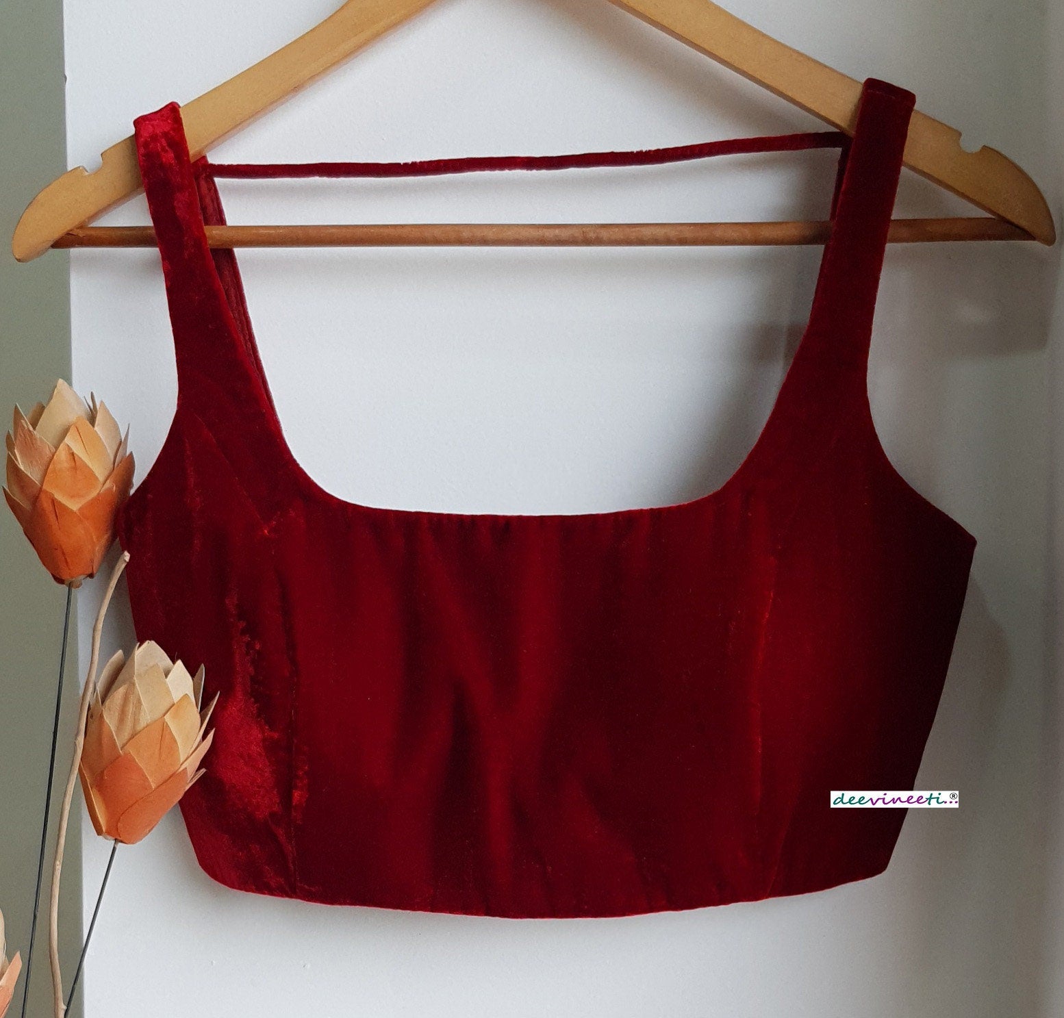 Burgundy Velvet Blouse Square Neckline Sleeveless DVBL_274