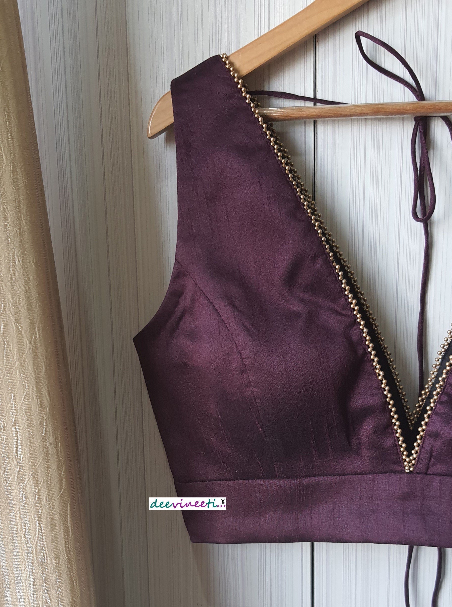 Raw Silk Deep Plunge Neckline Blouse DVBL_110