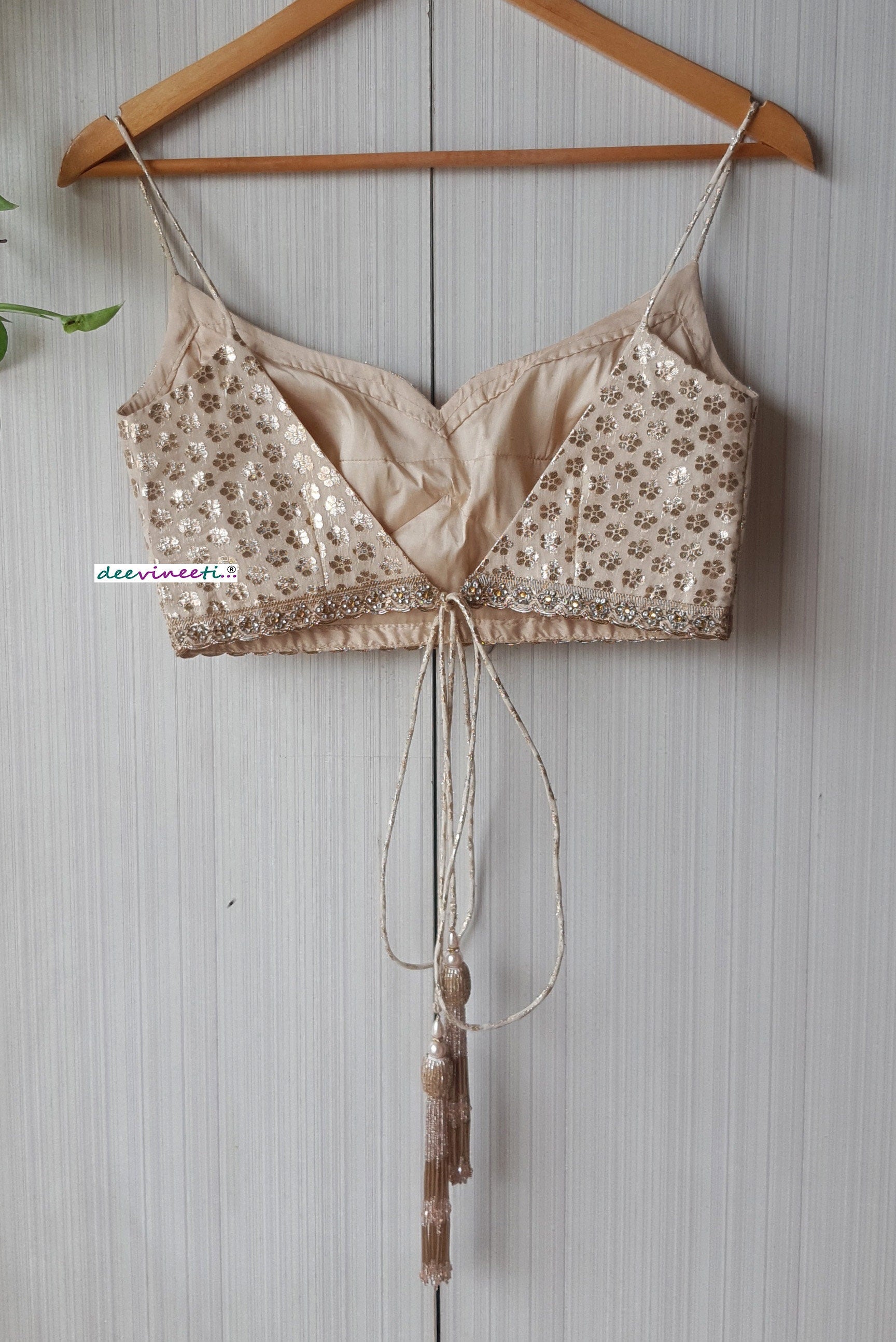 Beige Chanderi Brocade Spaghetti Blouse DVBL_252