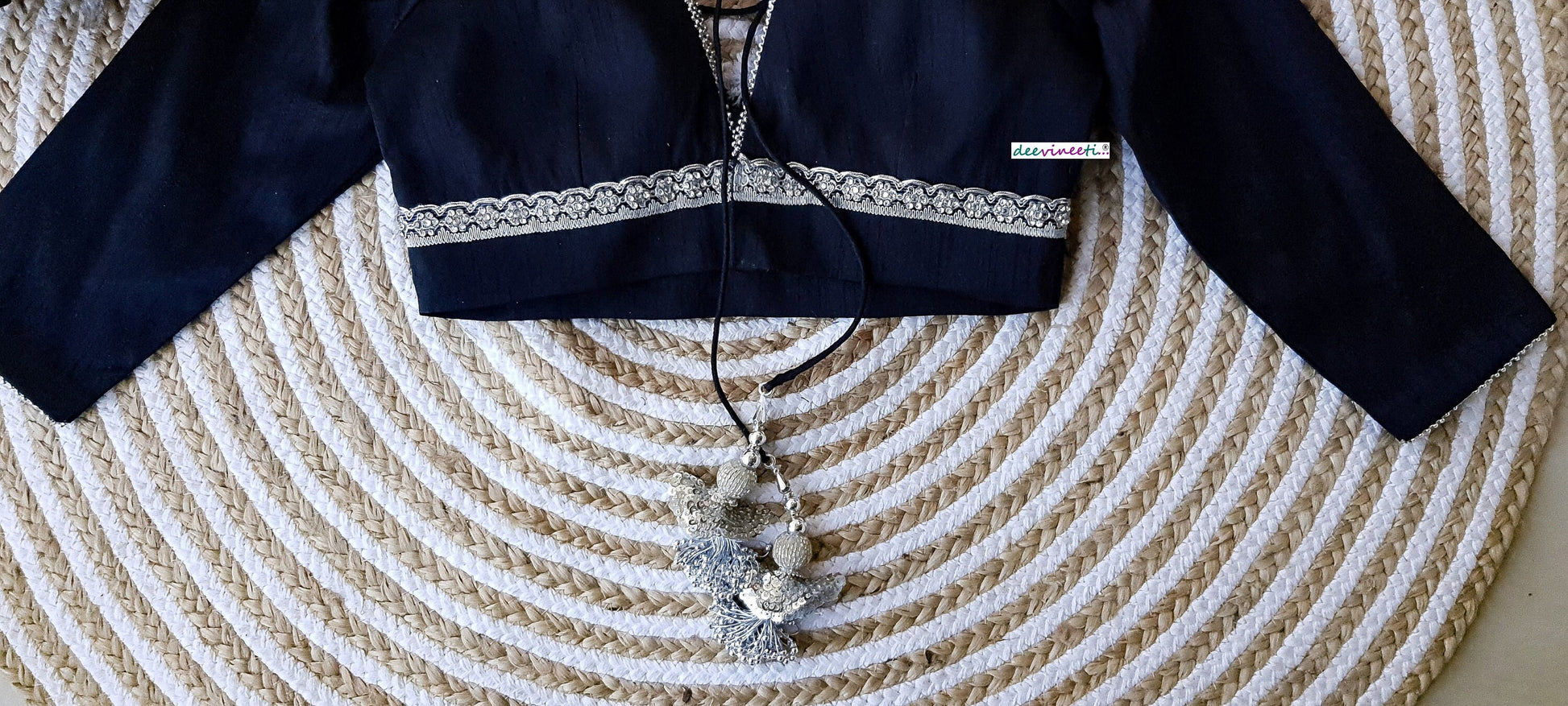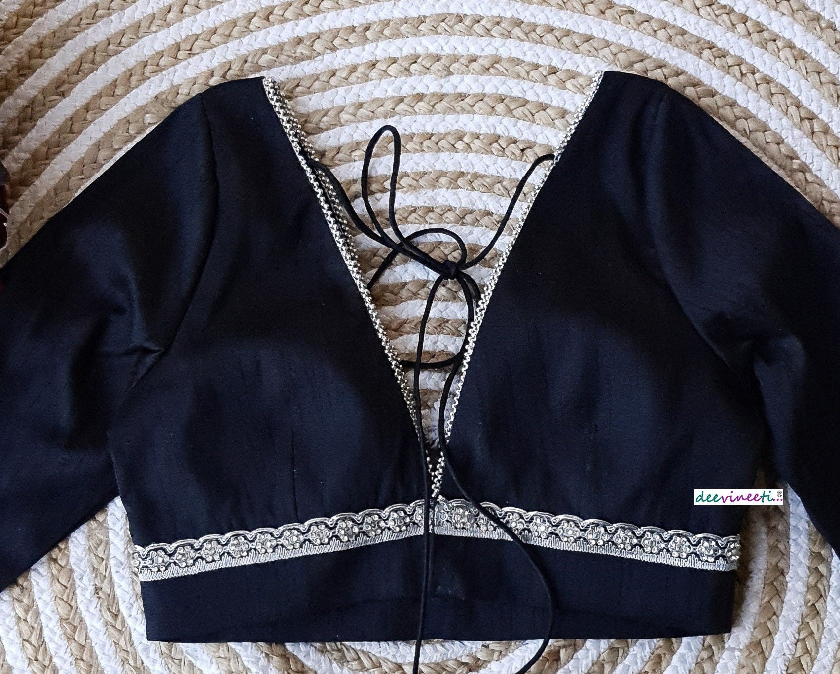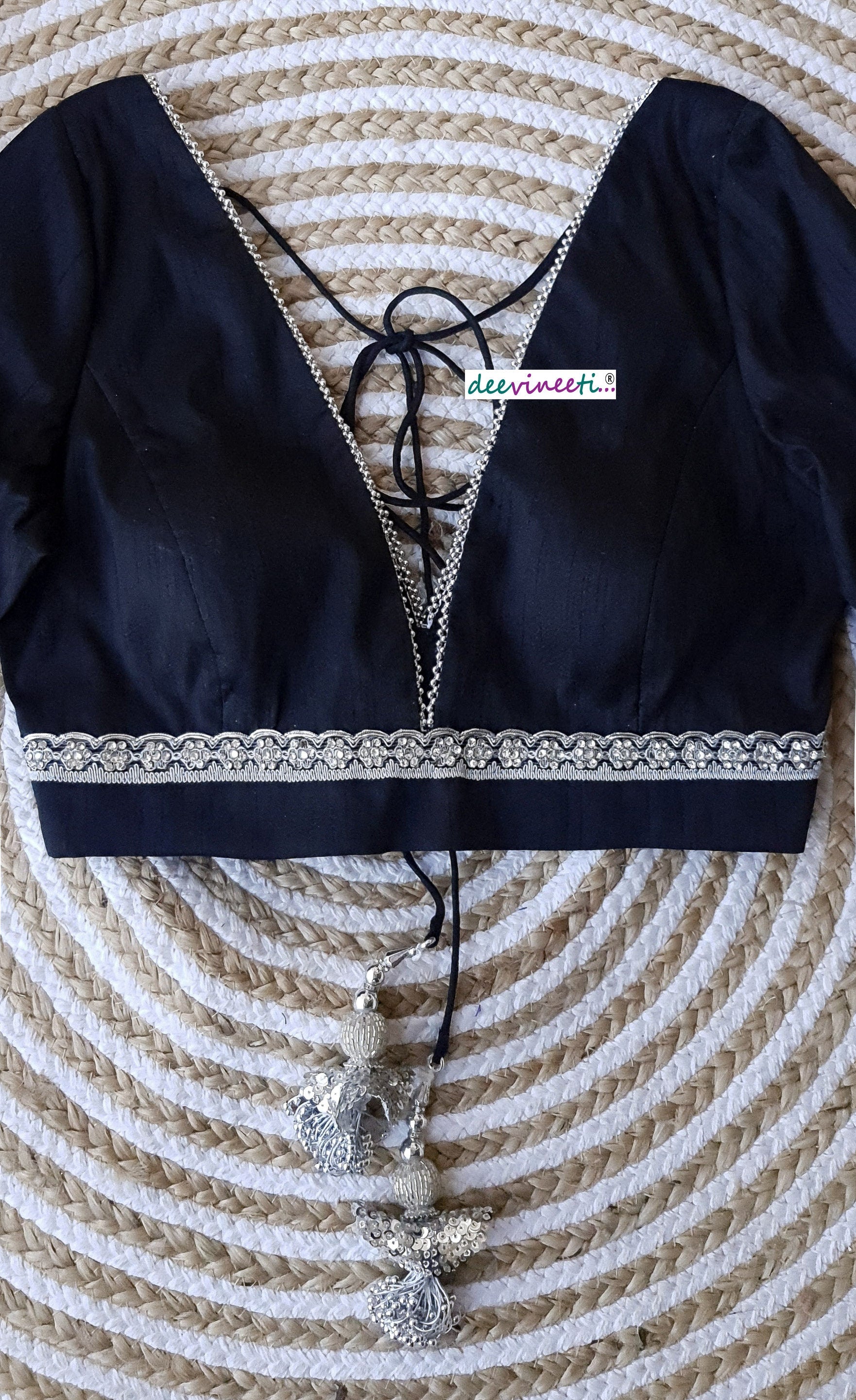 Raw Silk Plunge Neckline Three-fourth Sleeves Blouse DVBL_163
