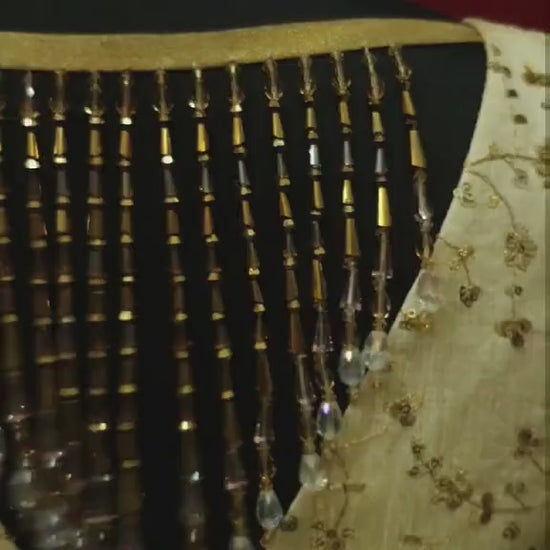 Please note the fringes in the blouse are handmade hence fragile. Please handle with care.
