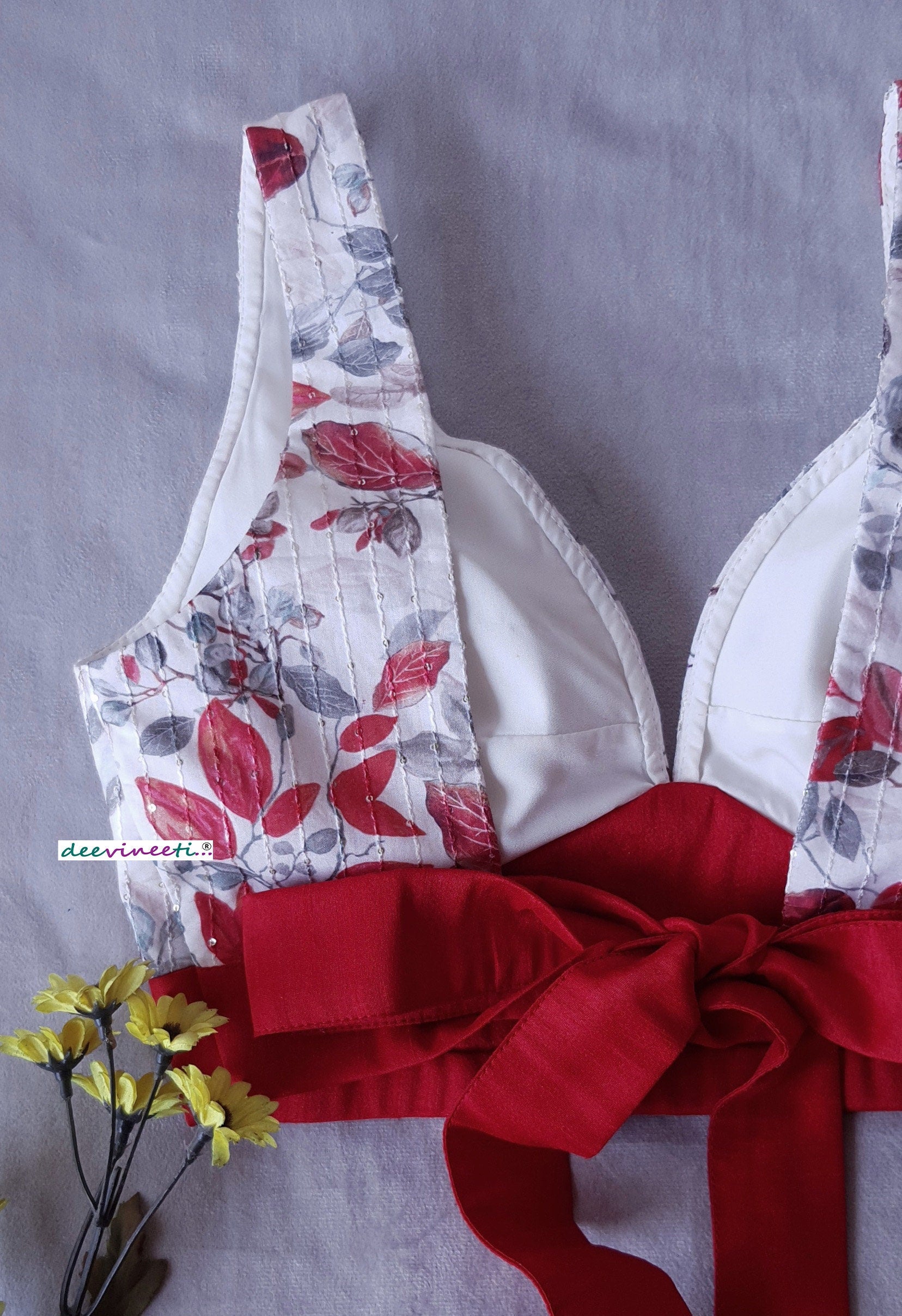 Floral Print Off White and Red Tie Blouse DVBL_180