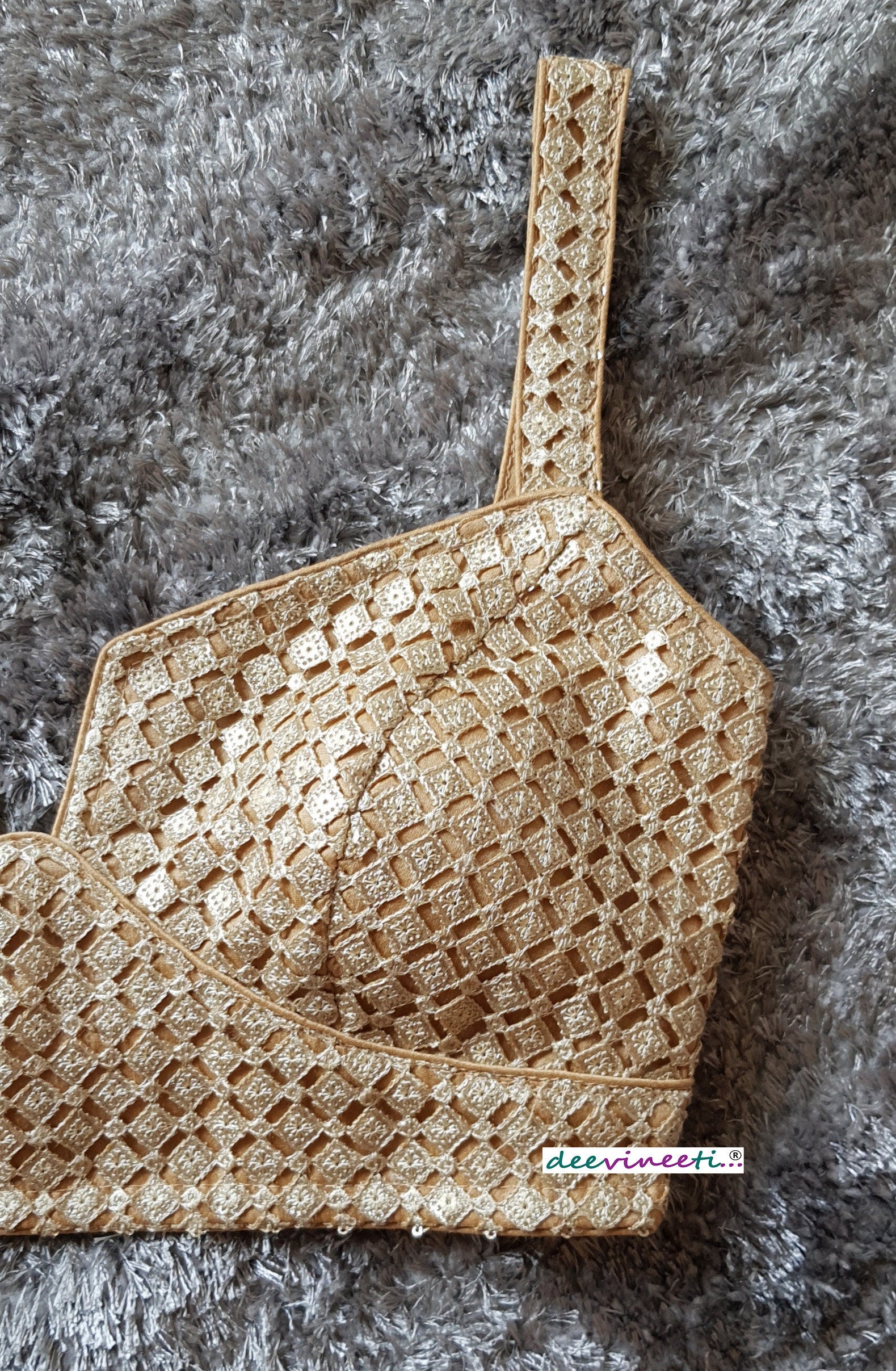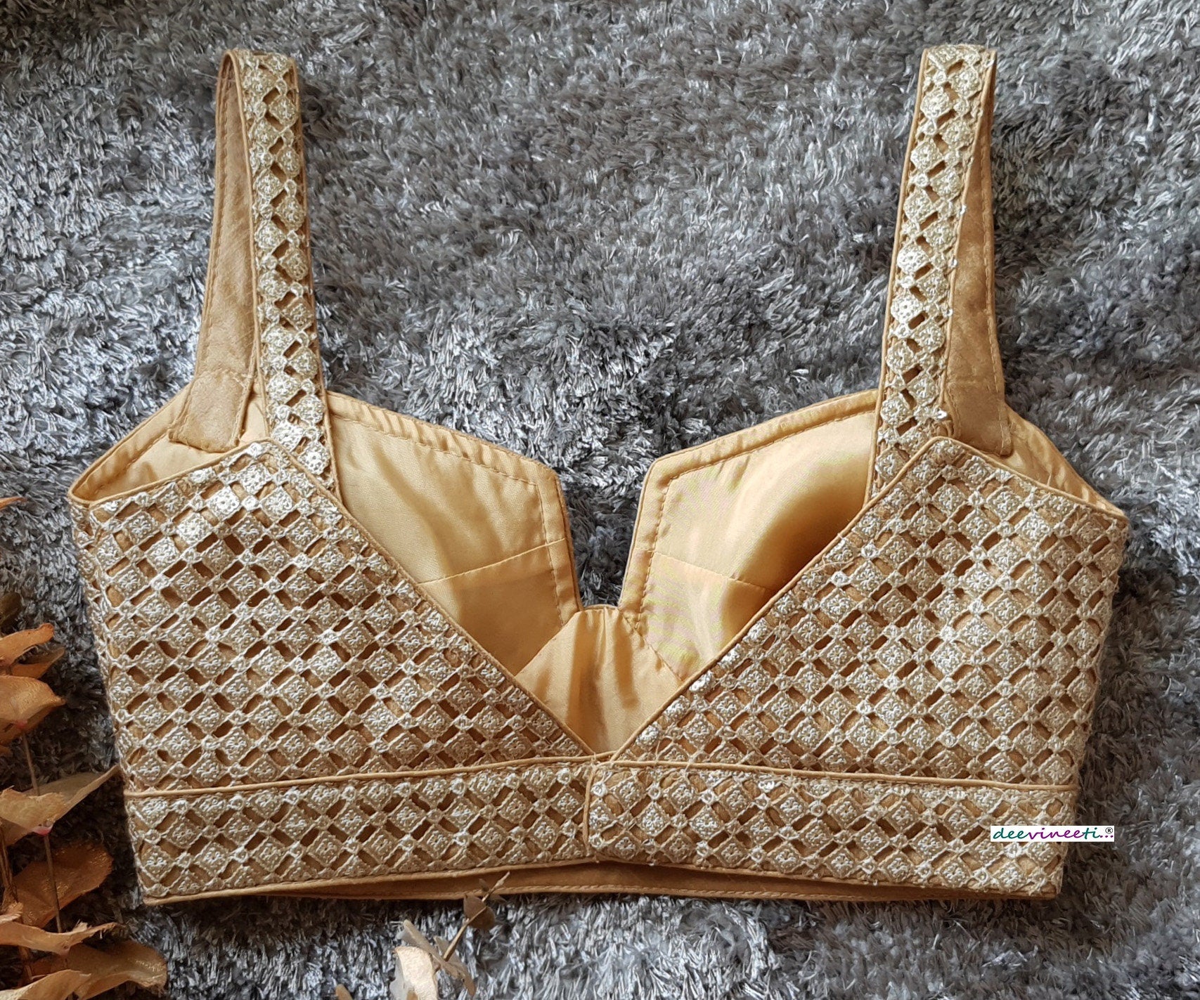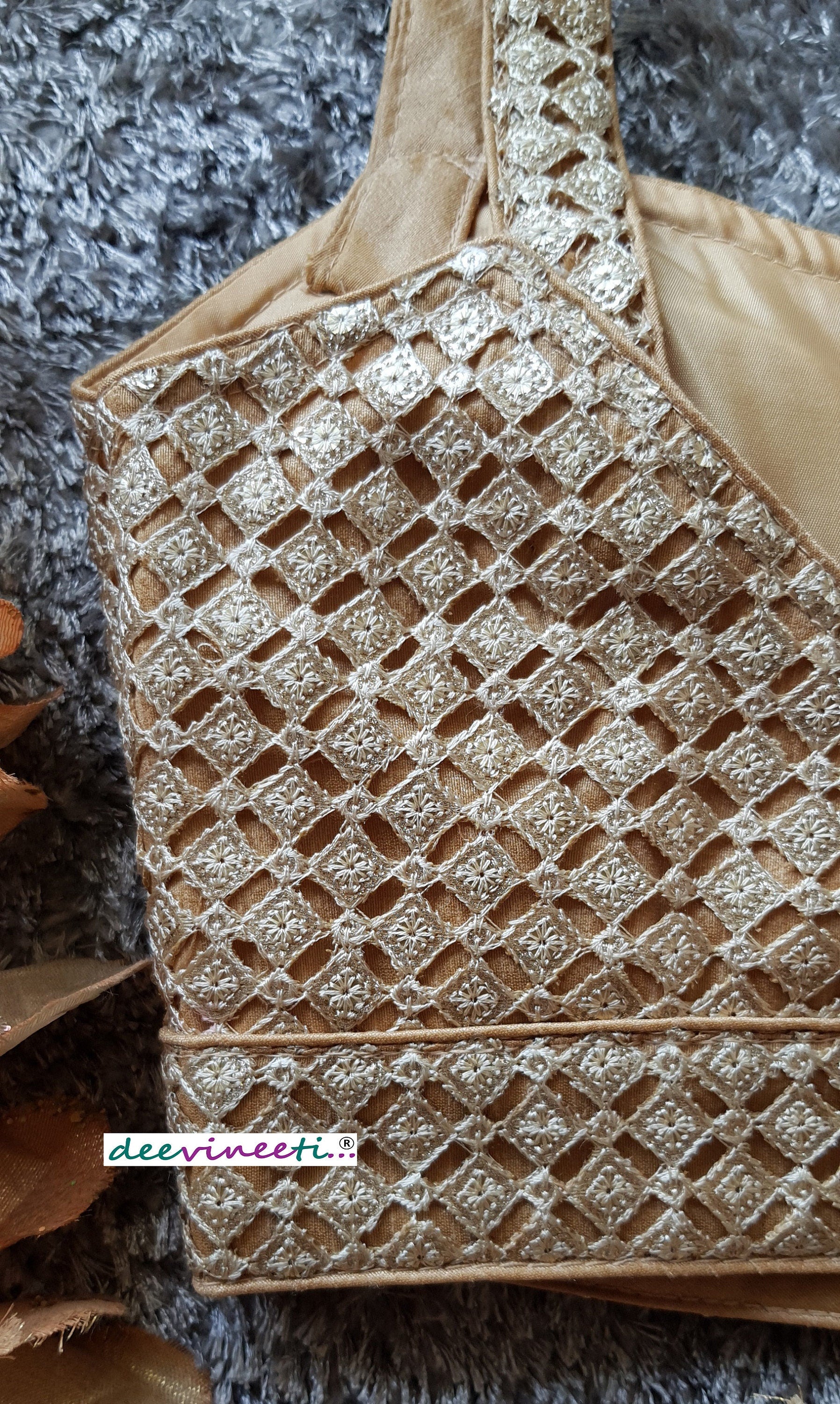 Designer Gold Embroidered Silk Cut Work Strap Blouse DVBL_210
