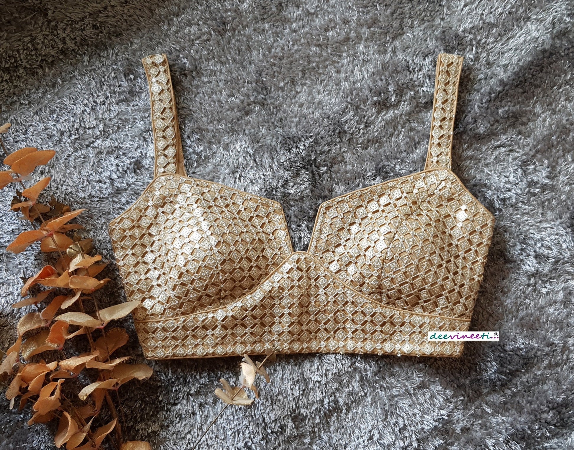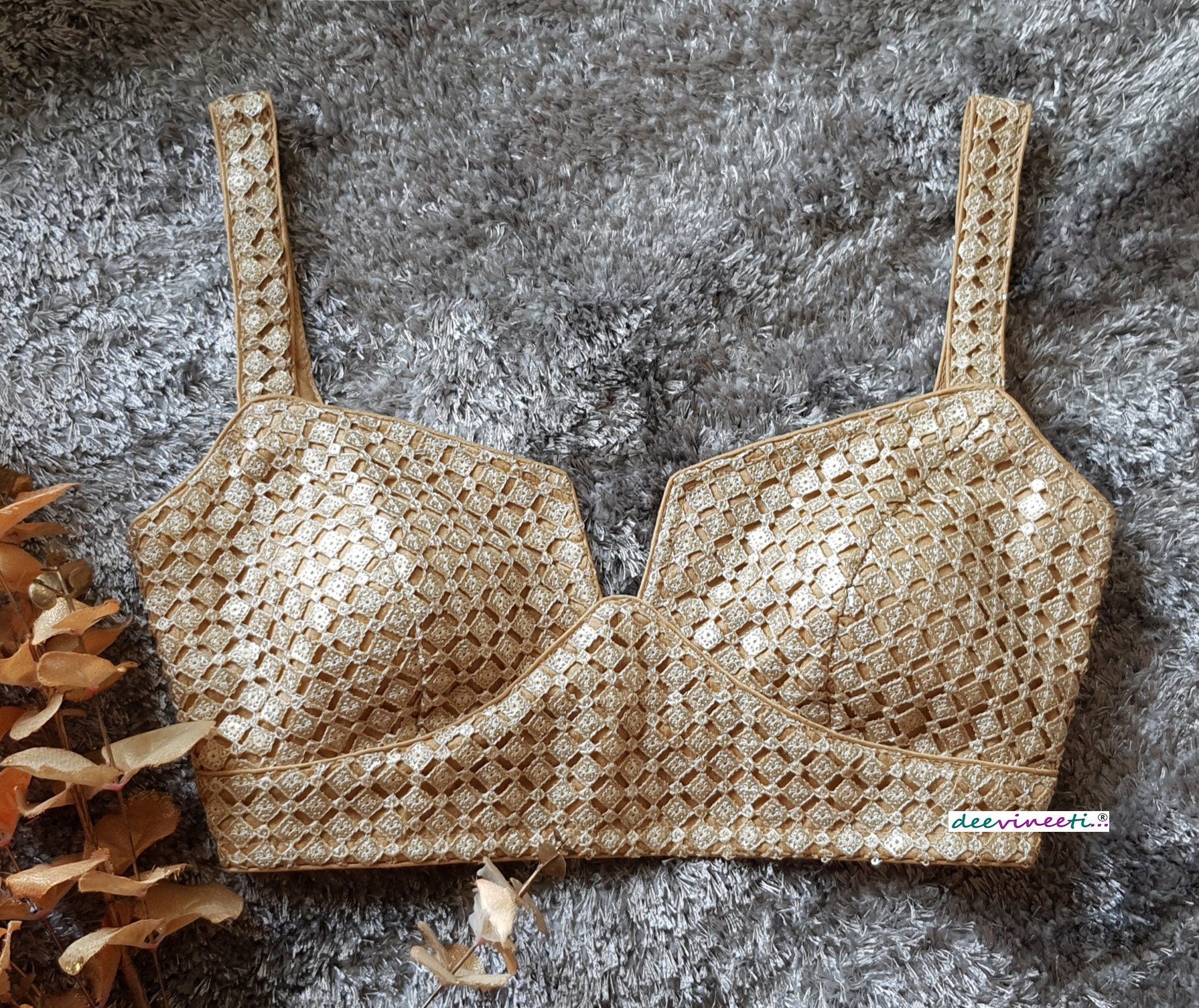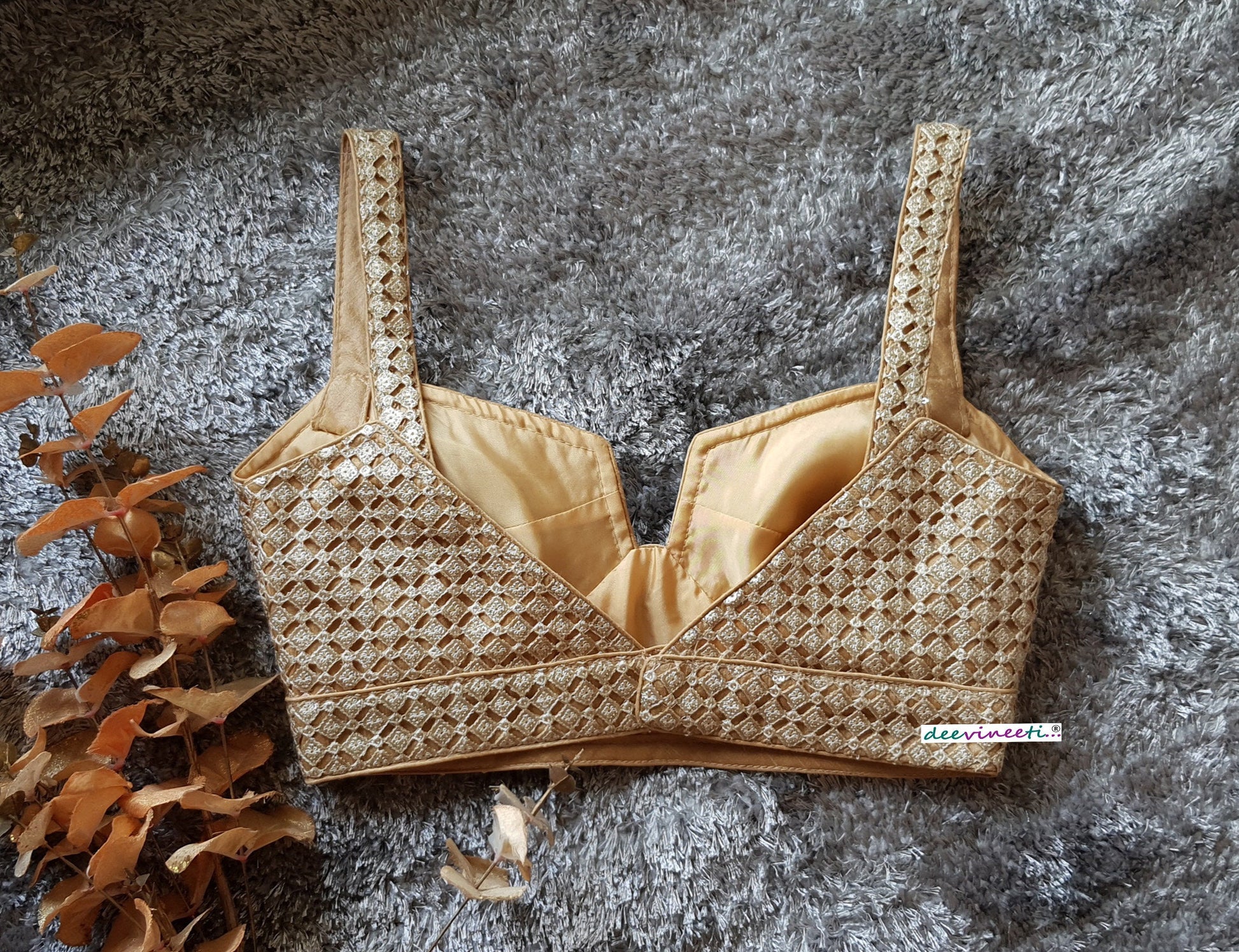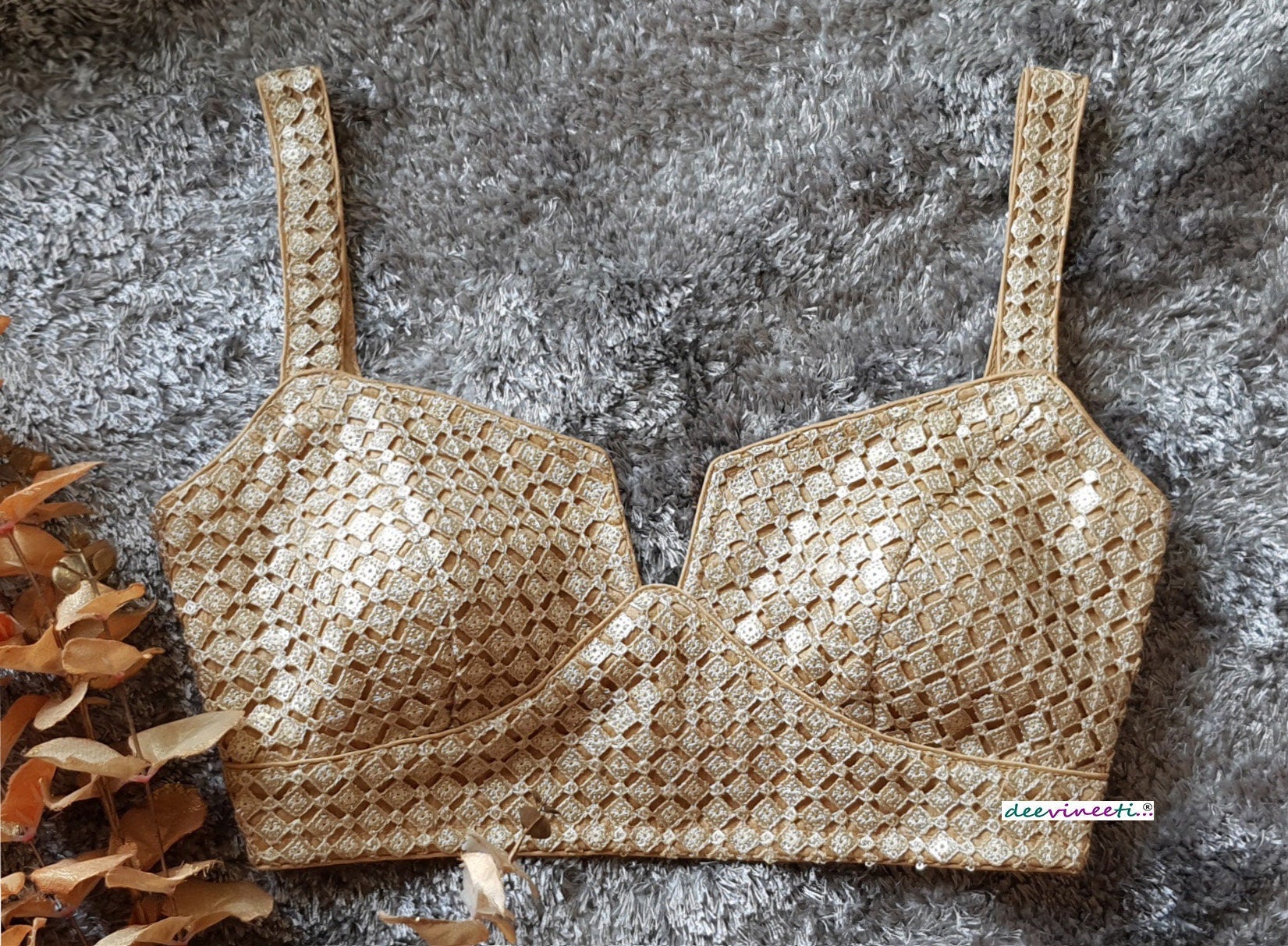 Designer Gold Embroidered Silk Cut Work Strap Blouse DVBL_210