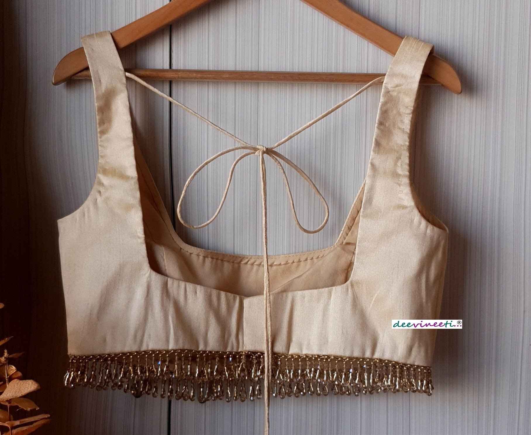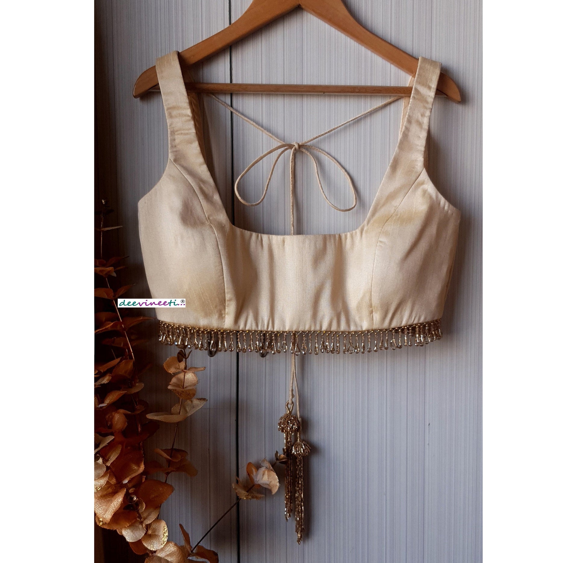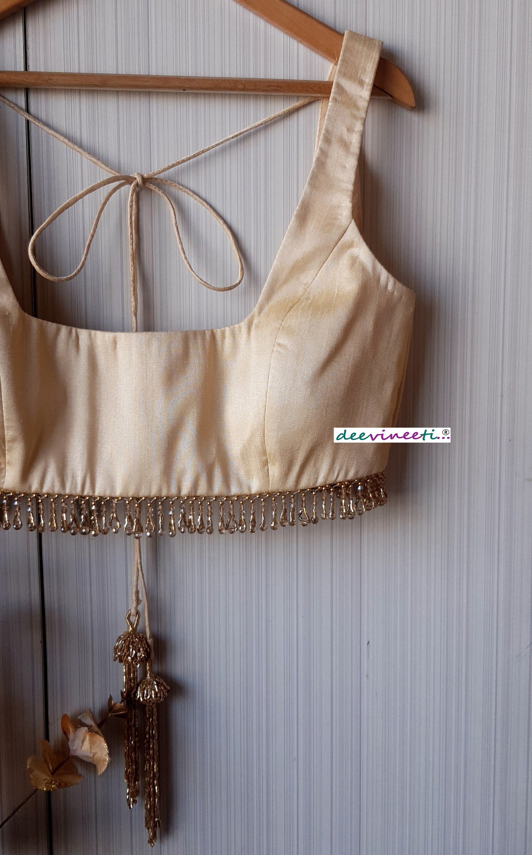 Please note the fringes in the blouse are handmade hence fragile. Please handle with care.