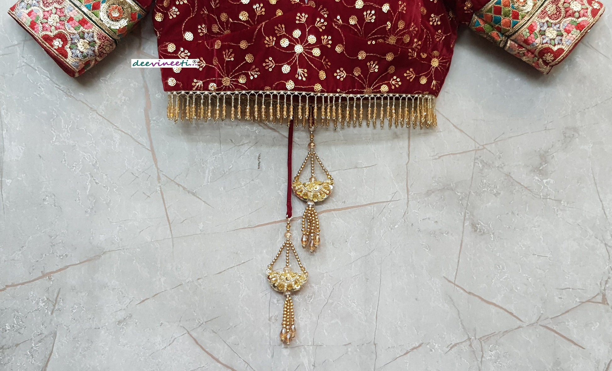 Please note the fringes in the blouse are handmade hence fragile. Please handle with care.