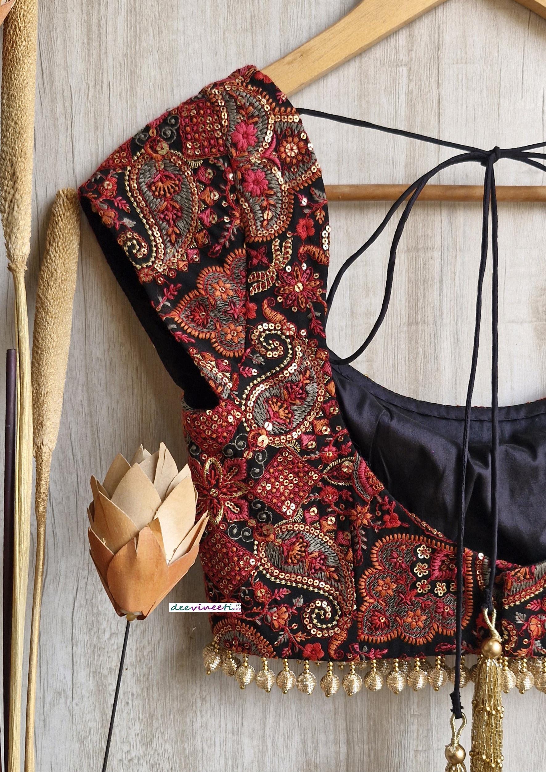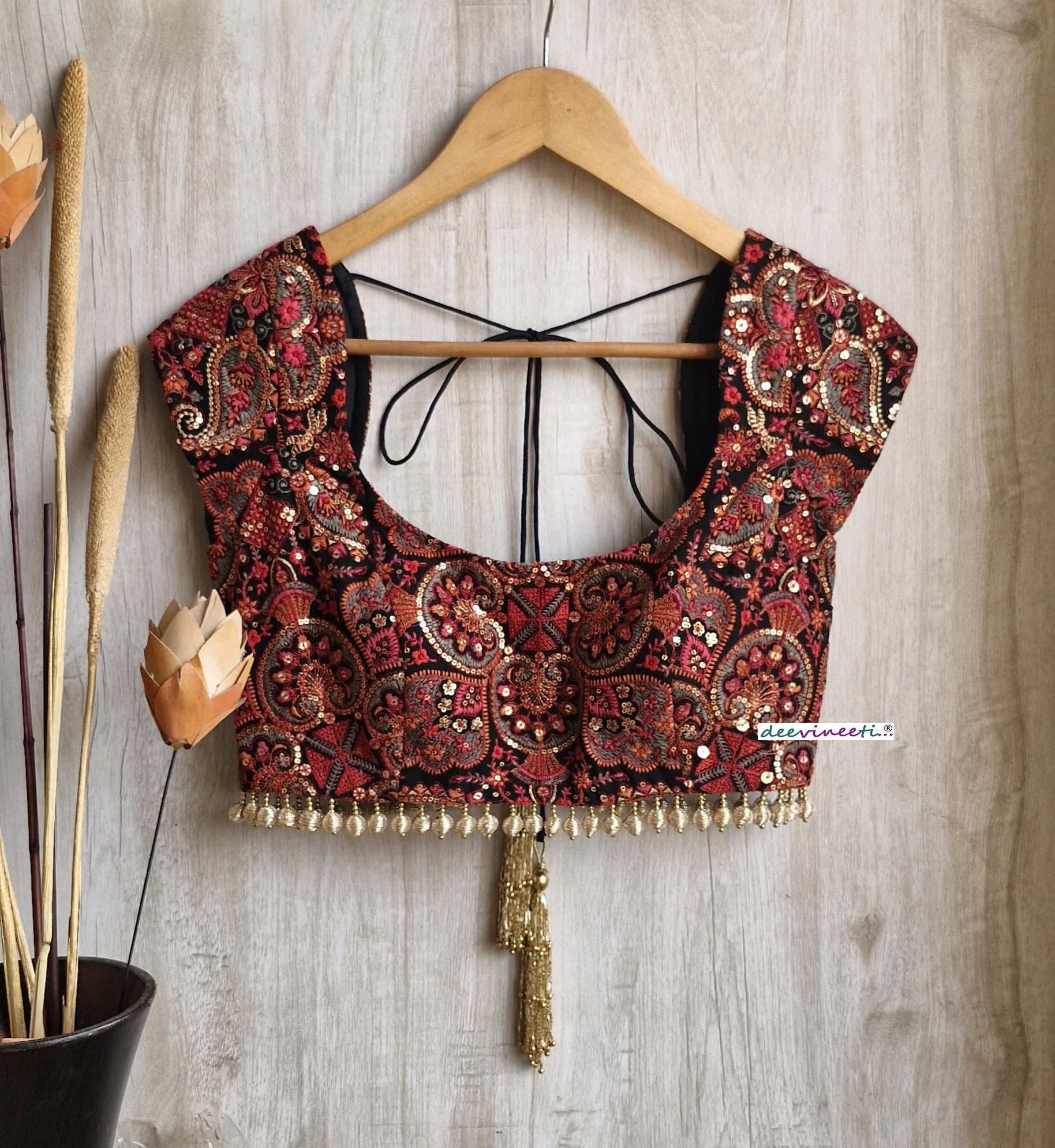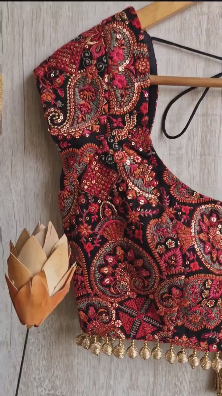 Please note the fringes in the blouse are handmade hence fragile. Please handle with care.