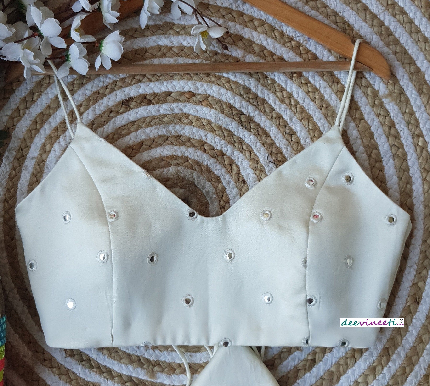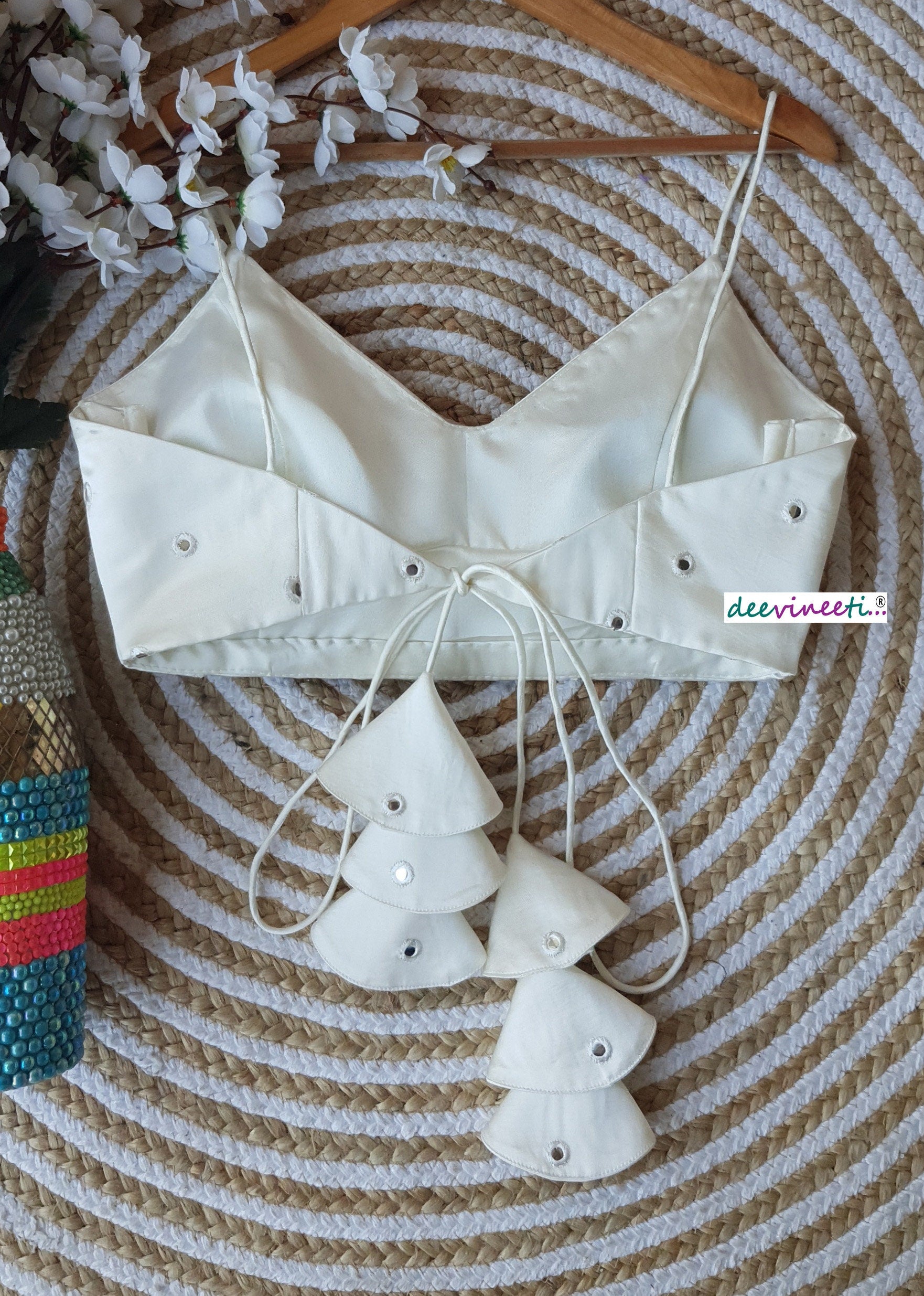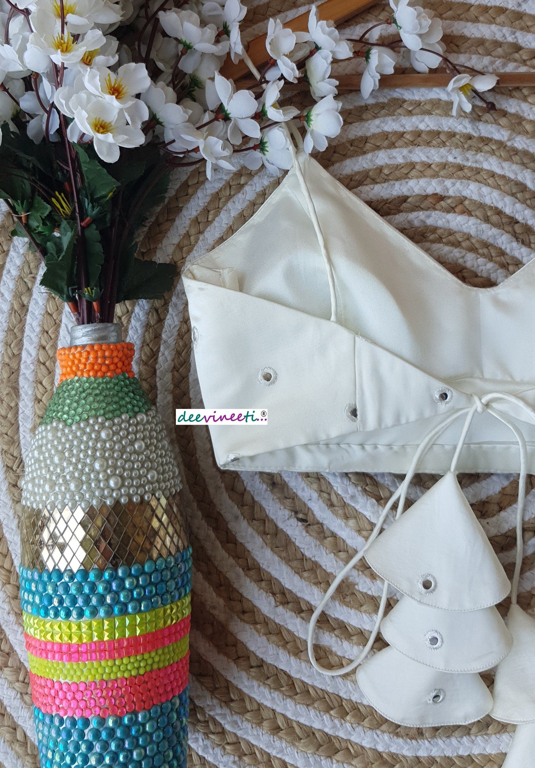 Off-White Satin Silk Spaghetti Blouse DVBL_148