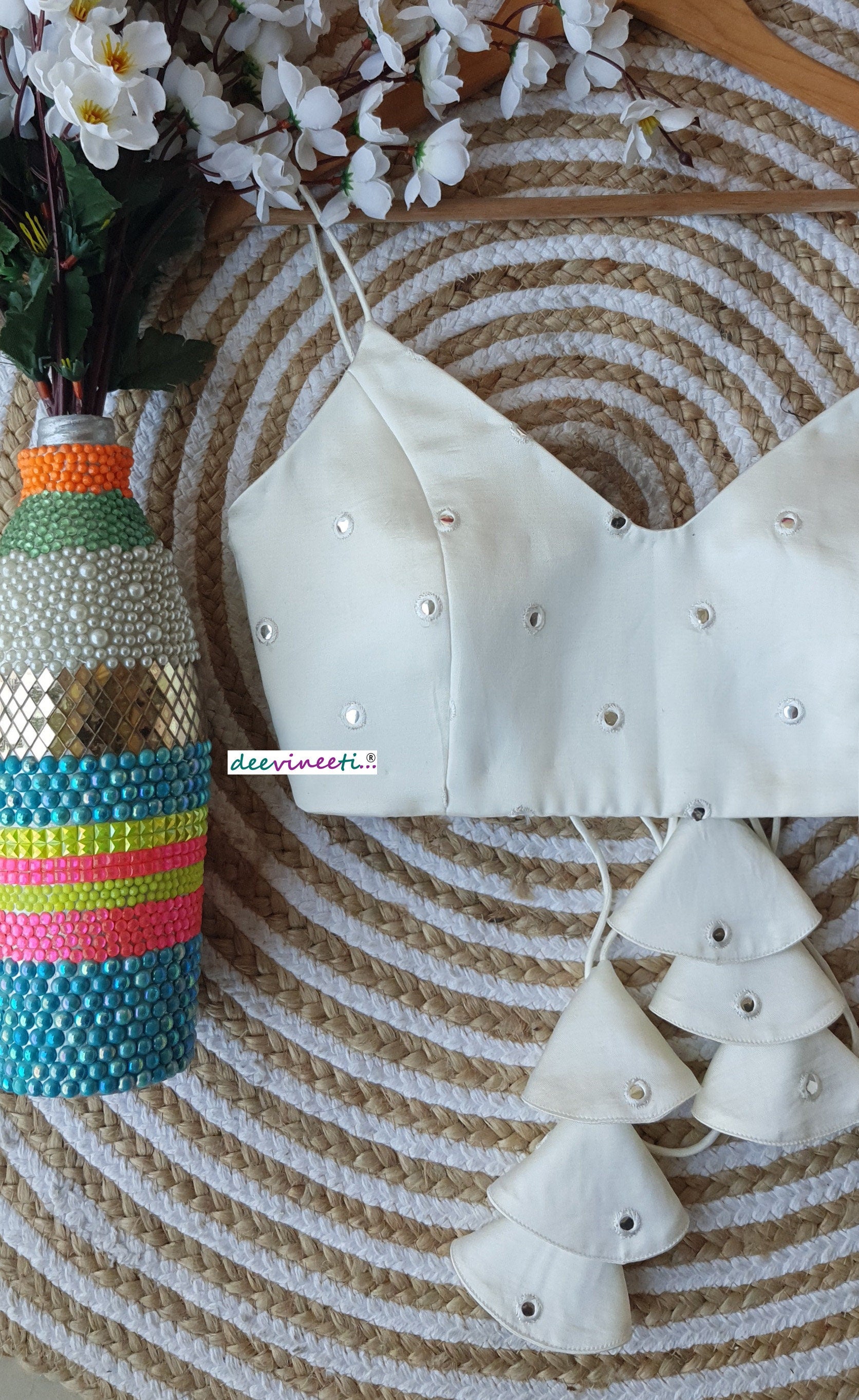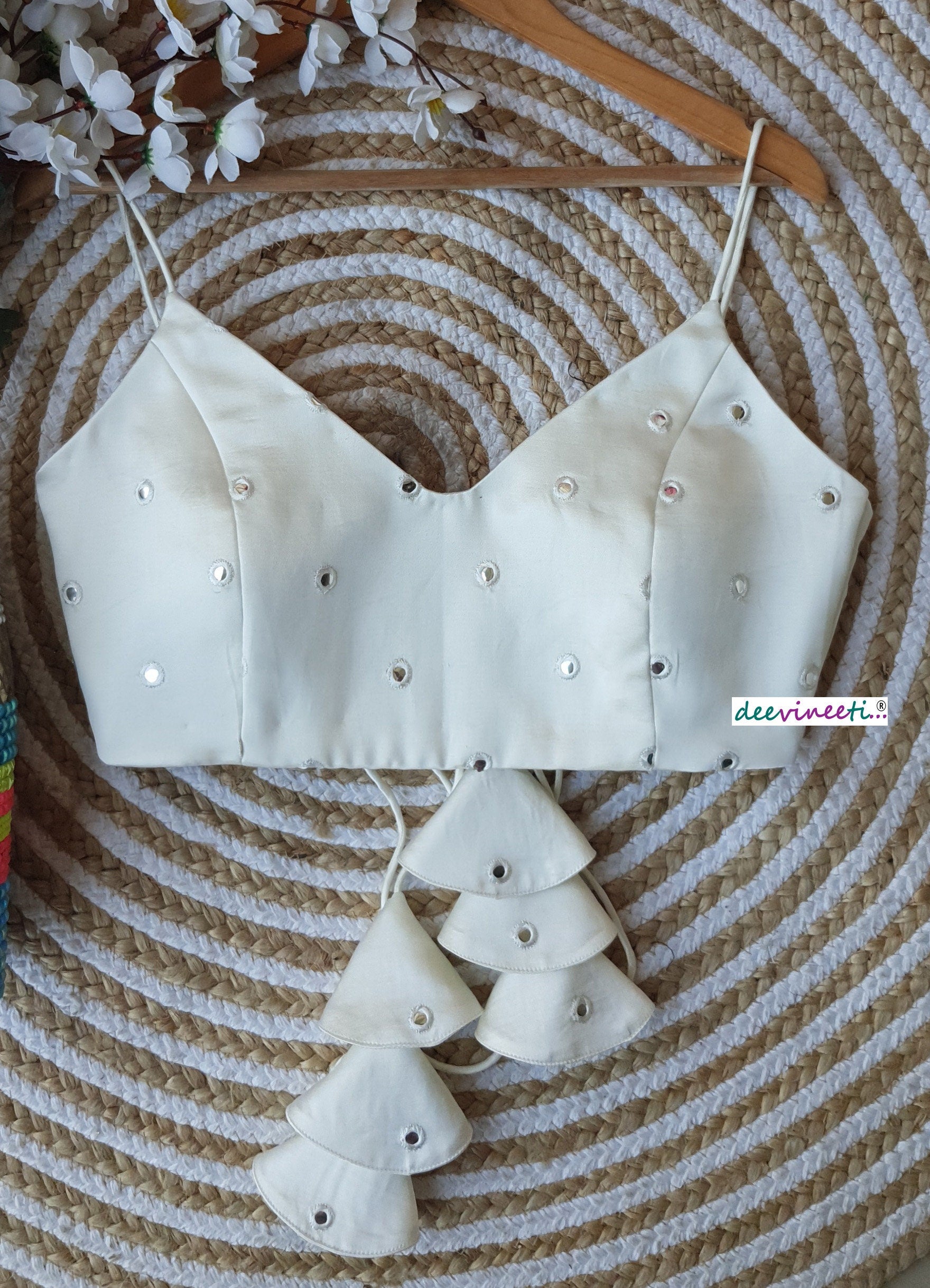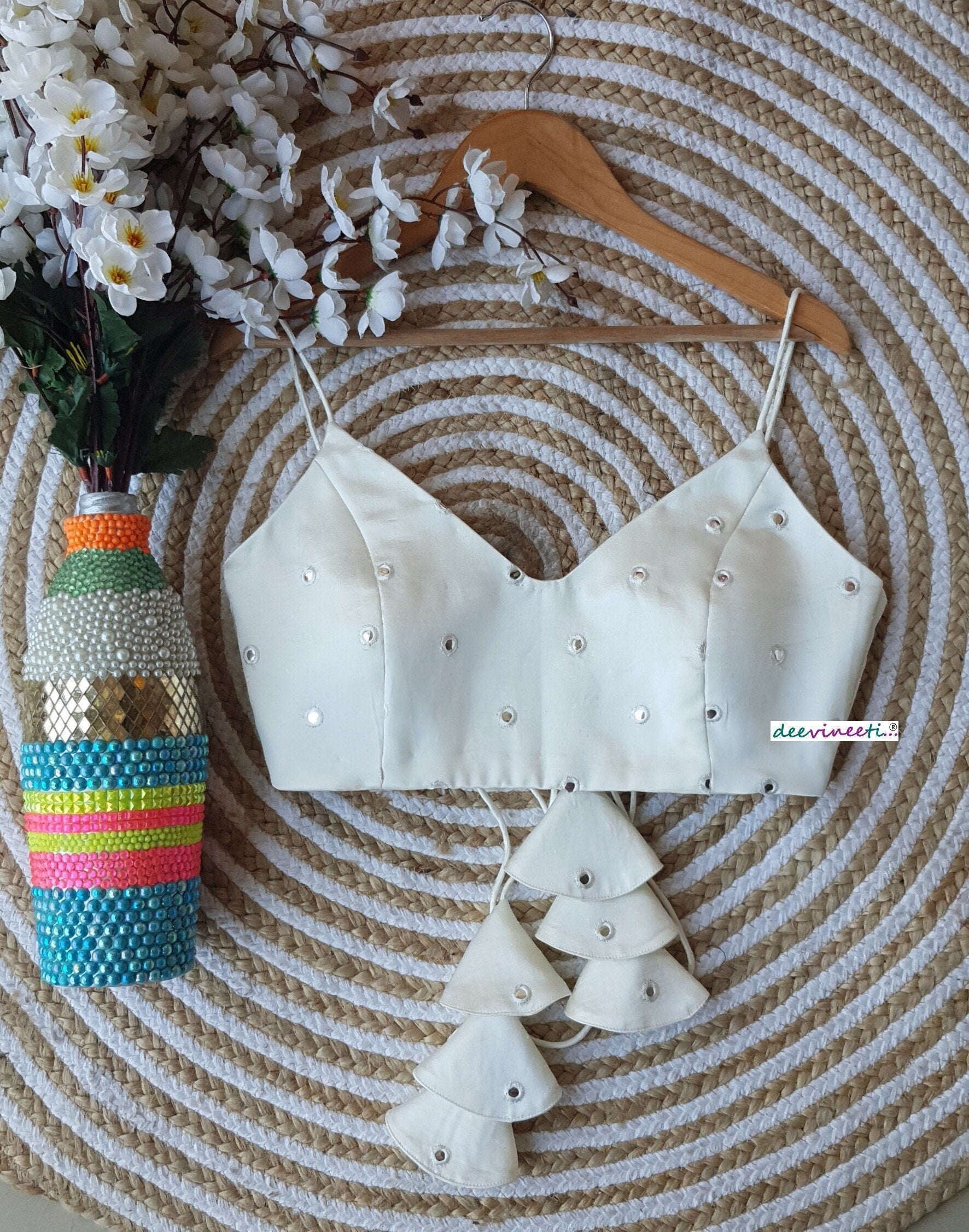 Off-White Satin Silk Spaghetti Blouse DVBL_148
