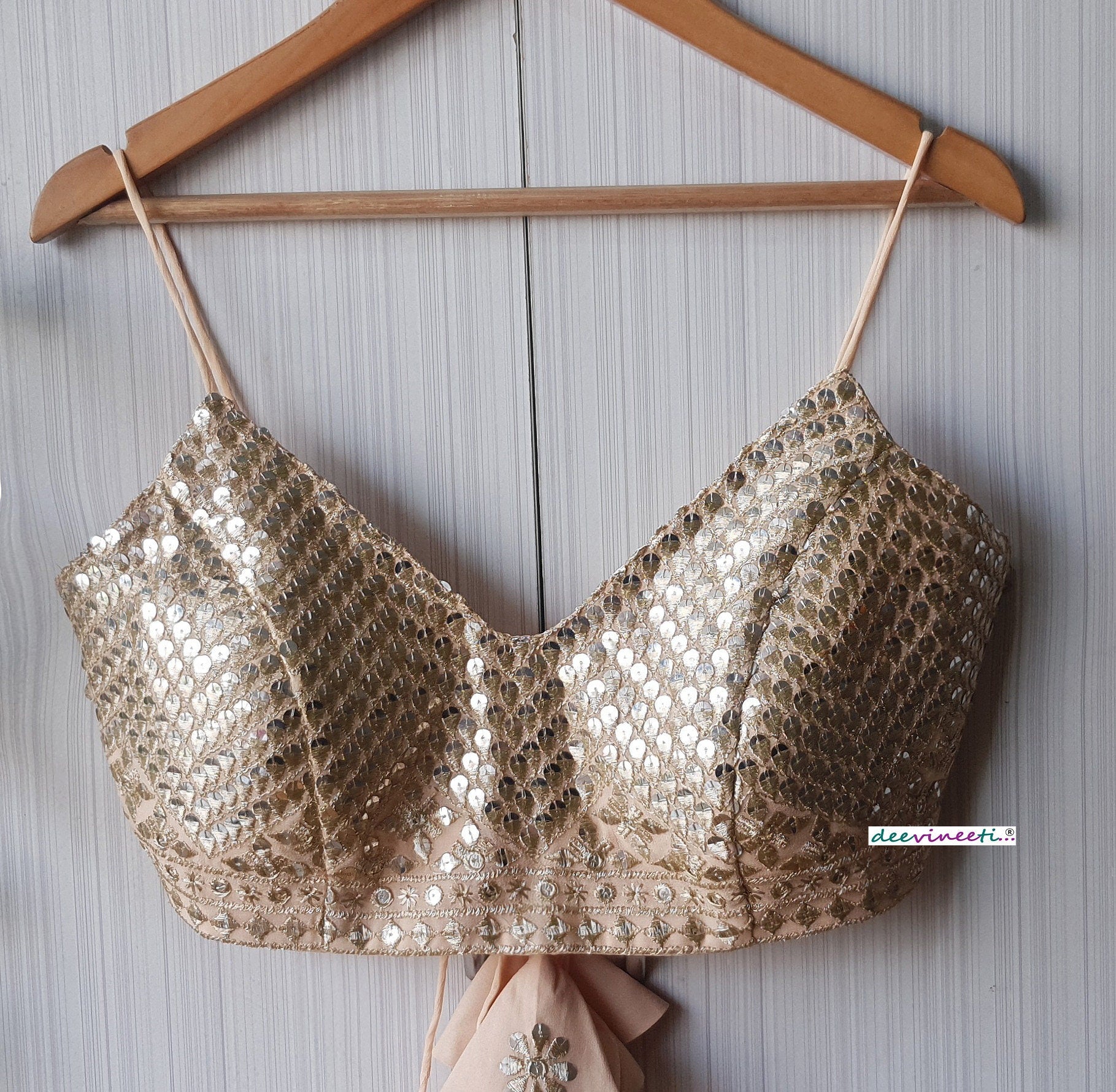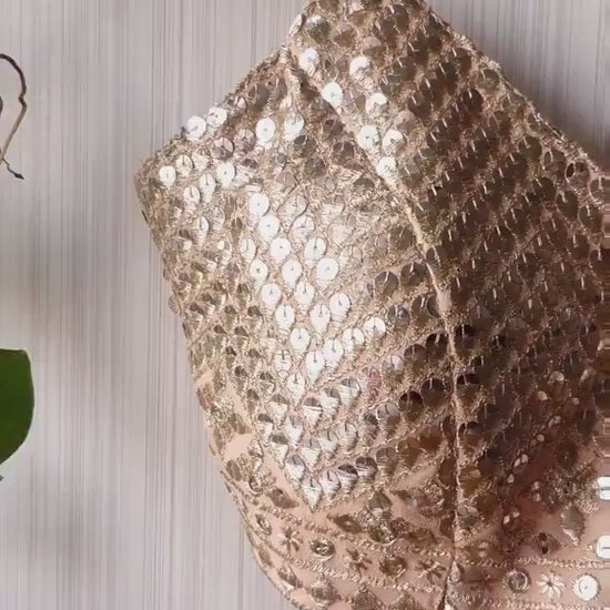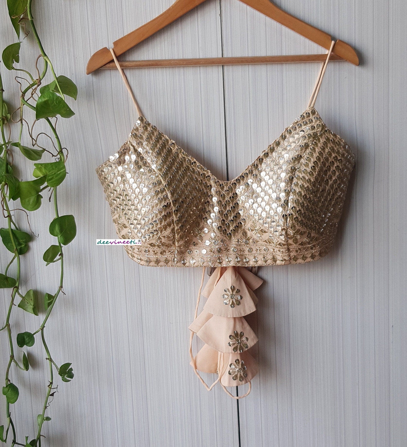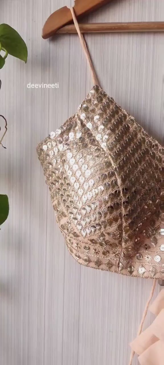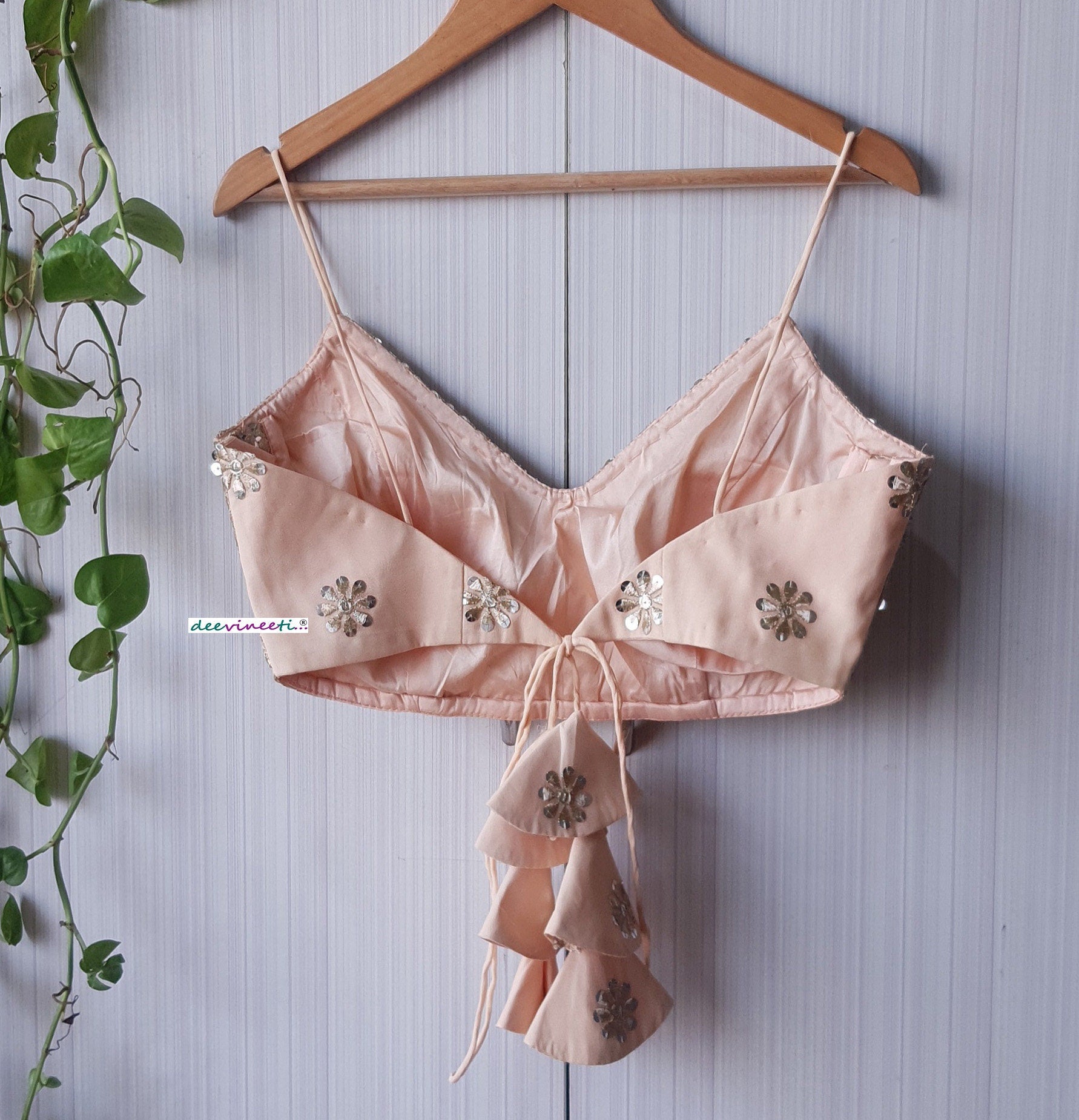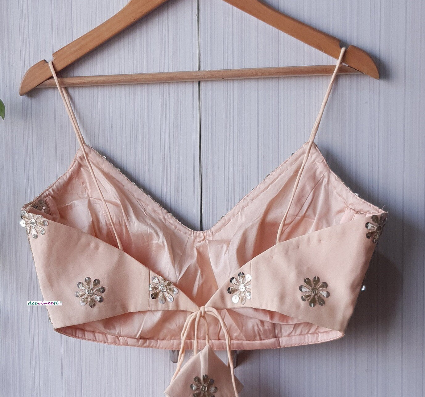 Peach and Gold Embroidered Spaghetti Blouse DVBL_284