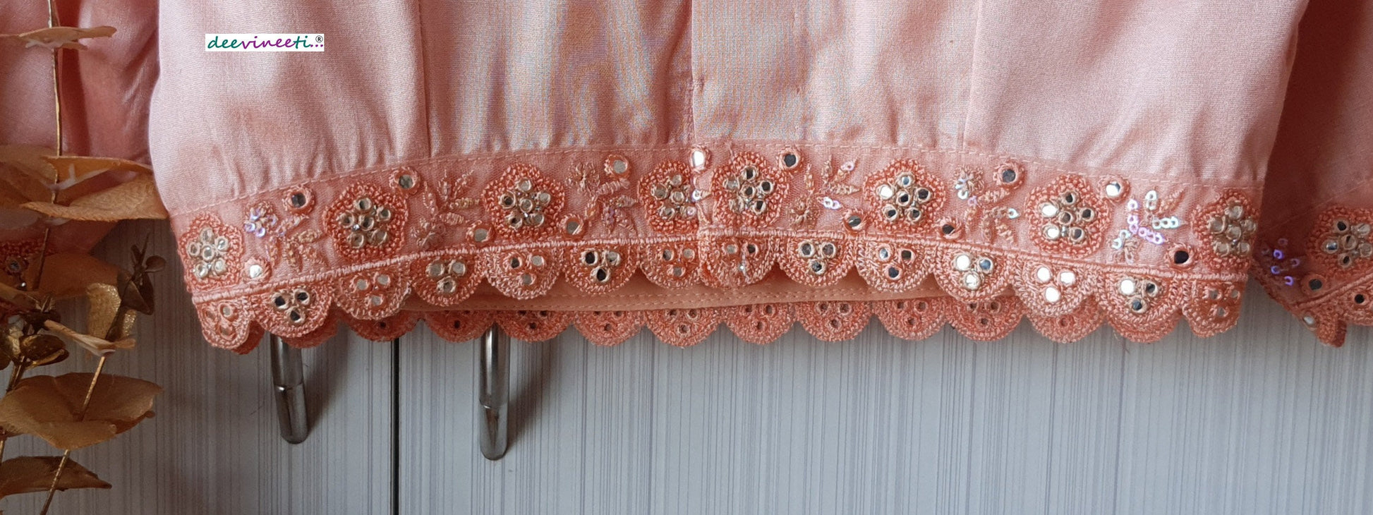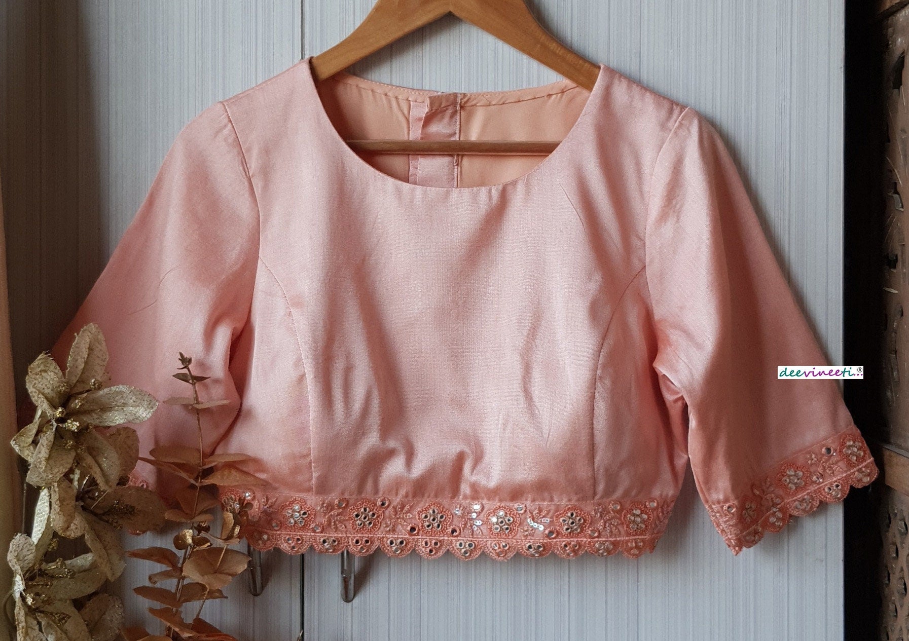 Peach Cotton Silk Jewel Neck Blouse DVBL_174