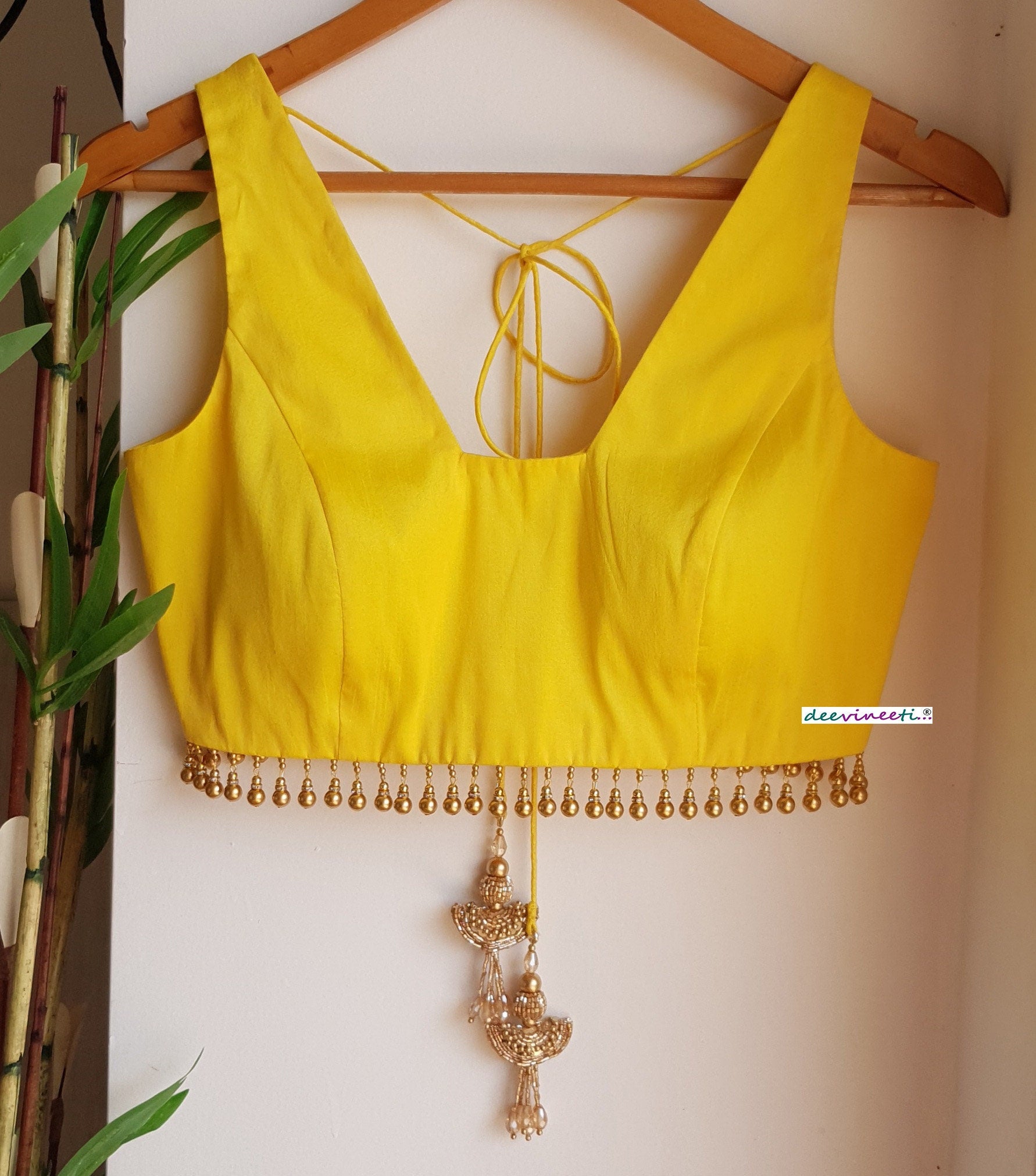 Please note the fringes in the blouse are handmade hence fragile. Please handle with care.
