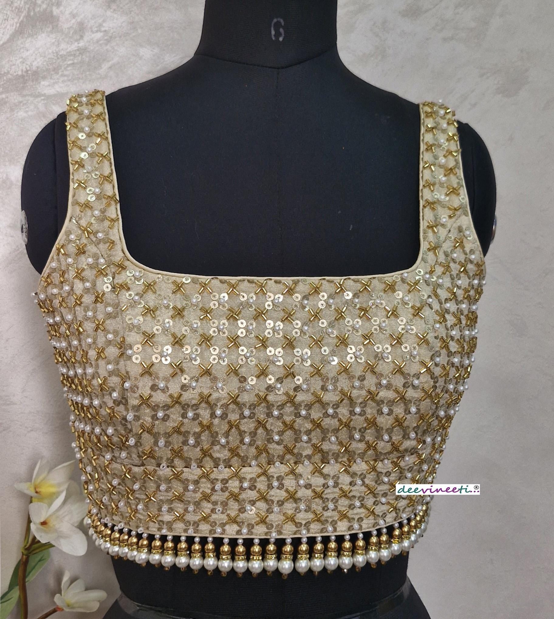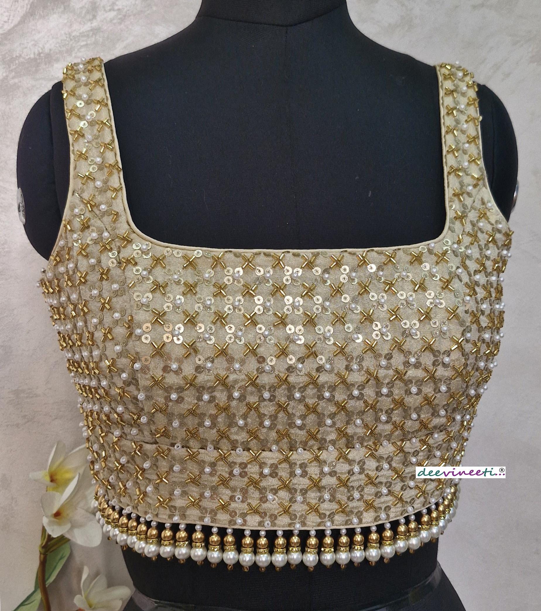 Gold Embroidered Tissue Silk Blouse Square Neck DVBL_399