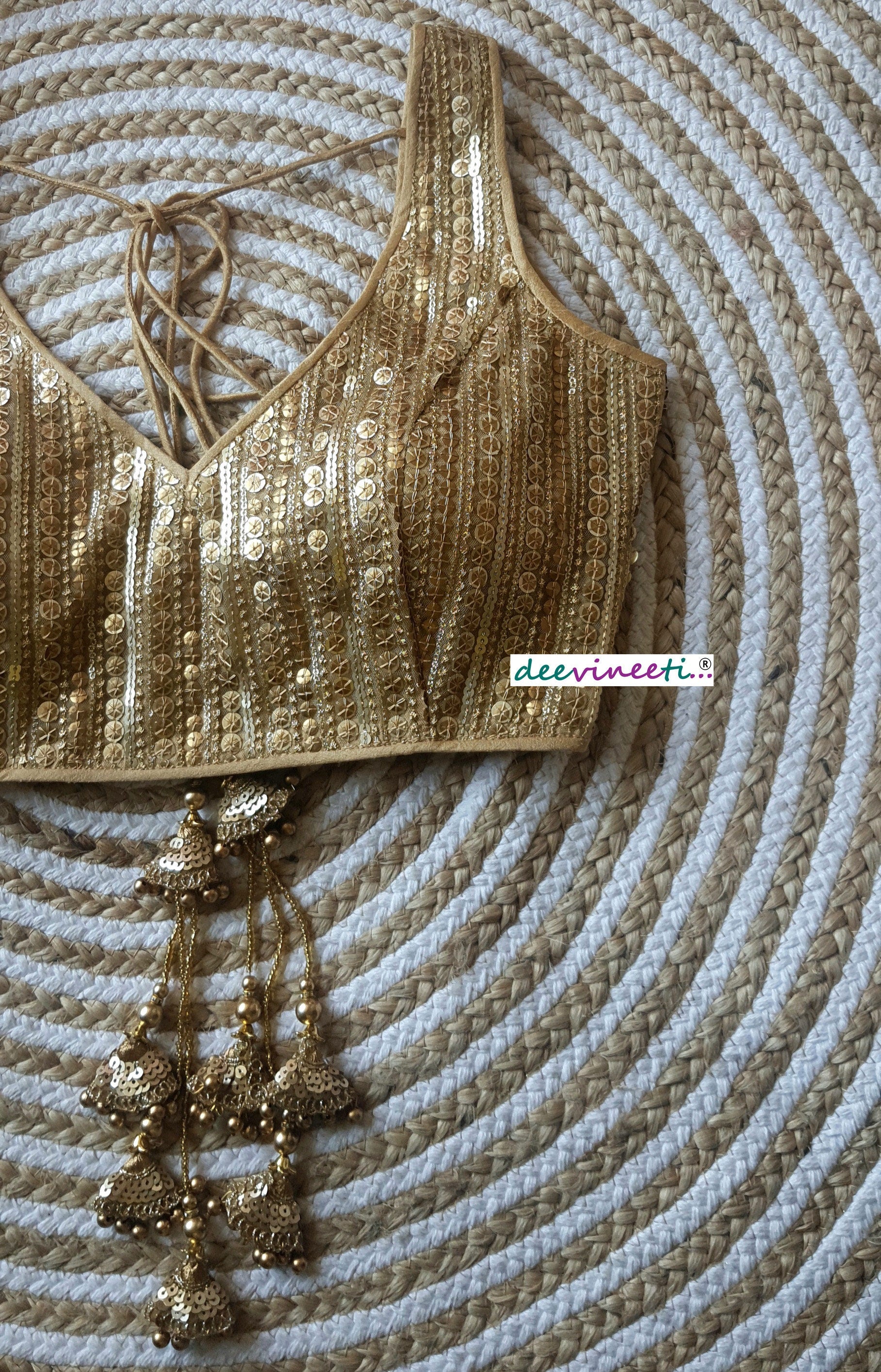 Gold Sequins Embroidered Deep V Neck Blouse DVBL_126