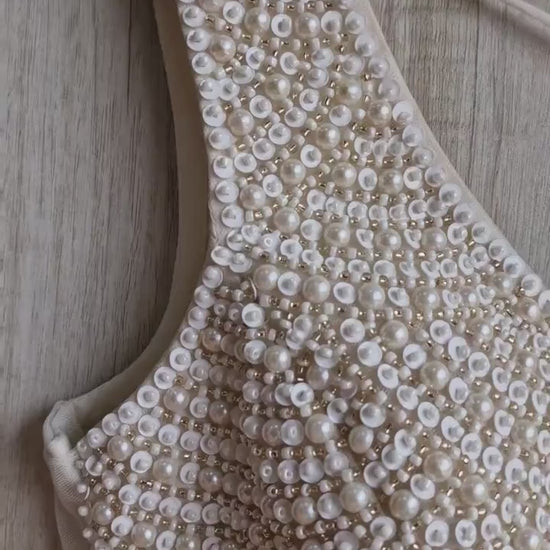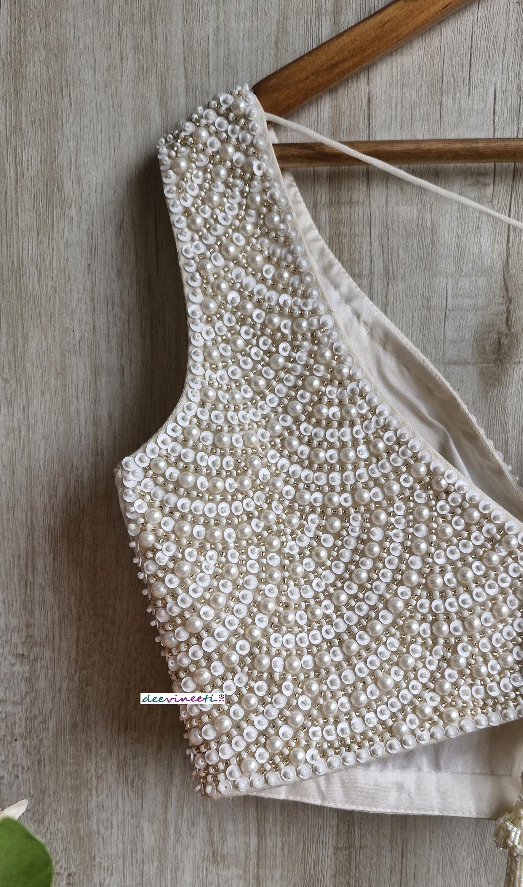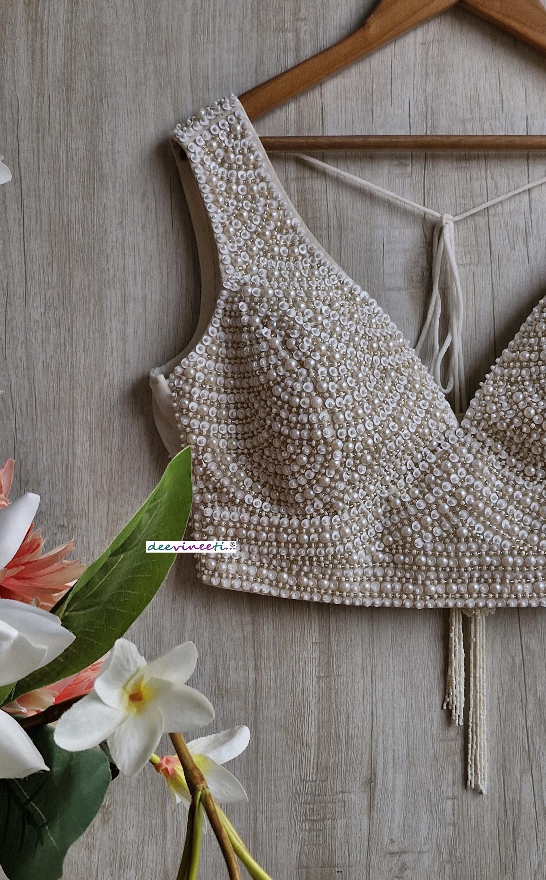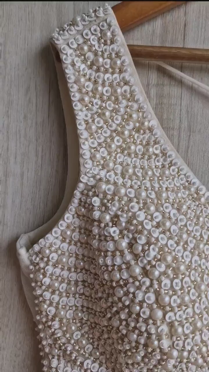 Beads and Sequins Hand Embroidered Ivory V Neck DVBL_385