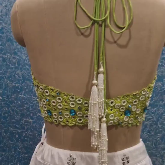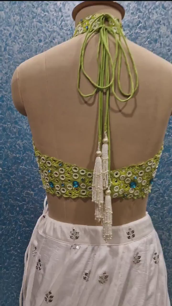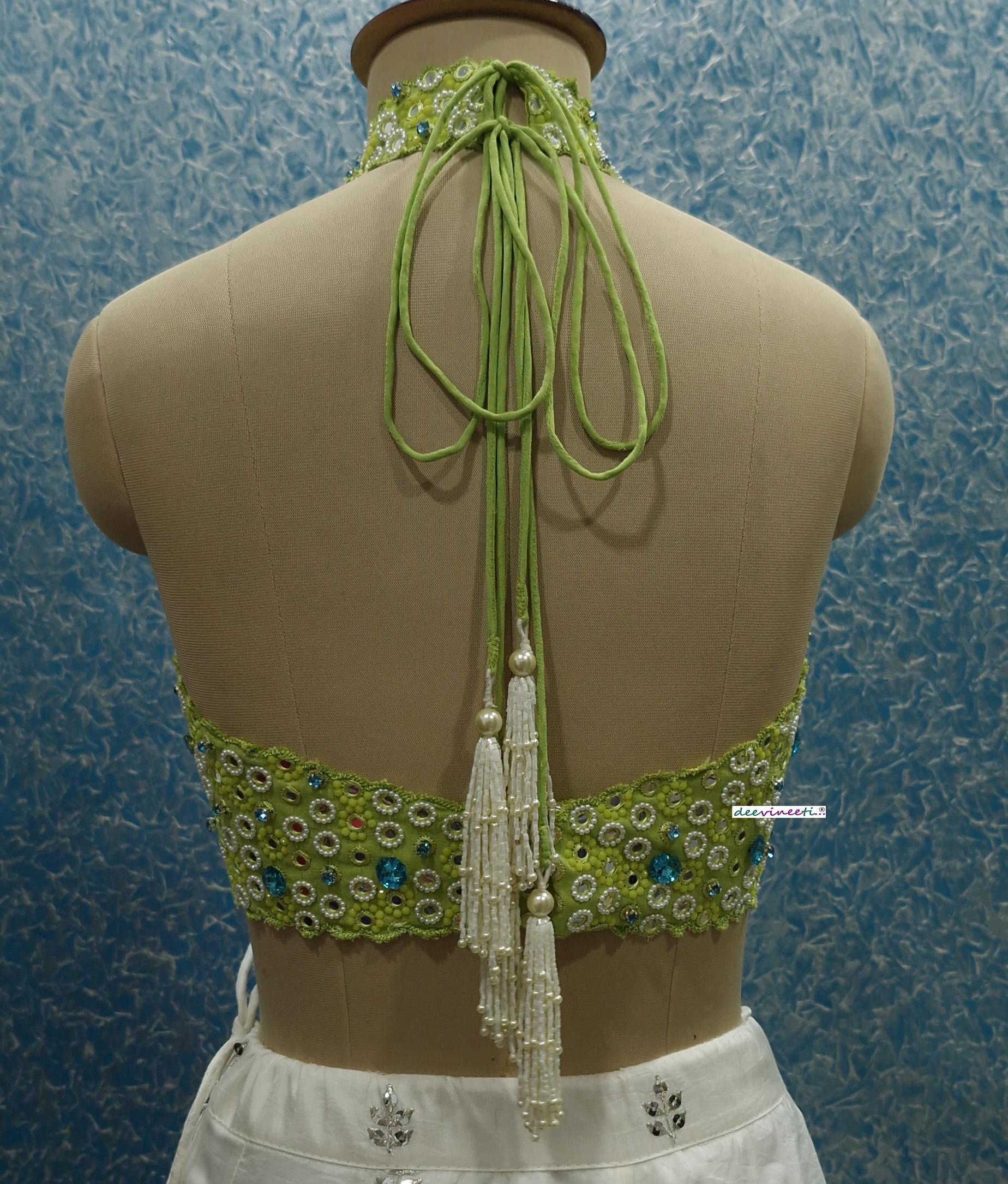 Hand Embroidered Lime Green Halter Blouse DVBL_386