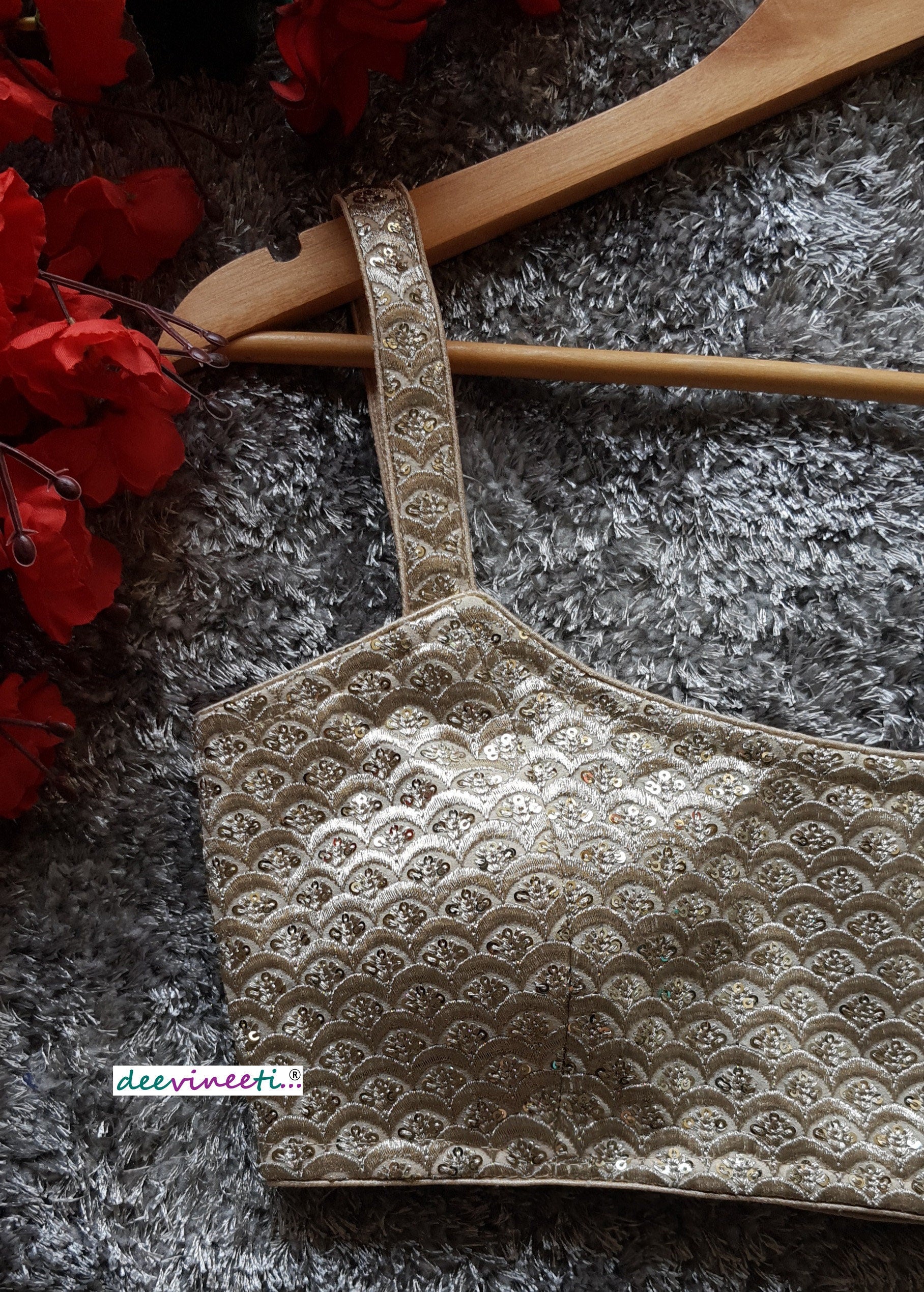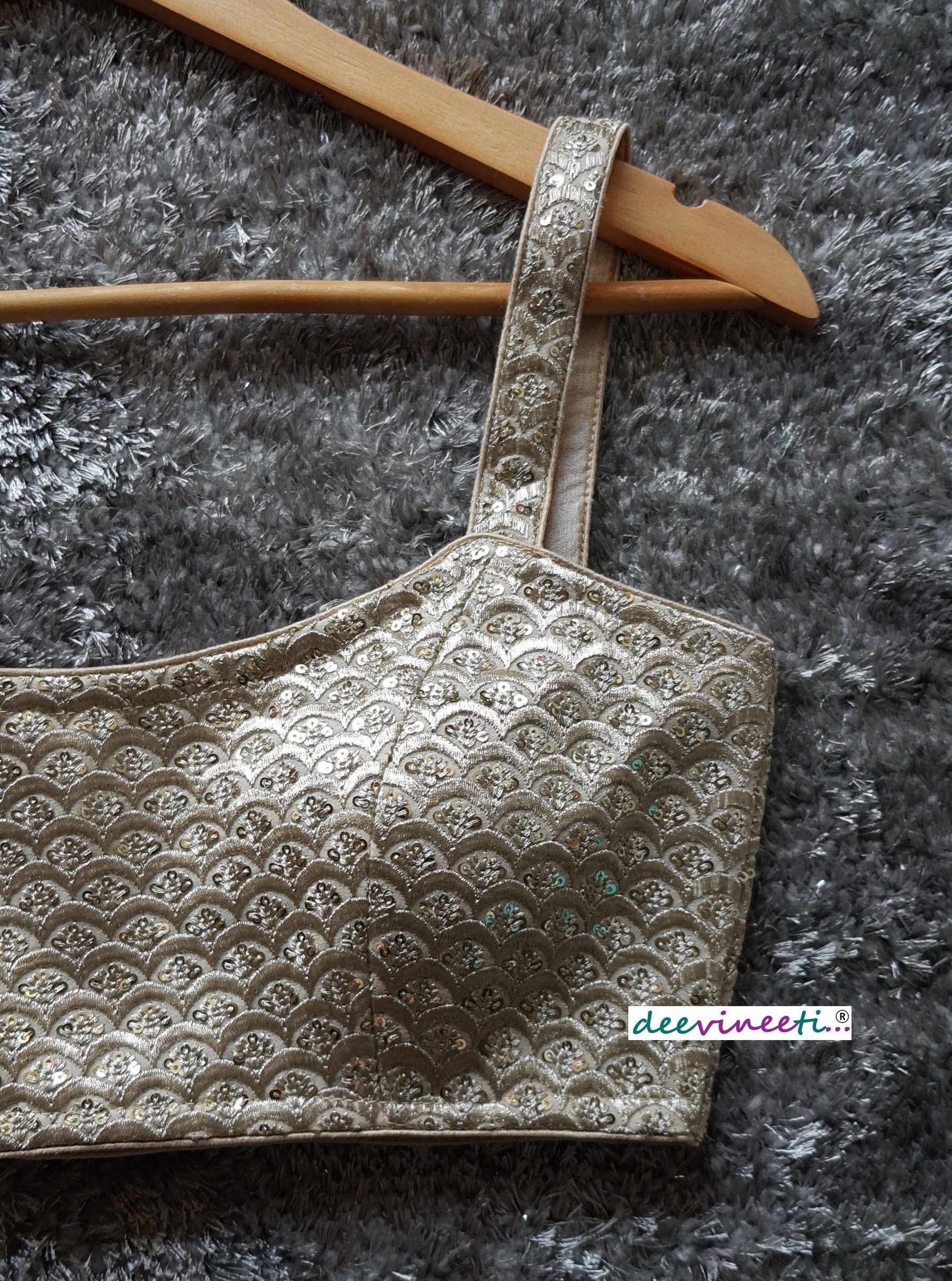 Light Gold Sequins Embroidered Spaghetti Blouse DVBL_106