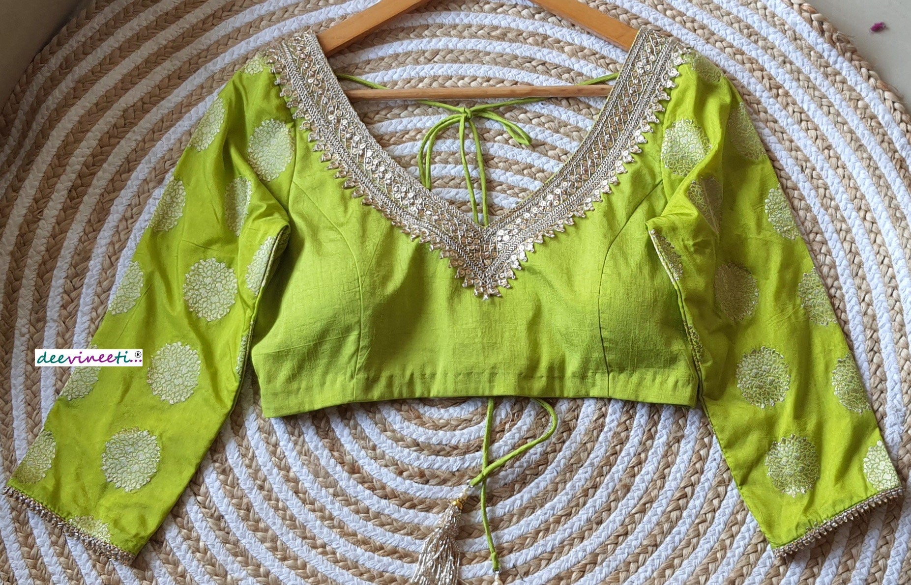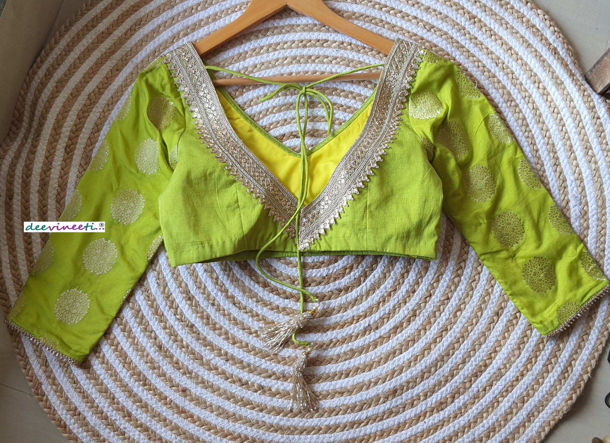 Lime Green Raw Silk Three Fourth Sleeves Blouse DVBL_134