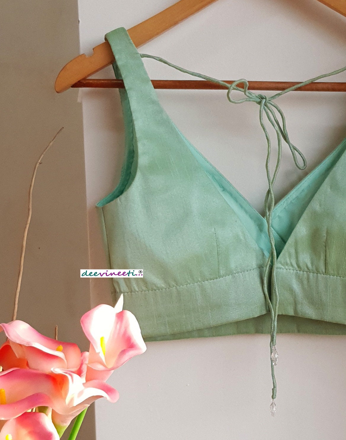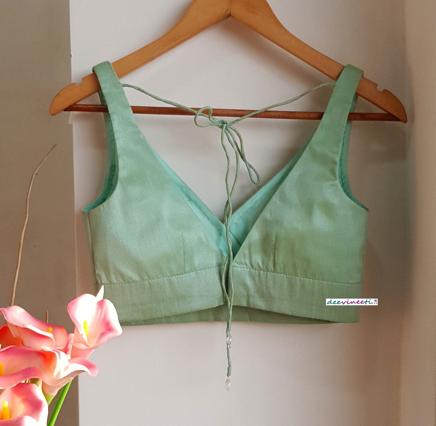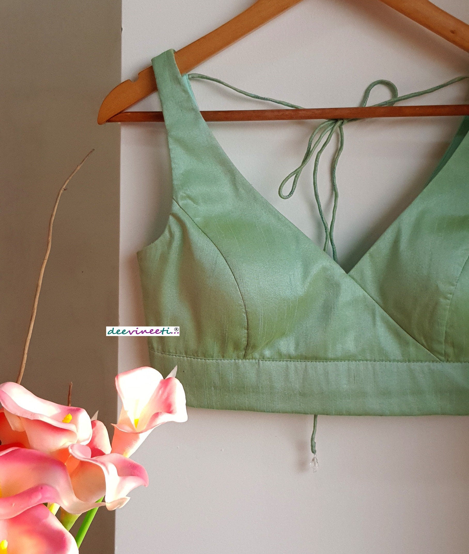 Raw Silk Deep V Neck Solid Blouse DVBL_272
