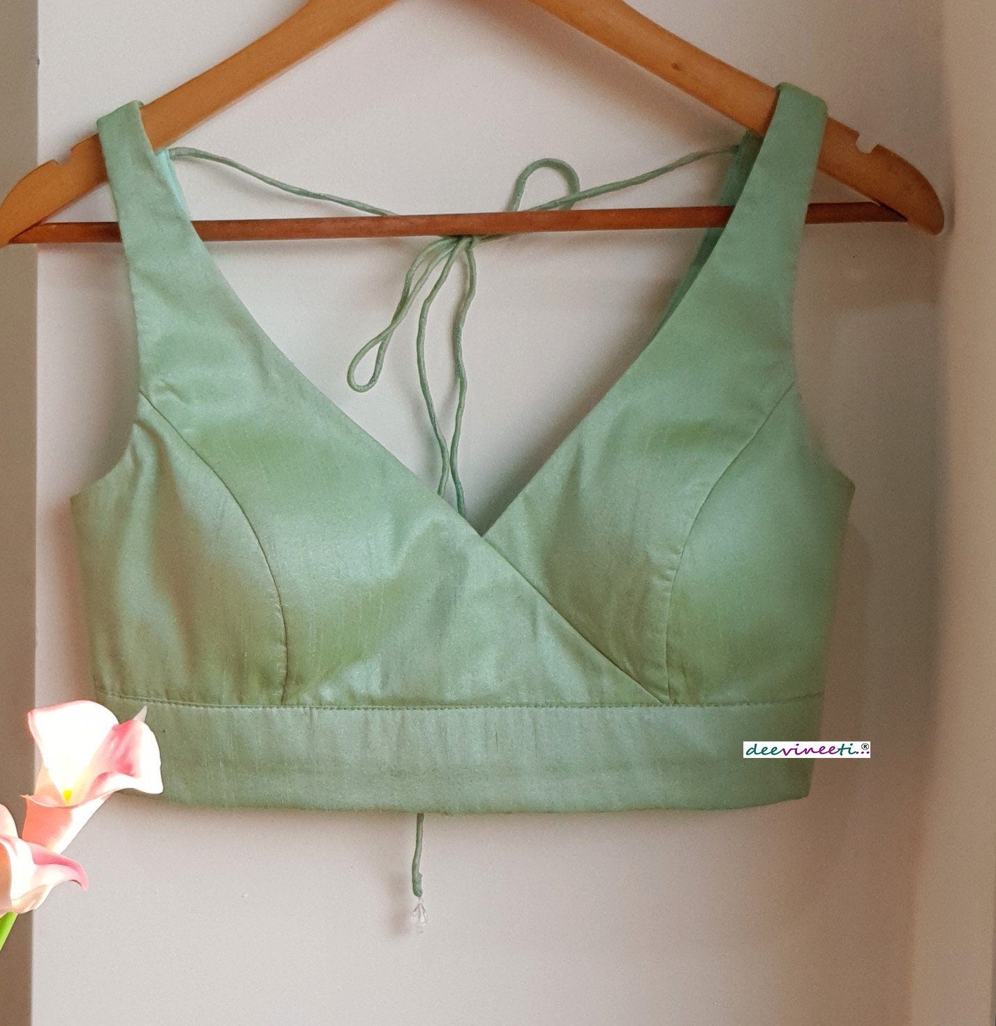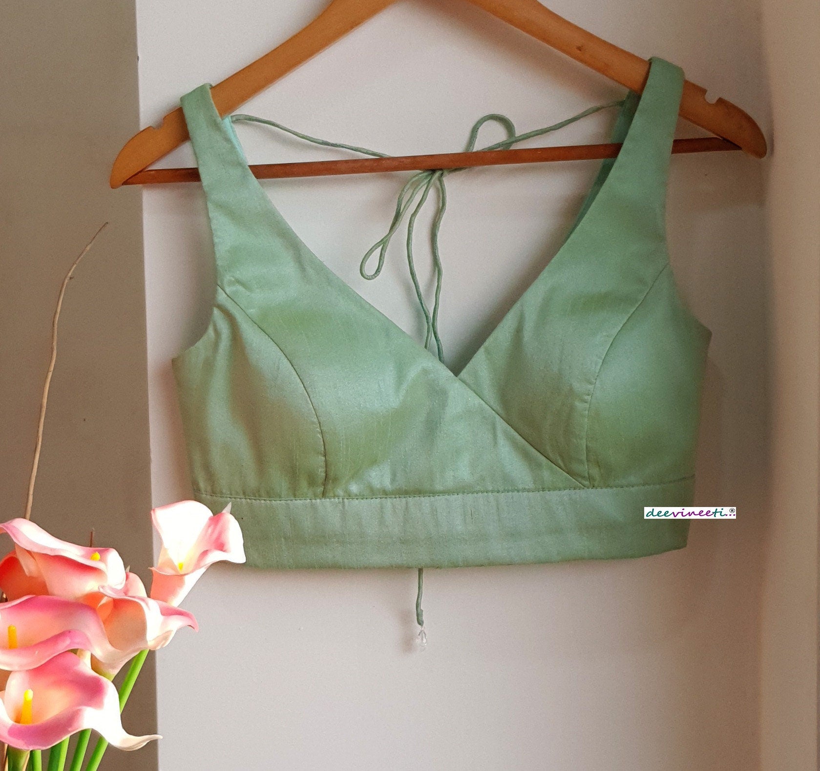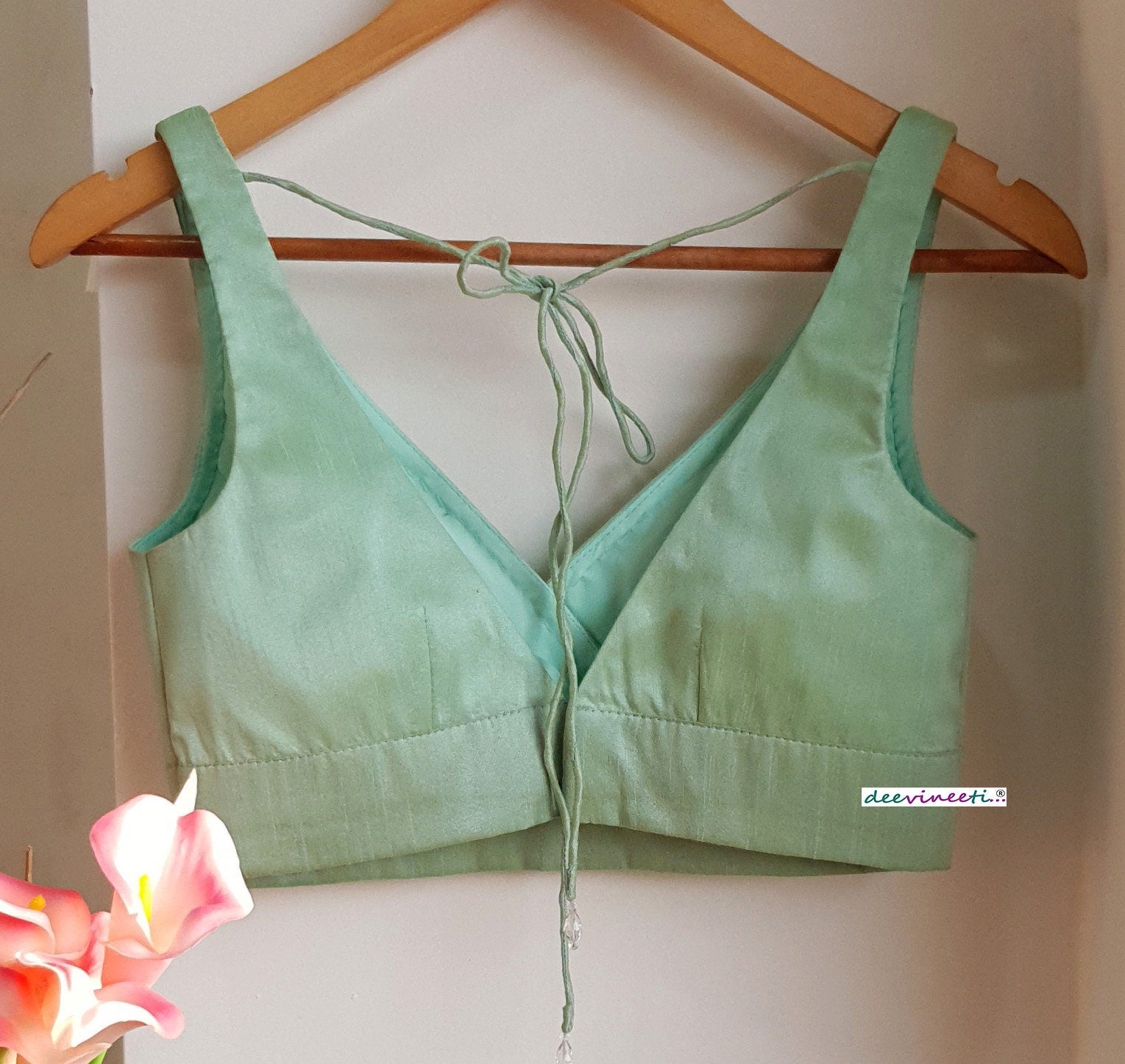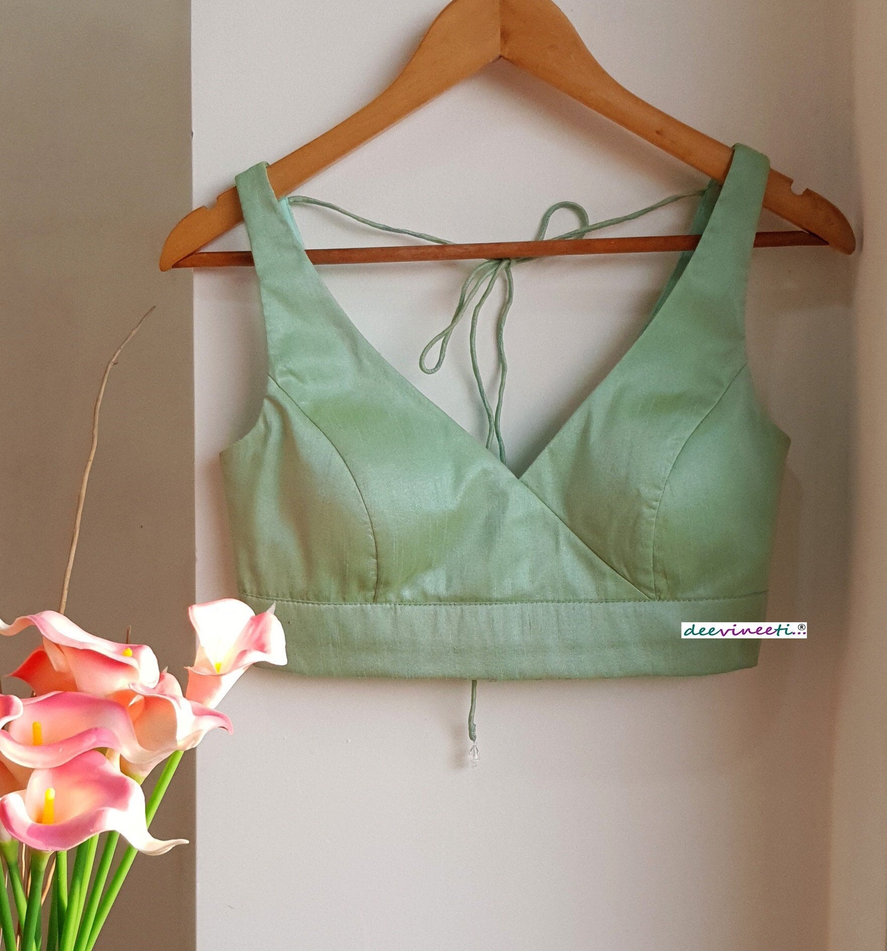 Raw Silk Deep V Neck Solid Blouse DVBL_272