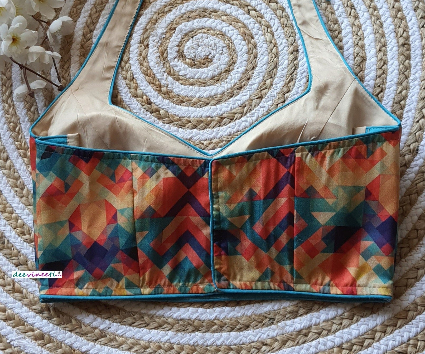 Multicolor Printed Khadi Silk Halter Neck Blouse DVBL_074