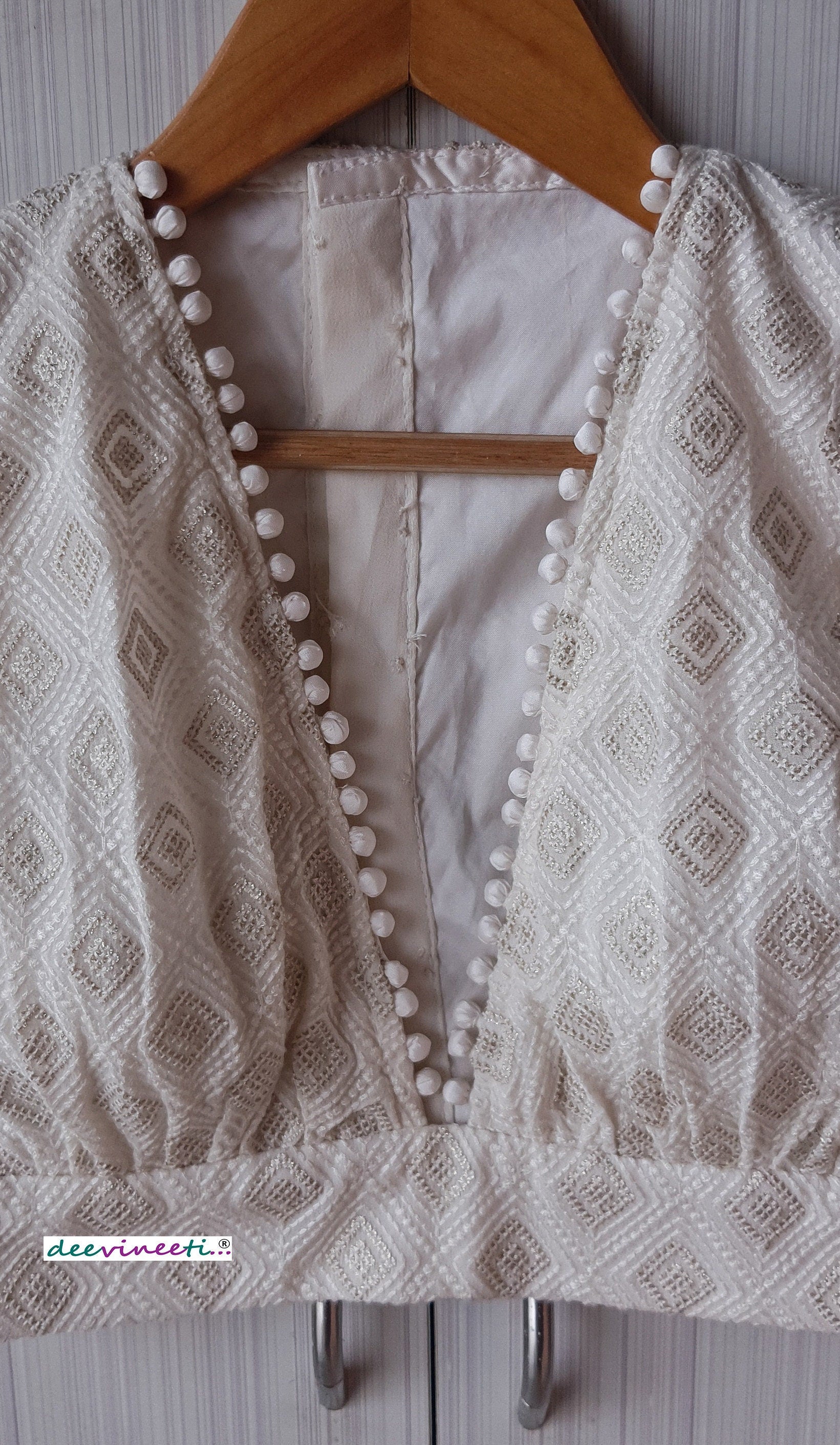 Ivory Chikankari Plunge Neckline Blouse DVBL_249