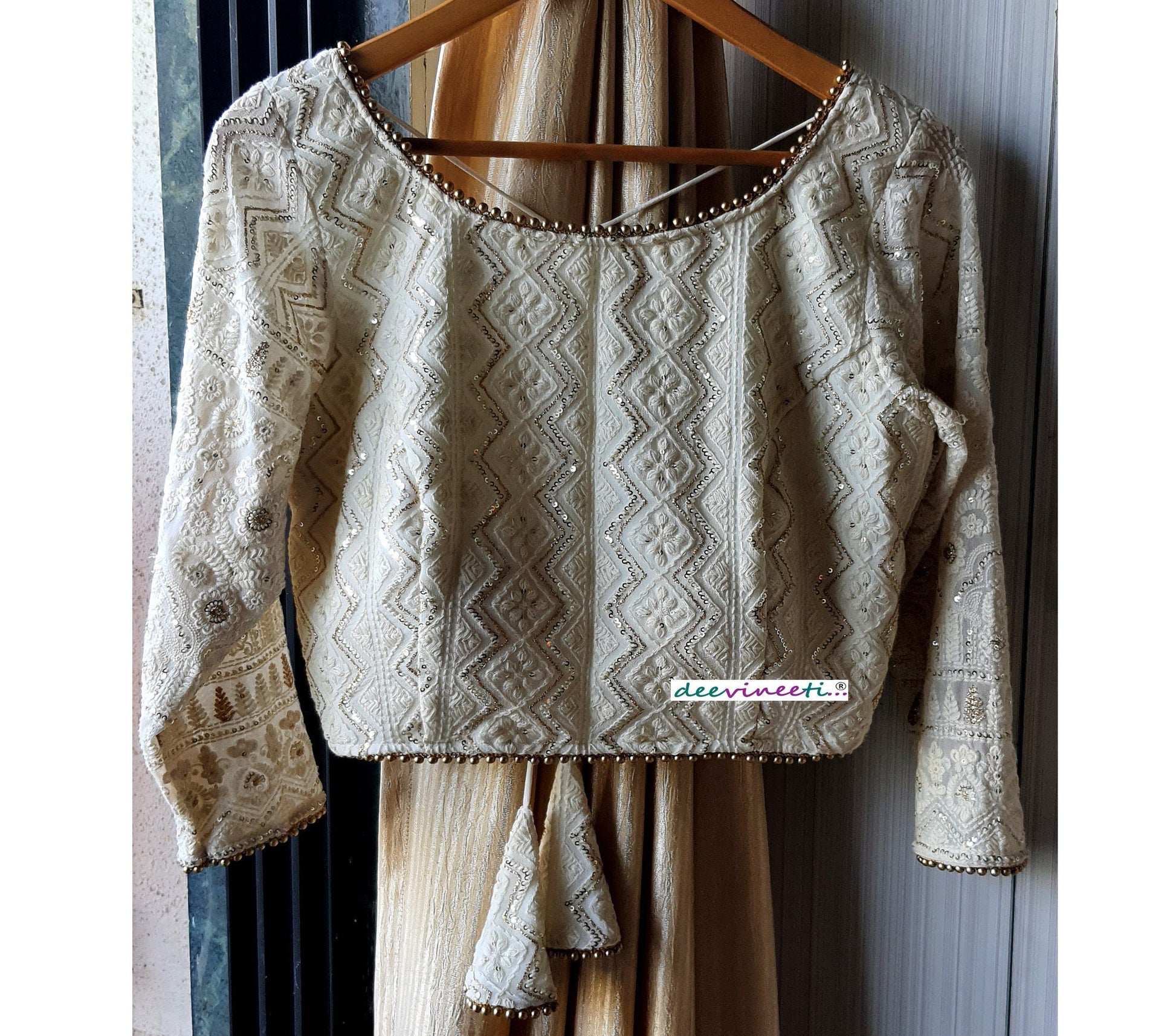 Ivory Chikankari Lucknowi Boat Neck. Blouse DVBL_058