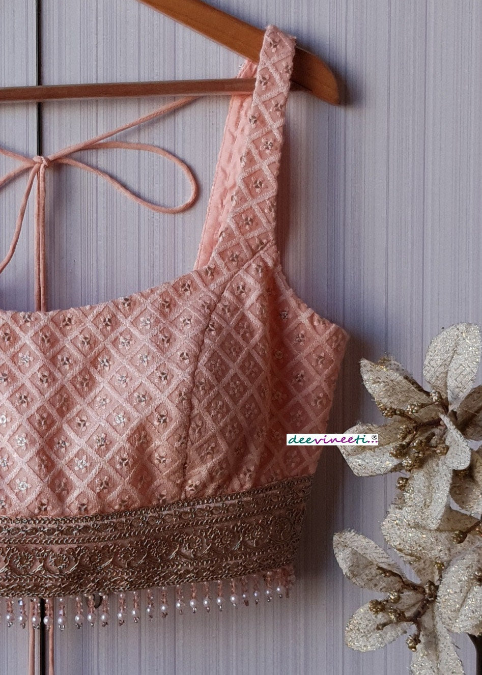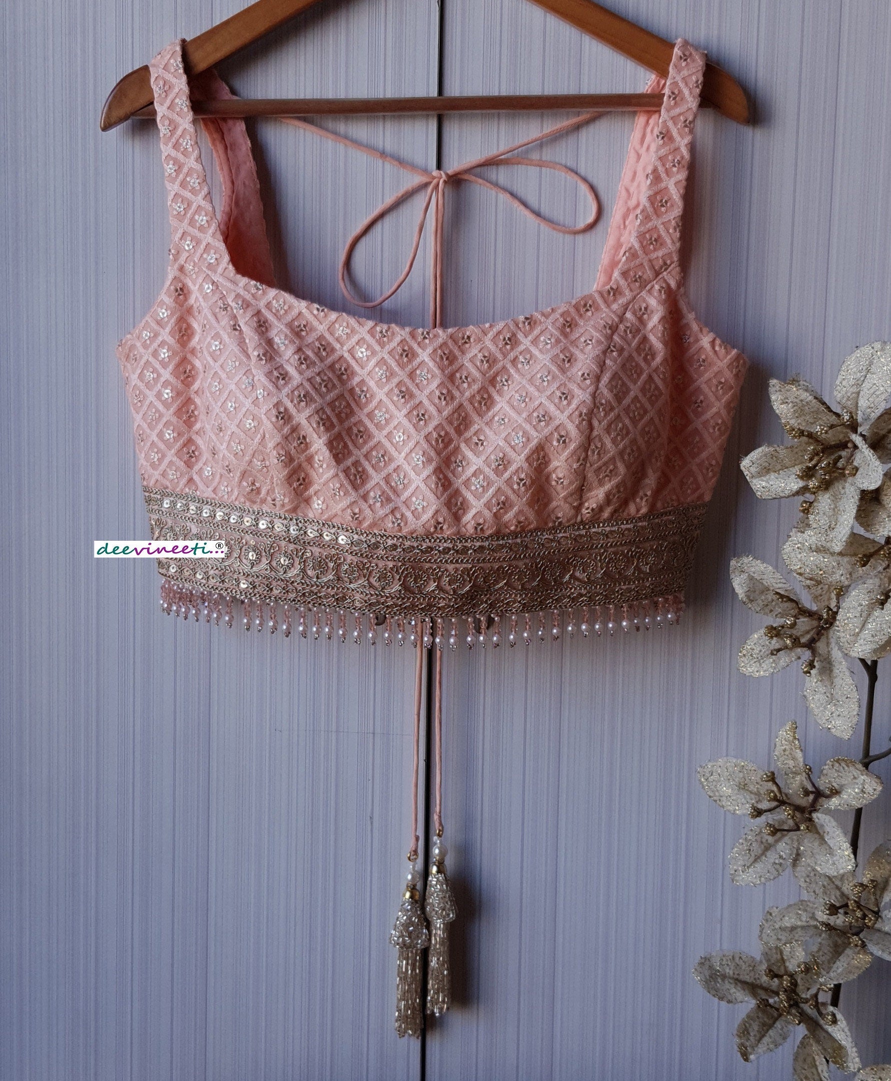 Please note the fringes in the blouse are handmade hence fragile. Please handle with care.