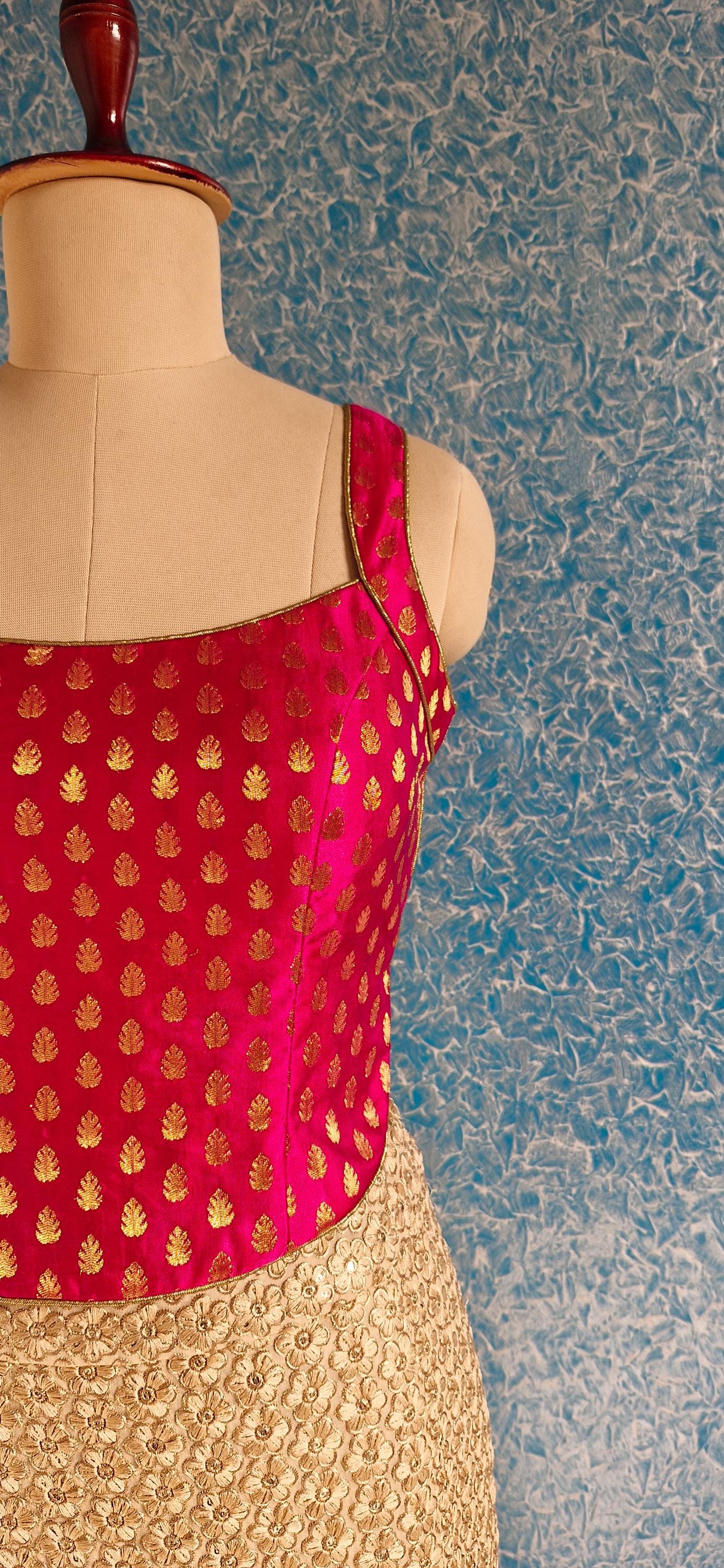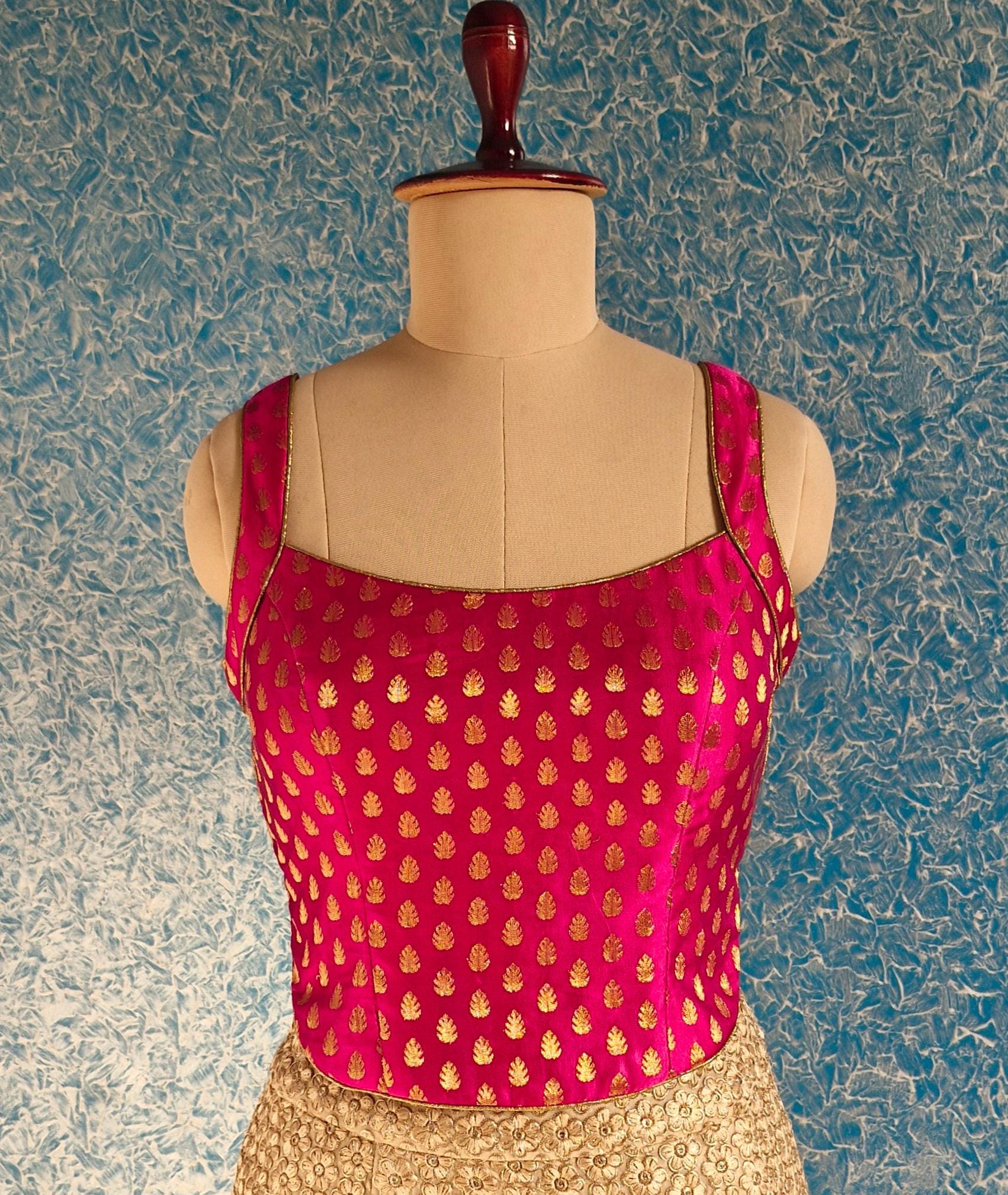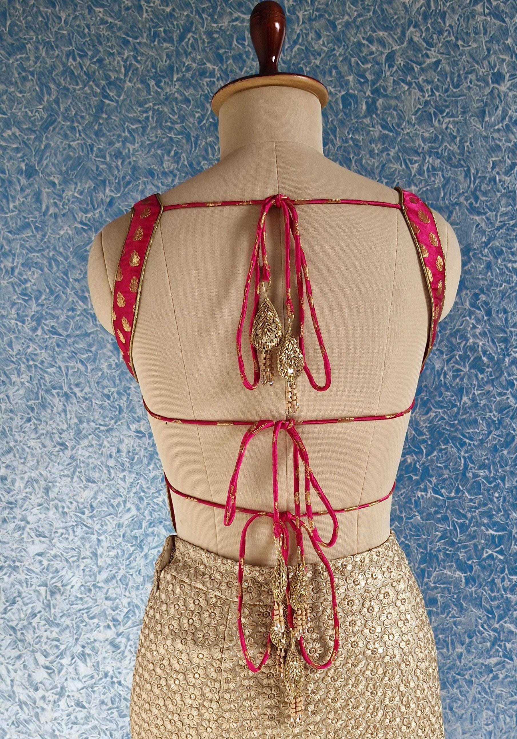 Pink Gold Brocade Silk Backless Corset Blouse DVCB_004