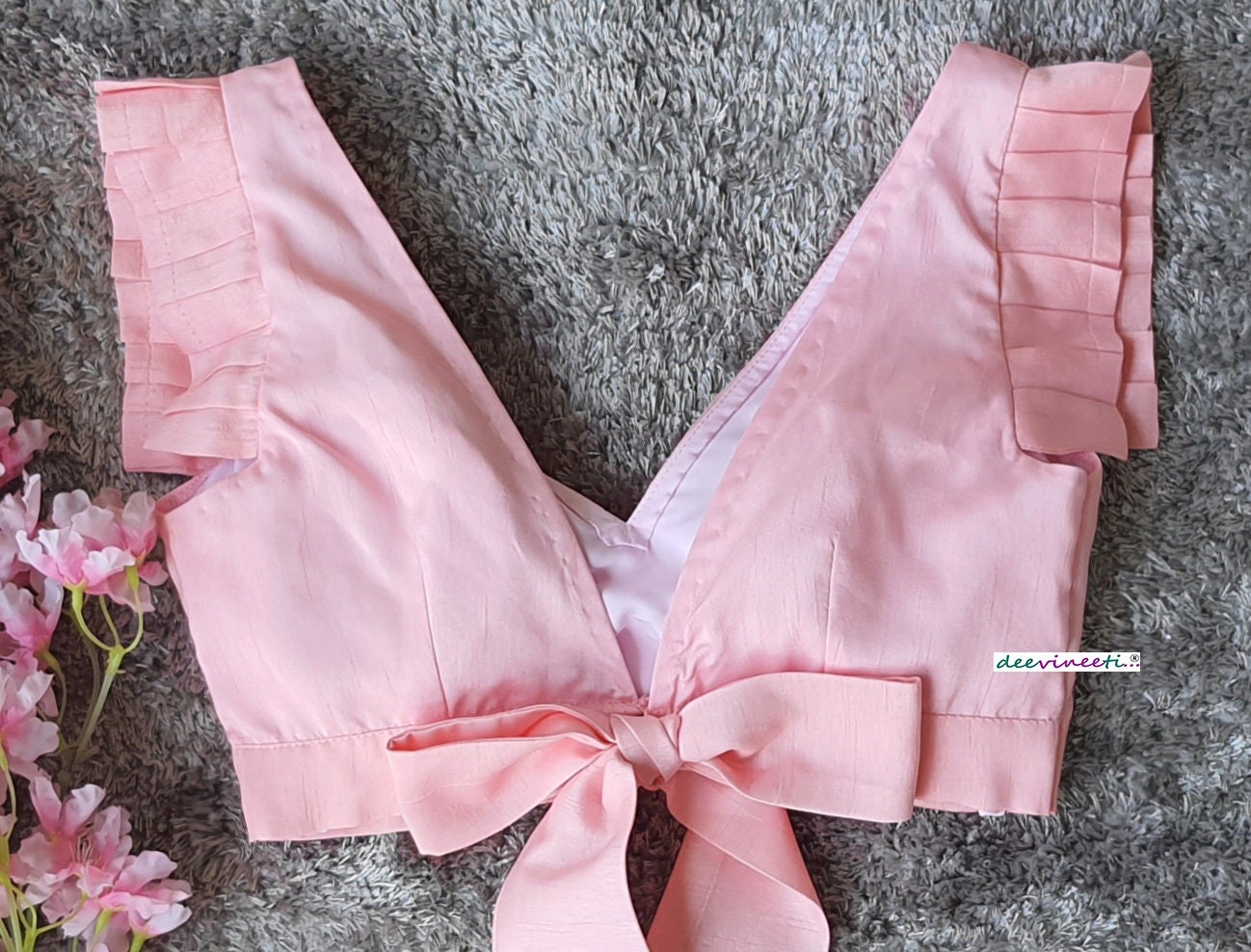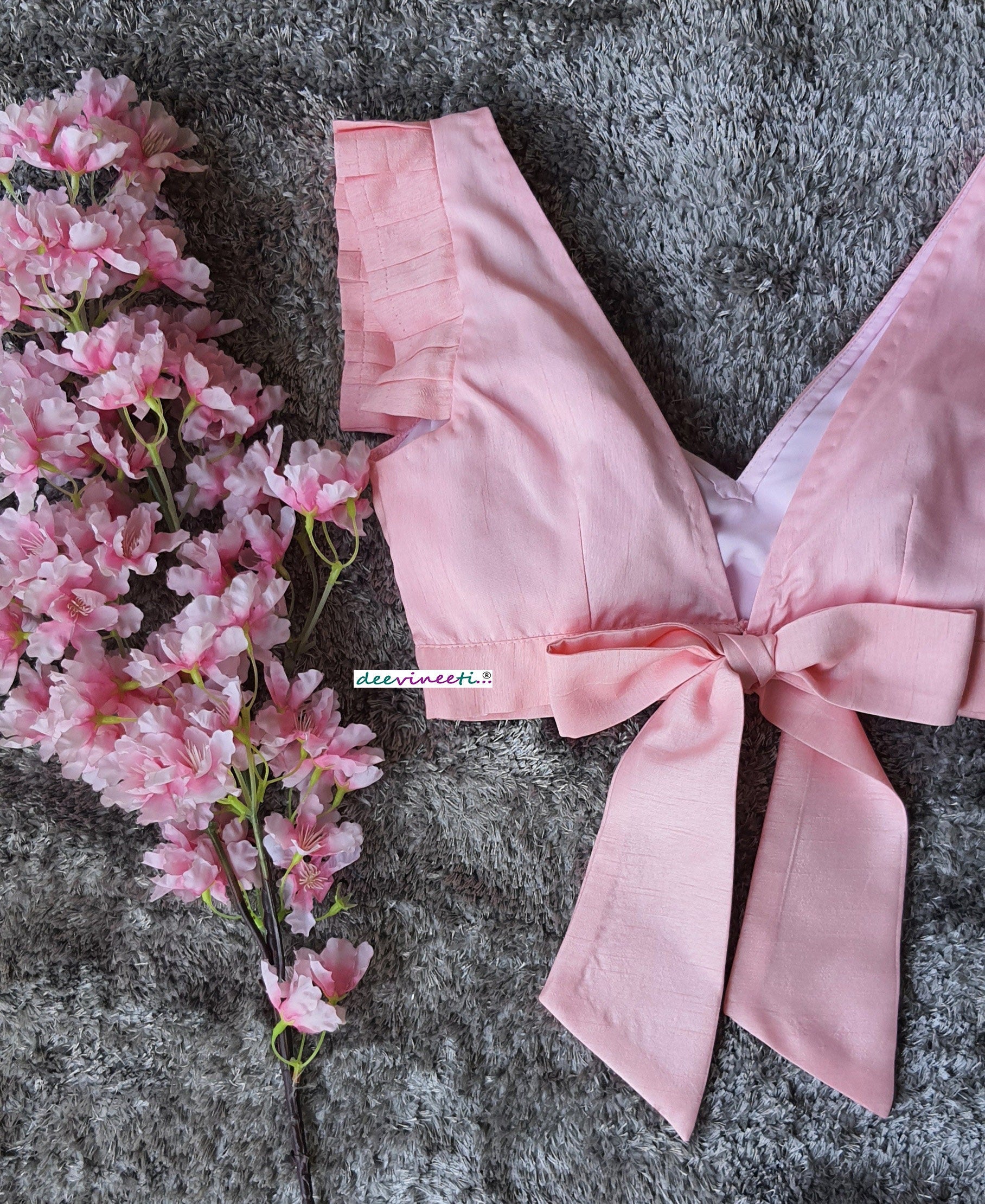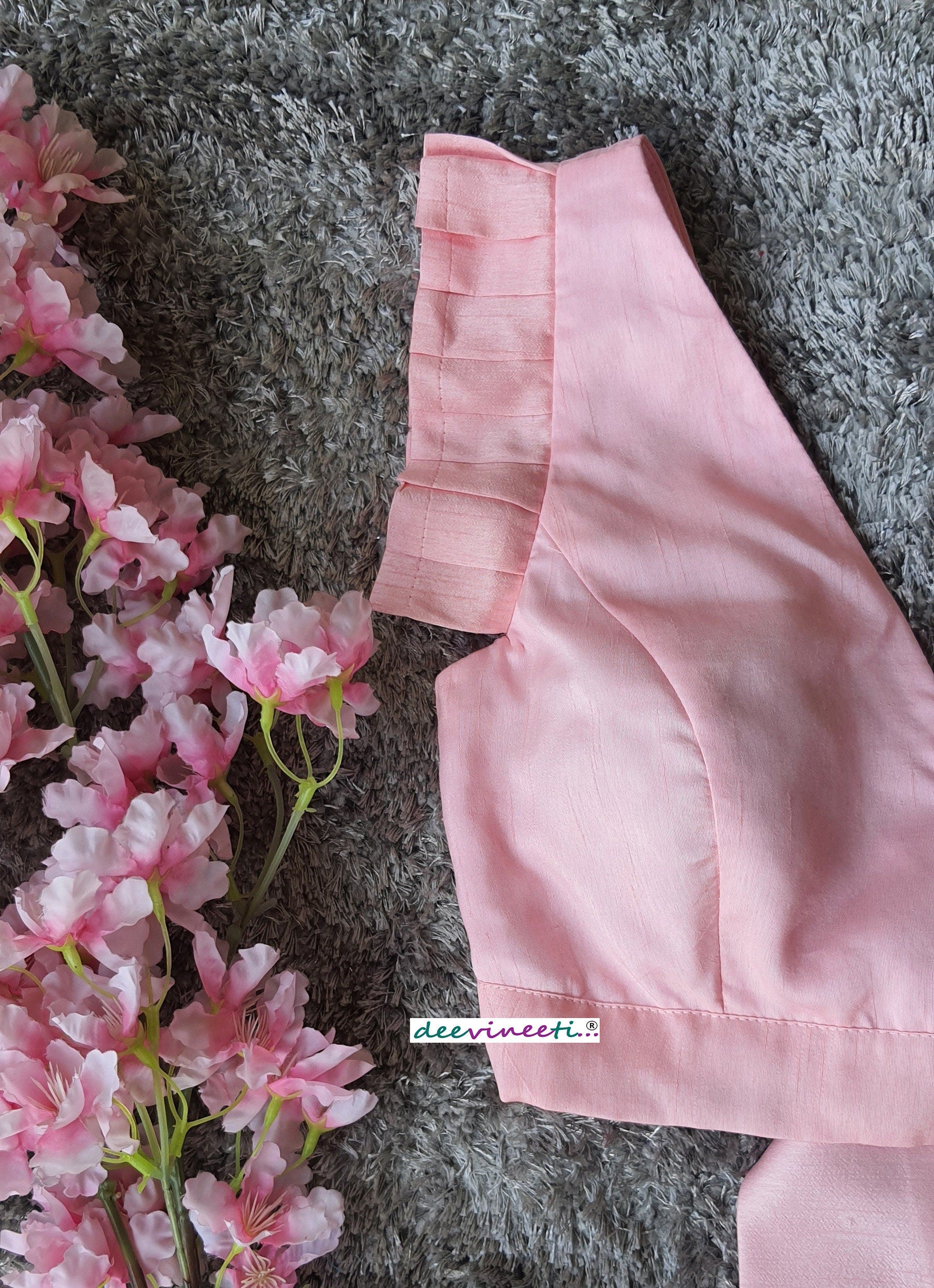 Pink Tussar Silk V Neck Pleated Sleeves Blouse DVBL_220