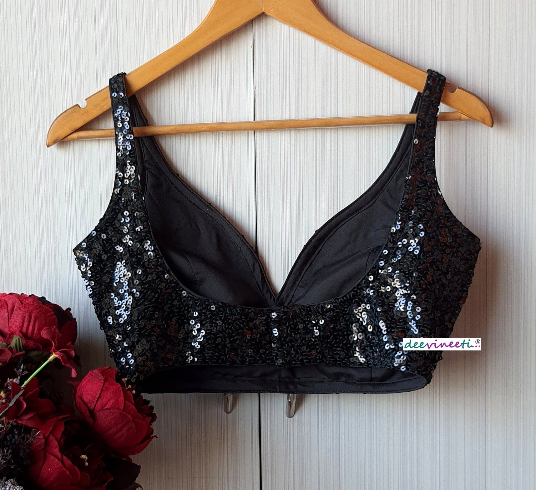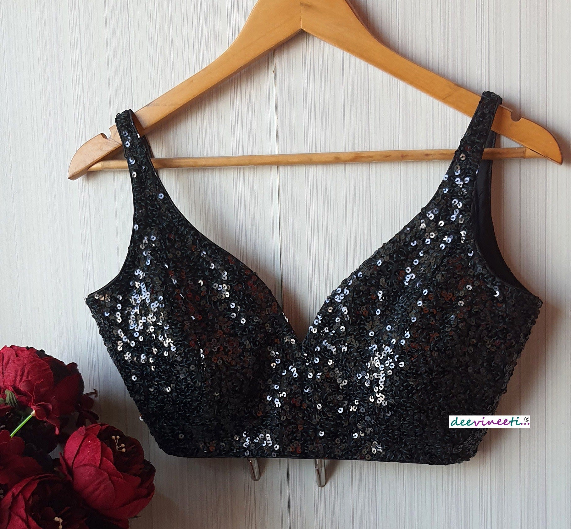 Sequins Deep Sweetheart neck Sleeveless Blouse DVBL_181