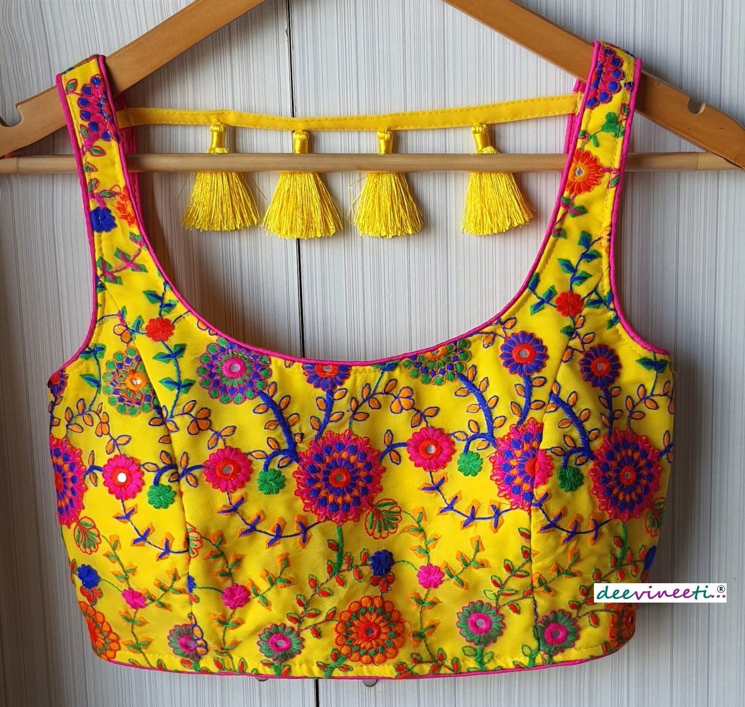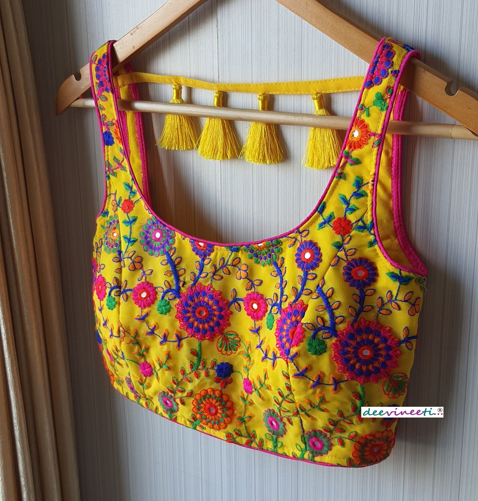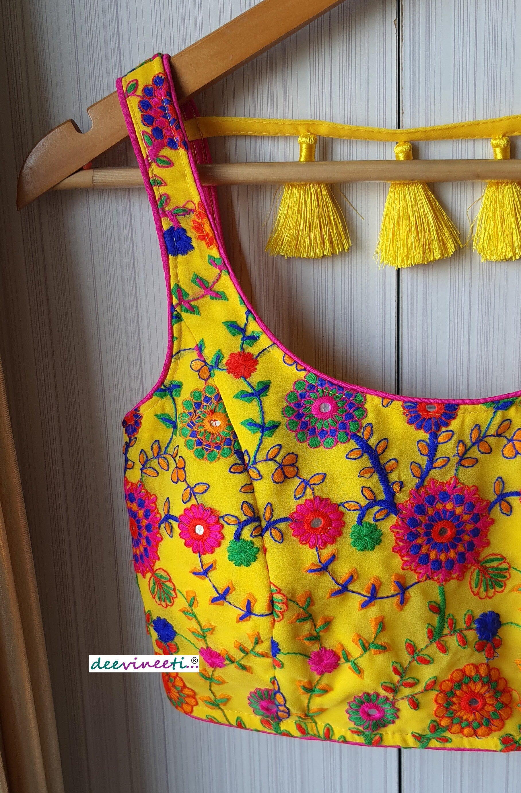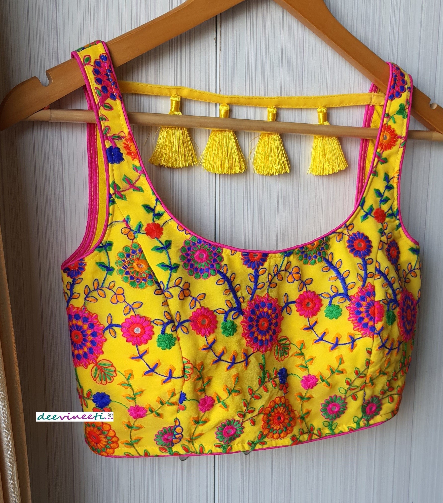 Thread Embroidered Yellow Georgette Blouse DVBL_066