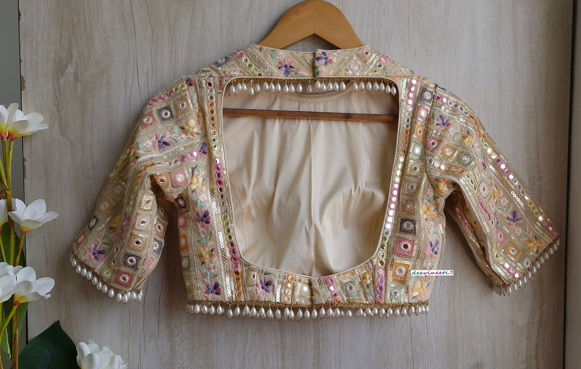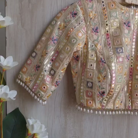 Please note the fringes in the blouse are handmade hence fragile. Please handle with care.