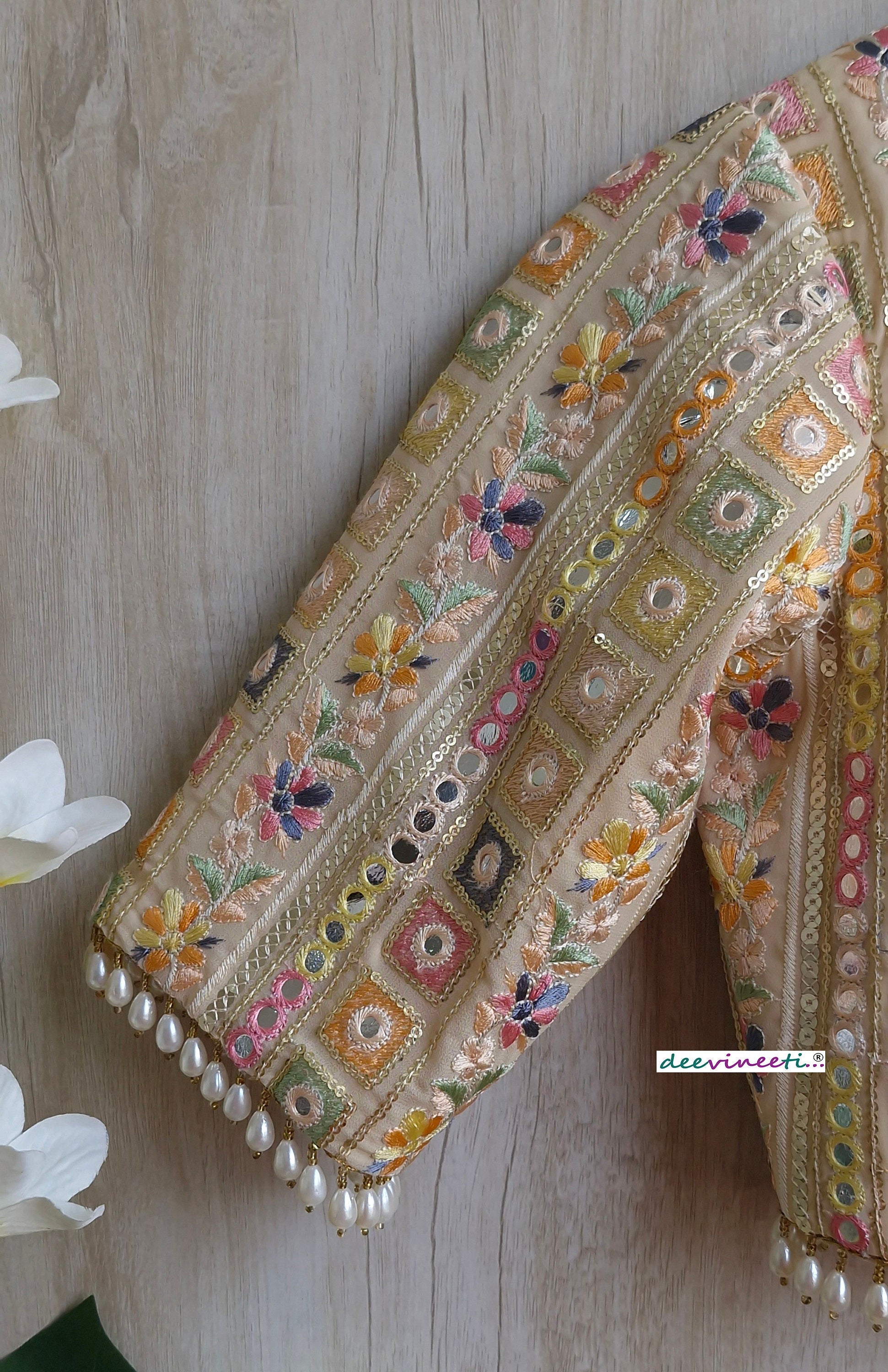 Beige Embroidered Georgette Jewel Neck Blouse DVBL_309