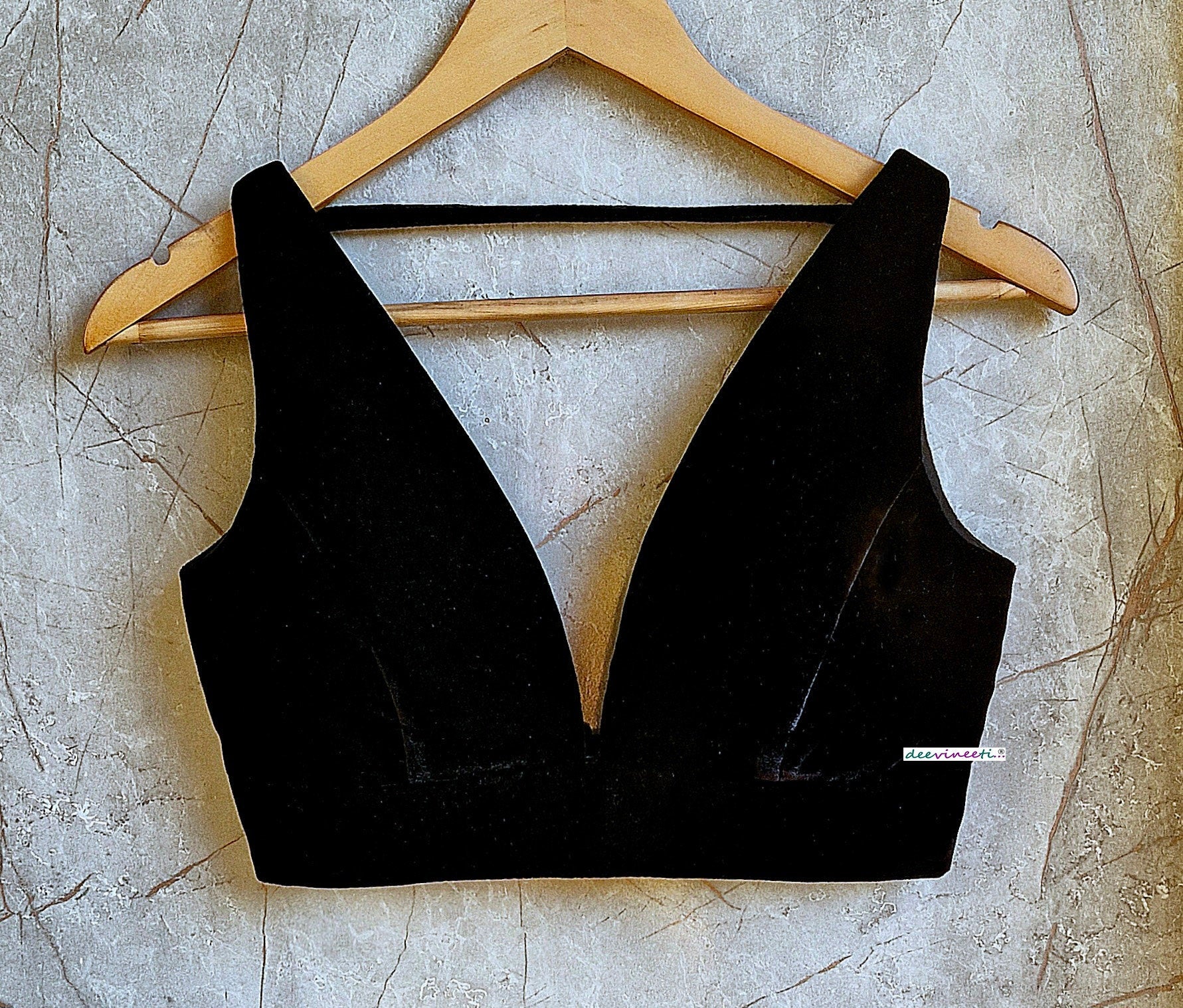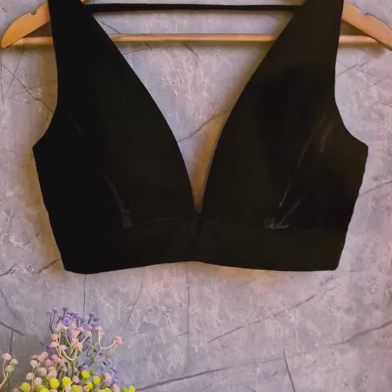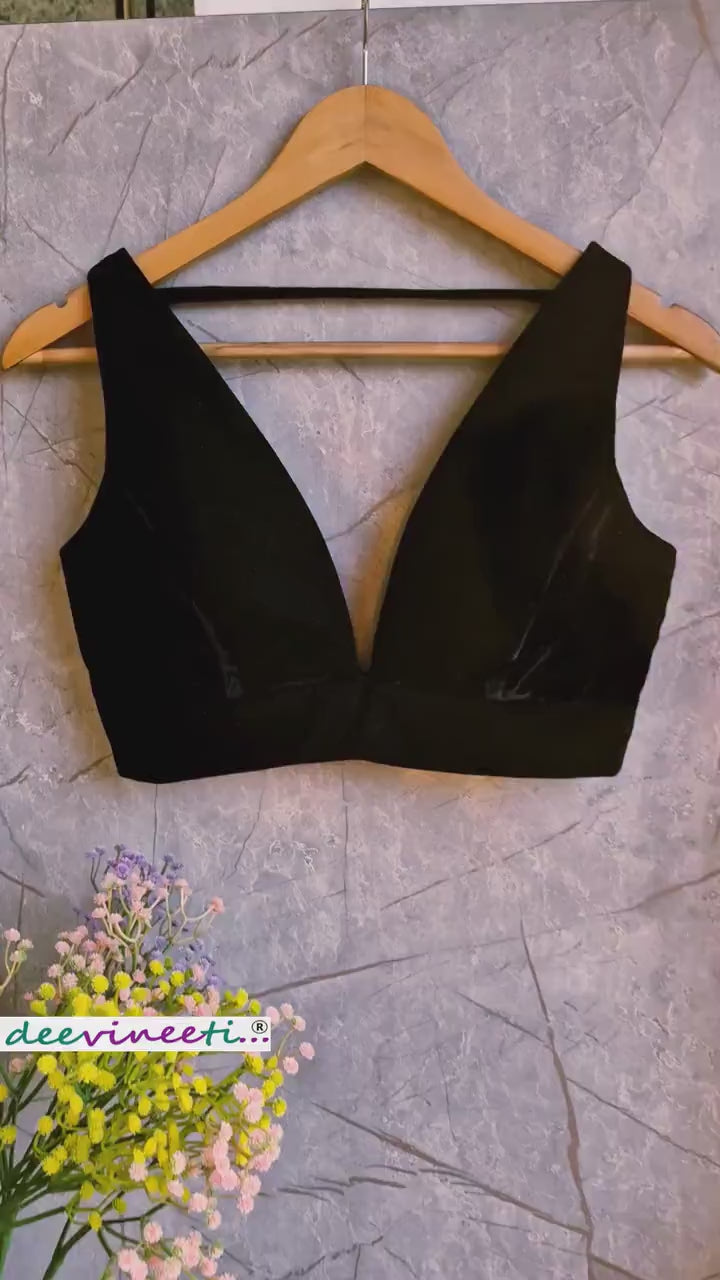Black Velvet Plunge Neckline Blouse DVBL_332