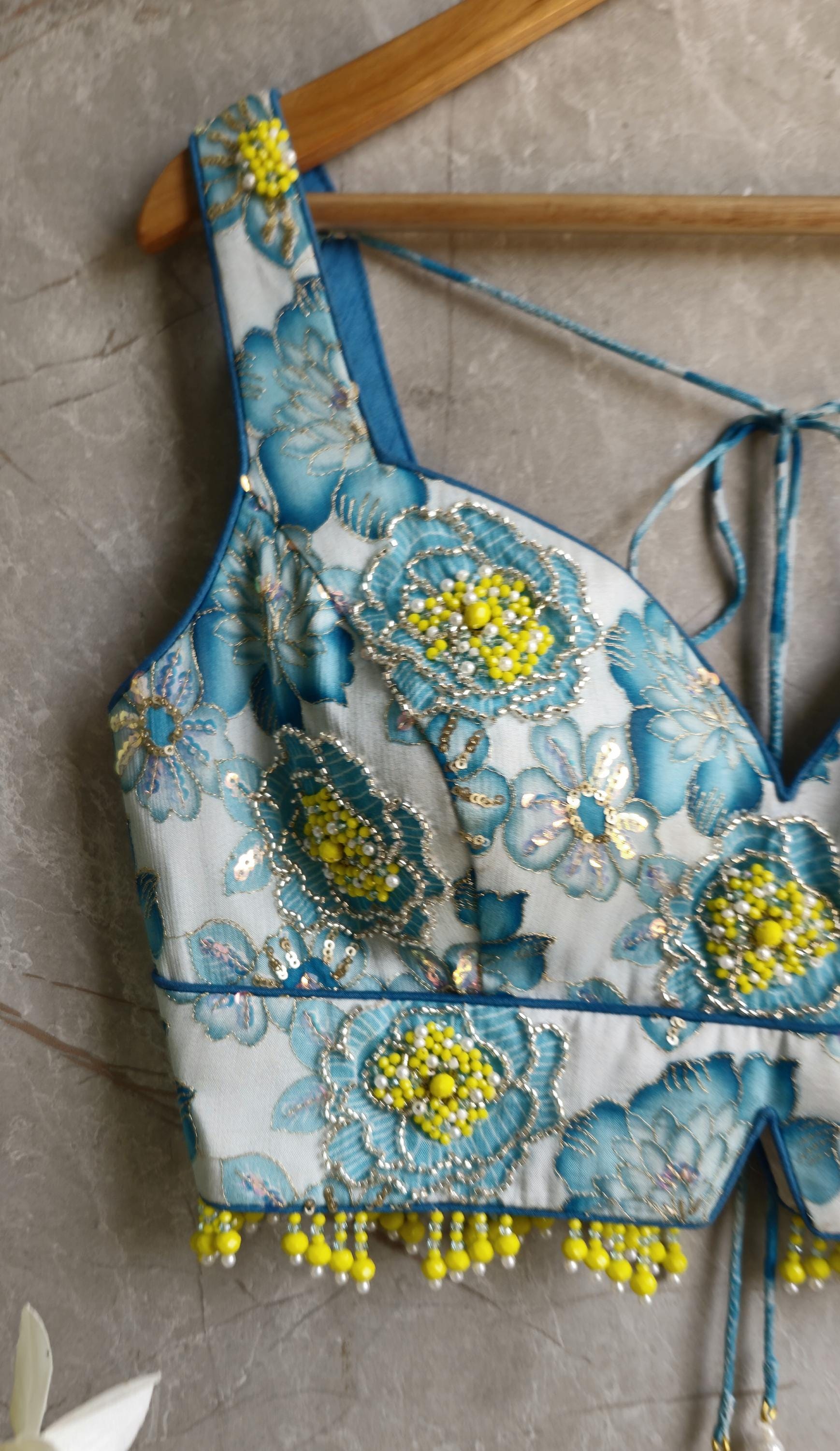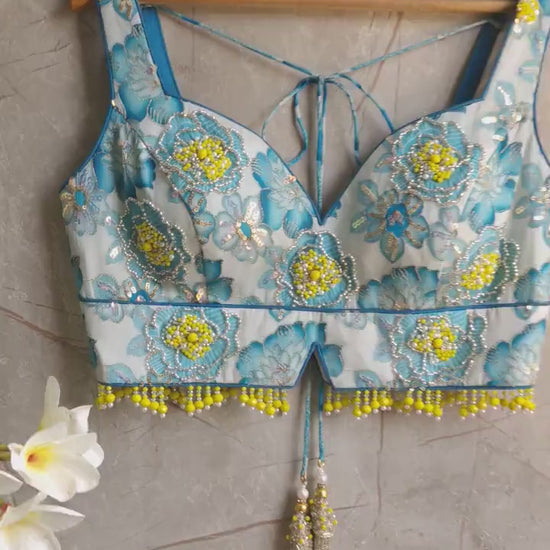 Beads Embroidered Blue Deep Sweetheart Neck Blouse DVBL_415