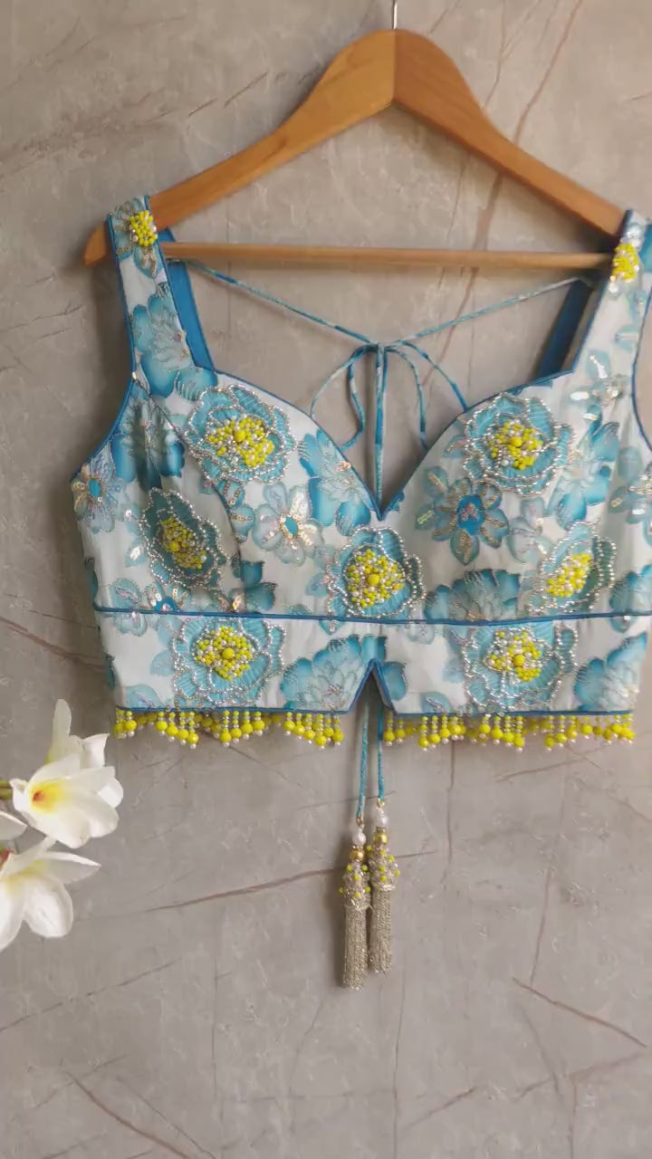 Please note the fringes in the blouse are handmade hence fragile. Please handle with care.