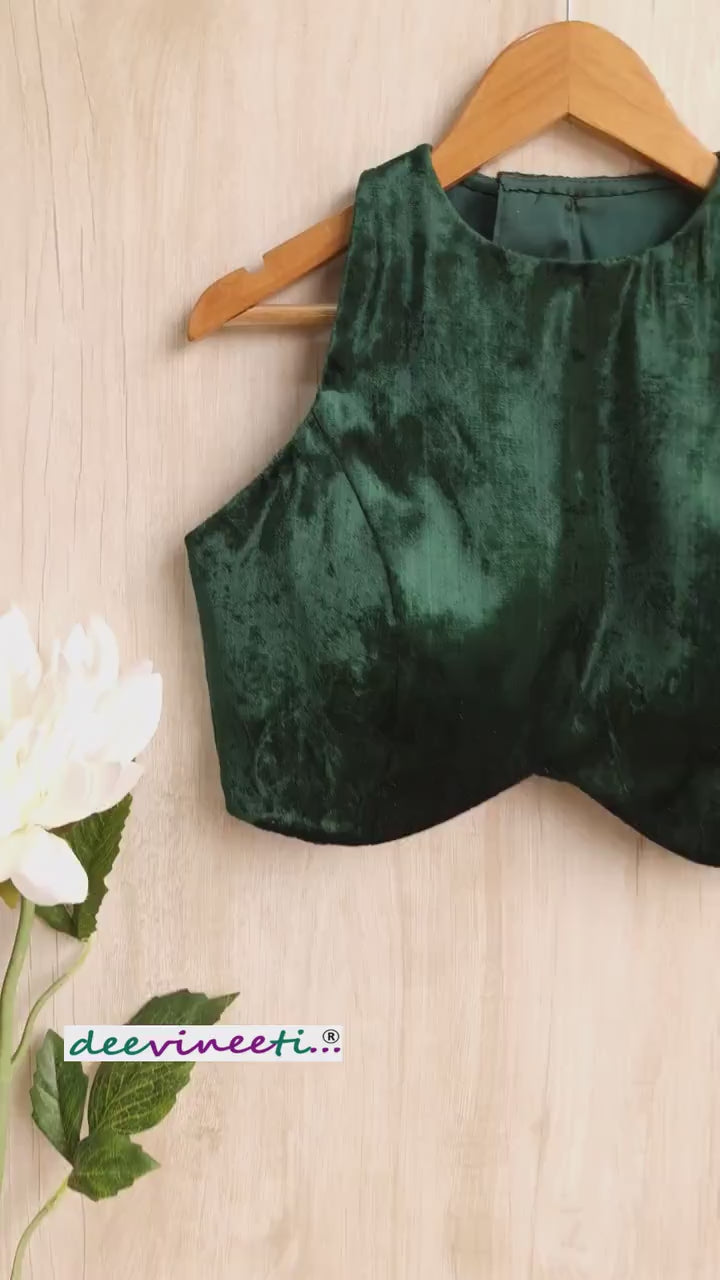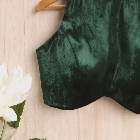 Bottle Green Viscose Velvet Jewel Neck Blouse DVBL_325