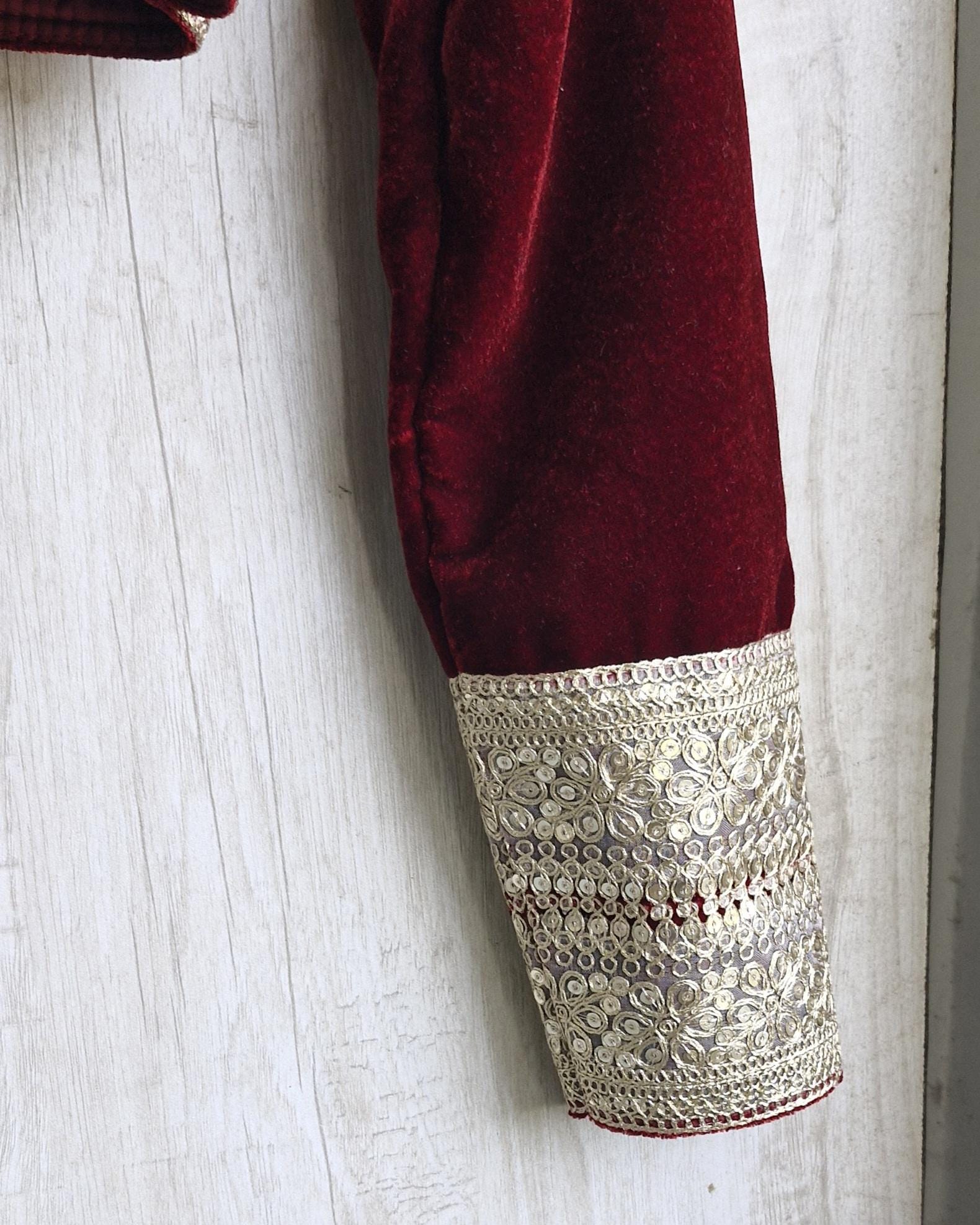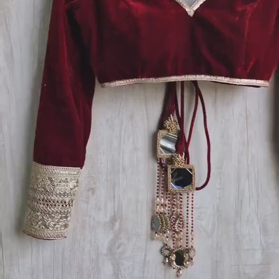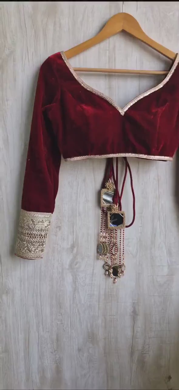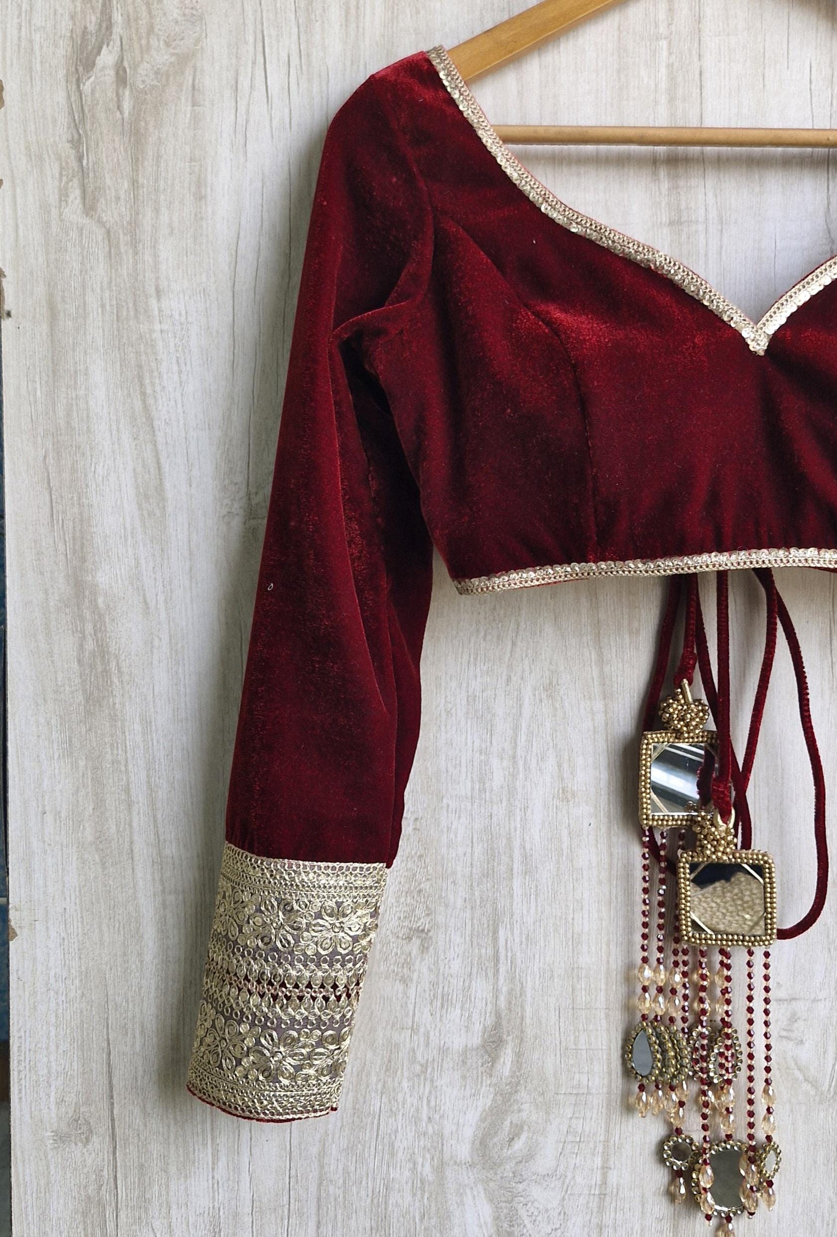 Deep Burgundy Velvet Deep Sweetheart Neck Full Sleeves Blouse DVBL_410