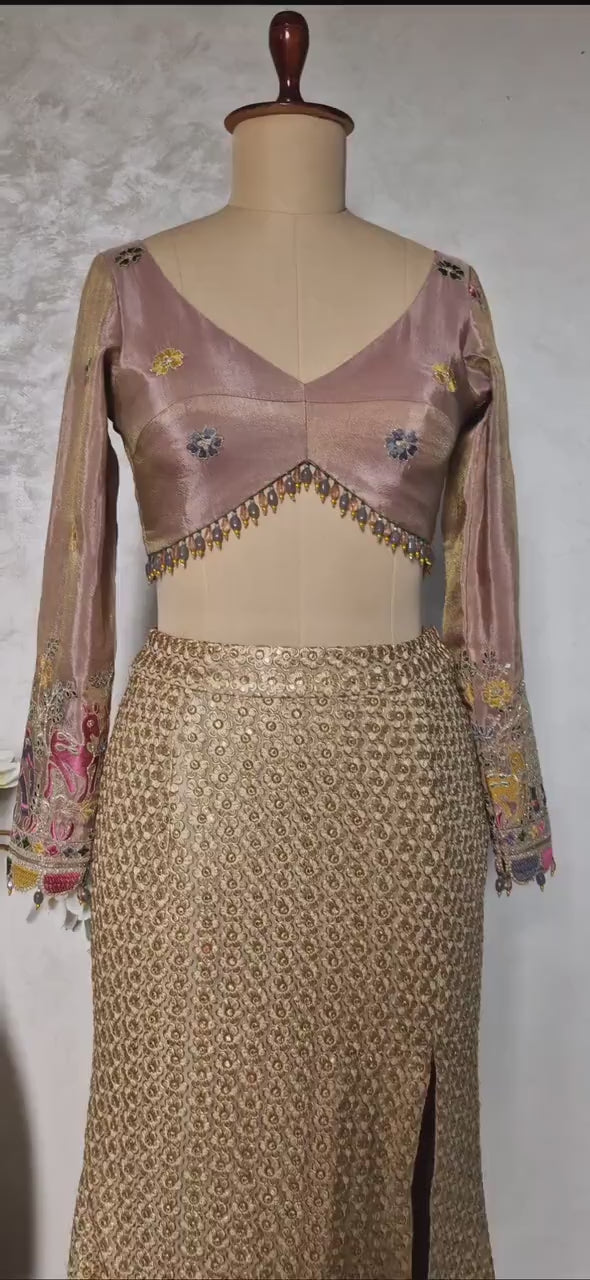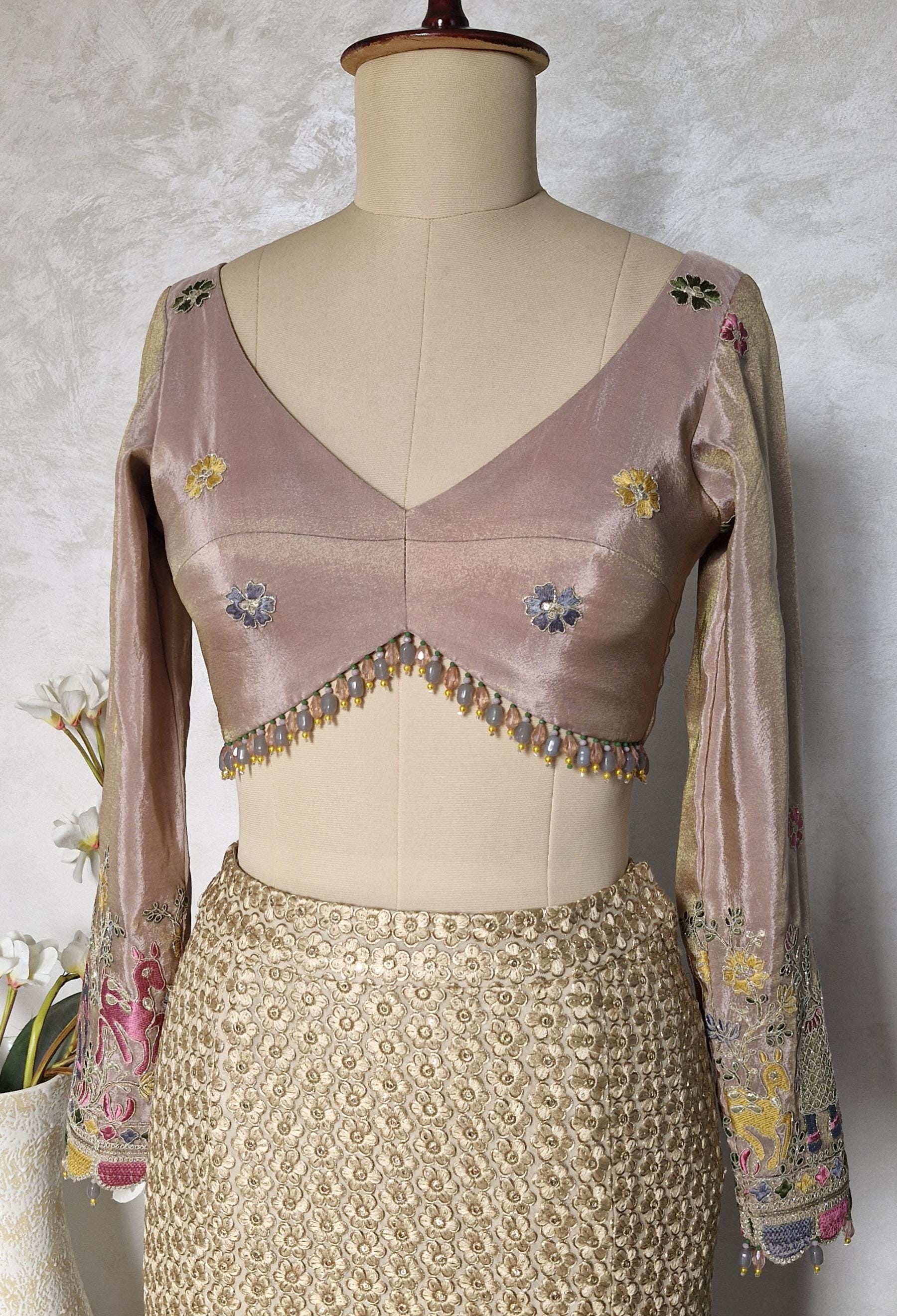 Dusty Rose Pink Embroidered Tissue Silk Blouse DVBL_442