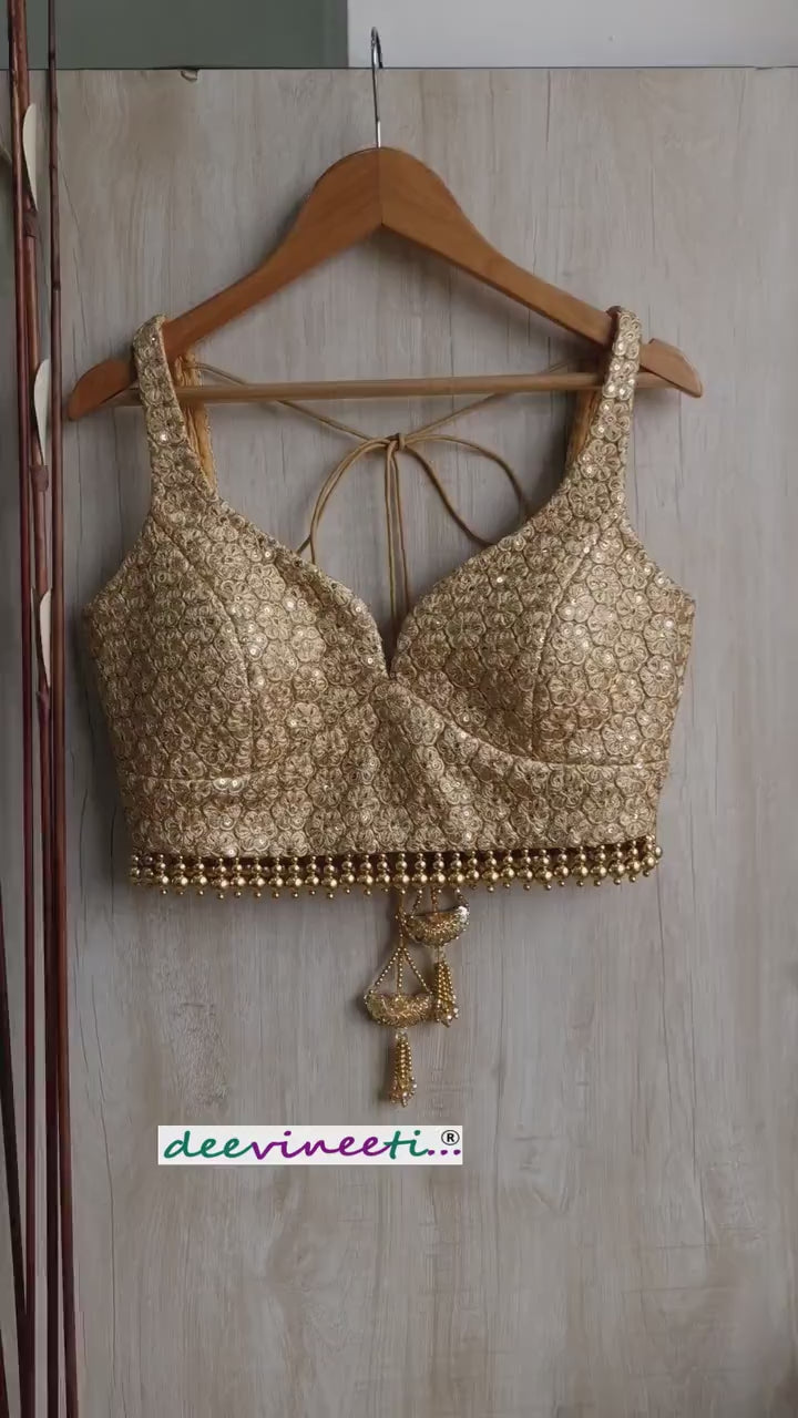Gold Embroidered Deep Sweetheart Neck Blouse DVBL_320