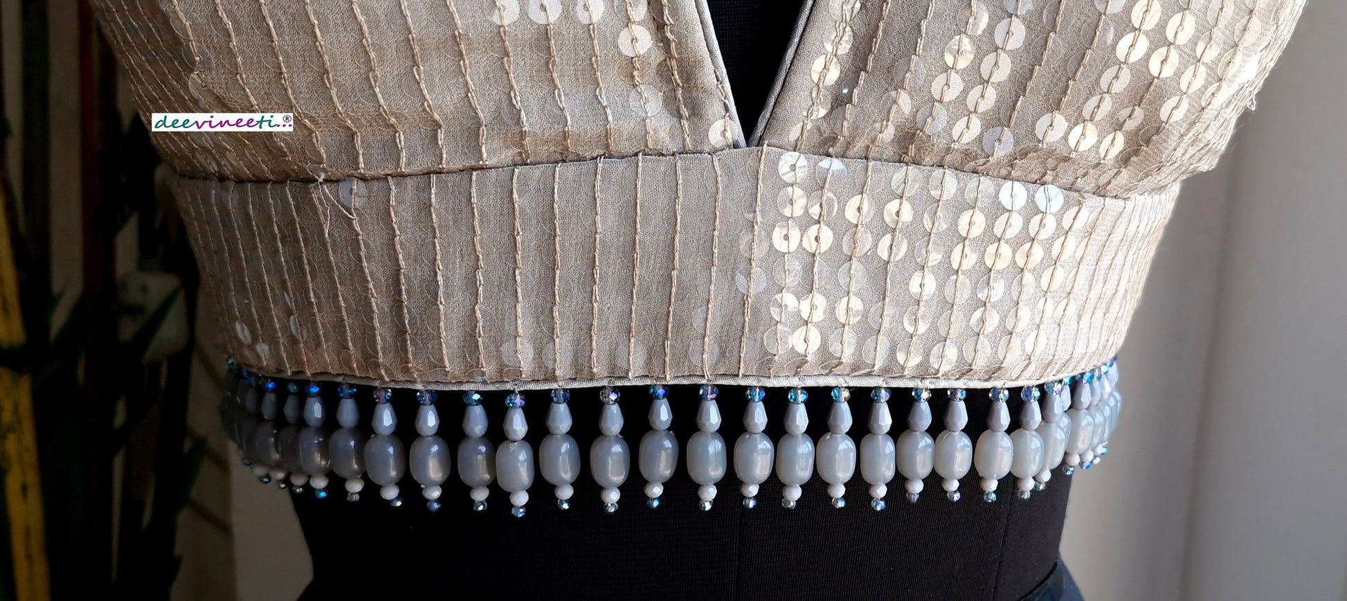 Please note the fringes in the blouse are handmade hence fragile. Please handle with care.