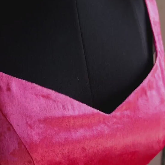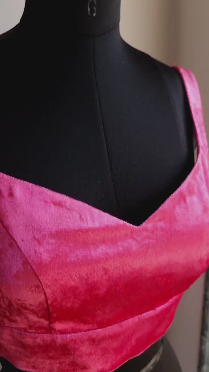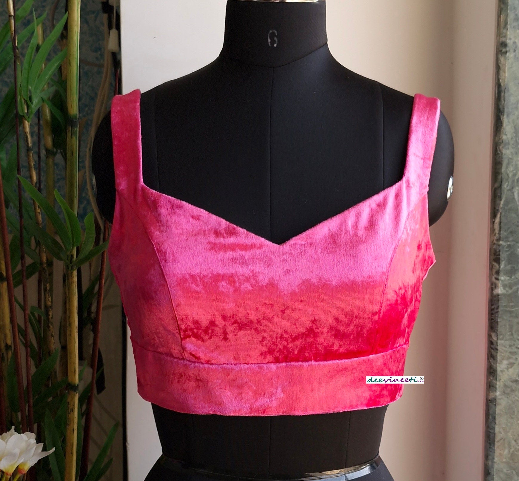 Hot Pink Viscose Velvet Semi Sweetheart Neck Blouse DVBL_334